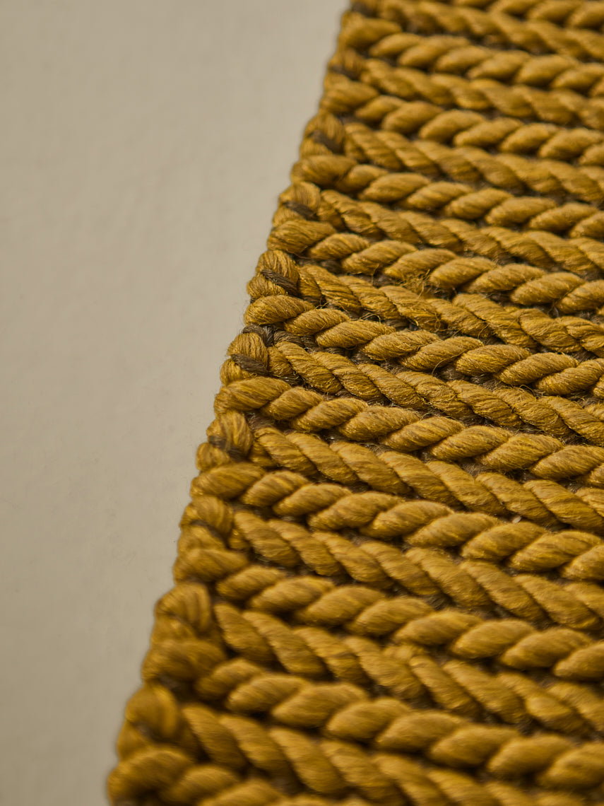 Alfombra artesanal de doble trenzado verde oliva, original de India. Apta tanto para interior como para exterior.