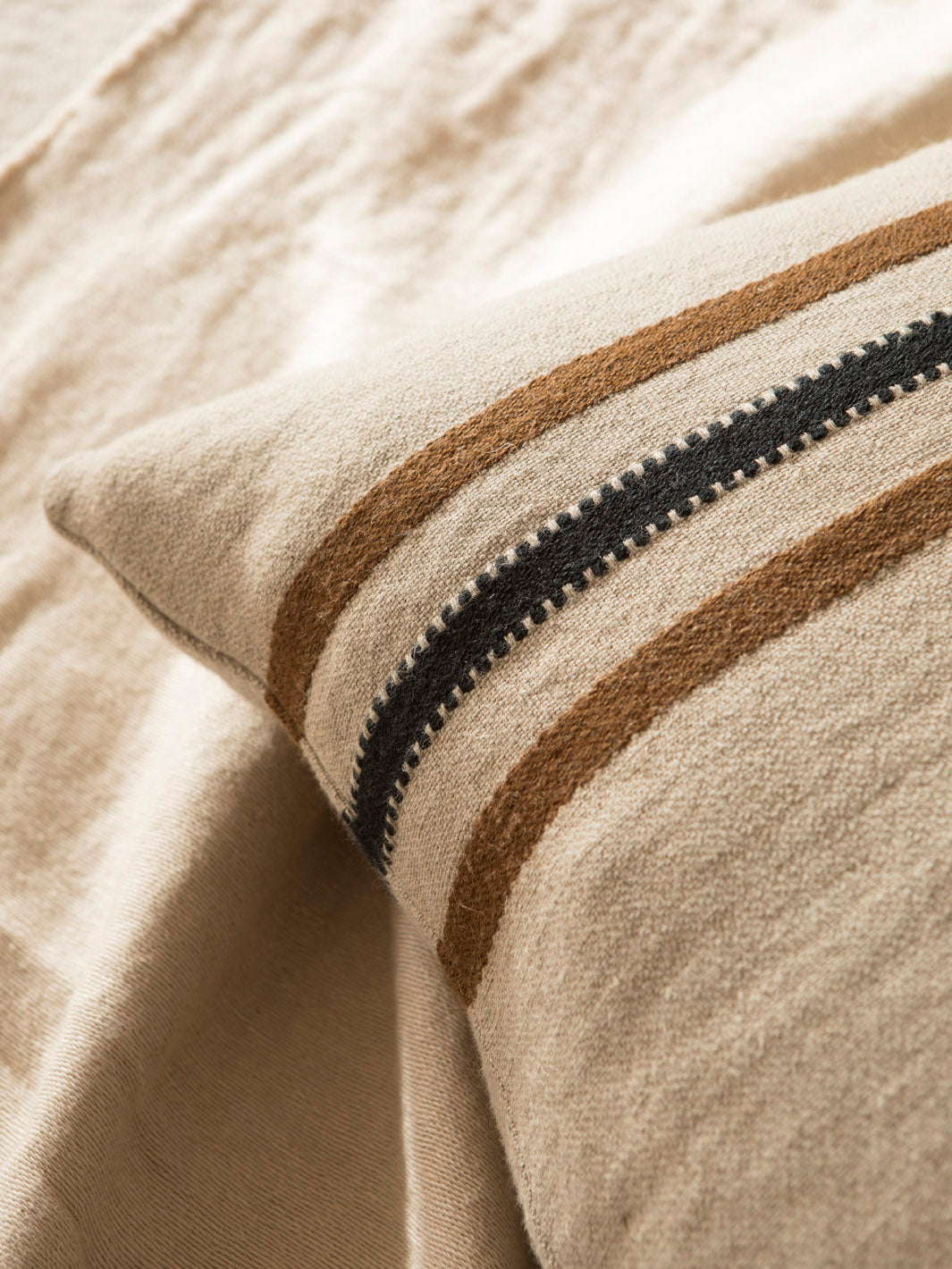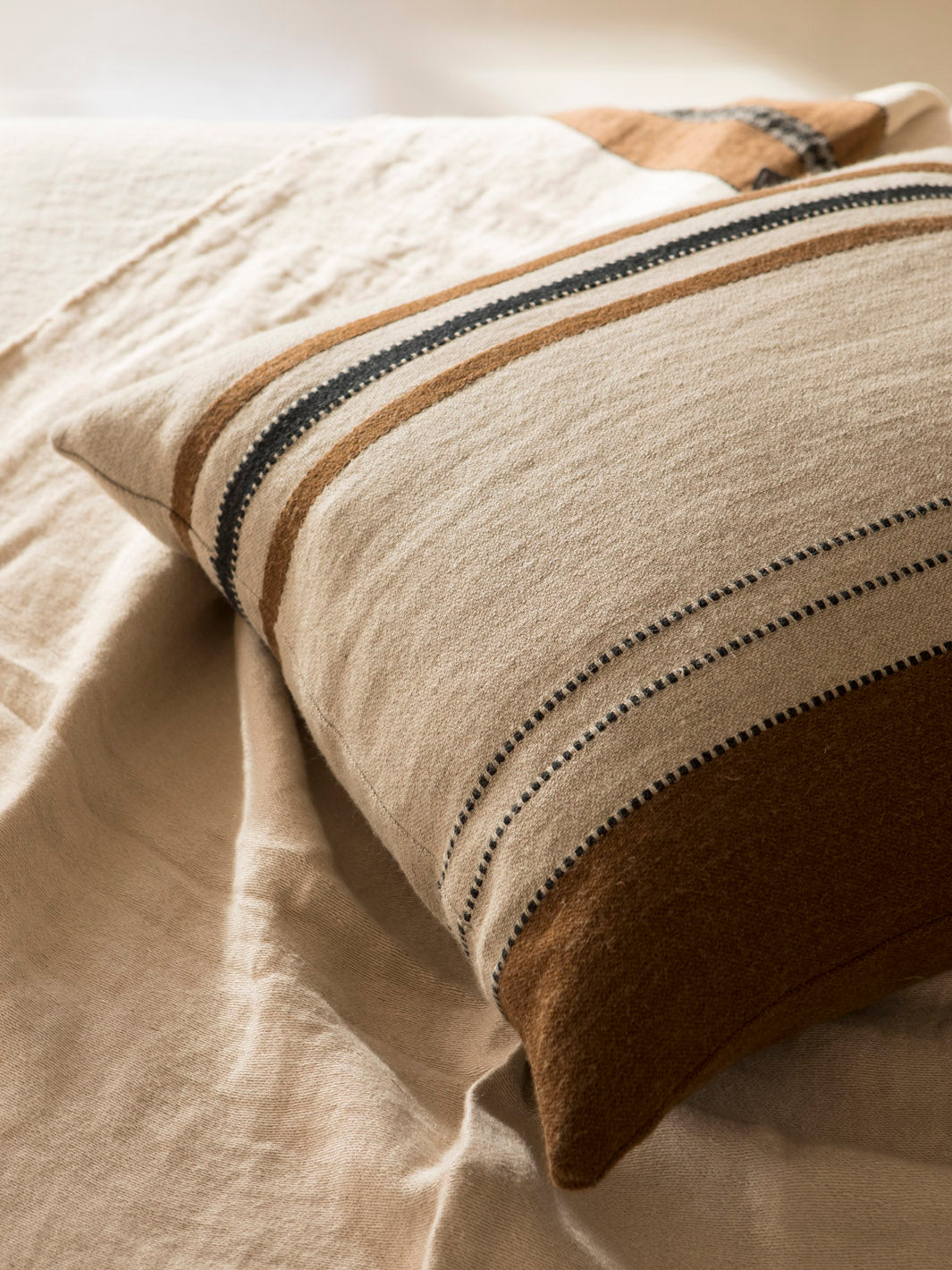Almohadón de lino natural belga de la firma Libeco con relleno de pluma de pato ligero, con un efecto suave y envolvente. Su agradable tacto y su calidad lo convierten en un complemento ideal para tu salón o dormitorio.