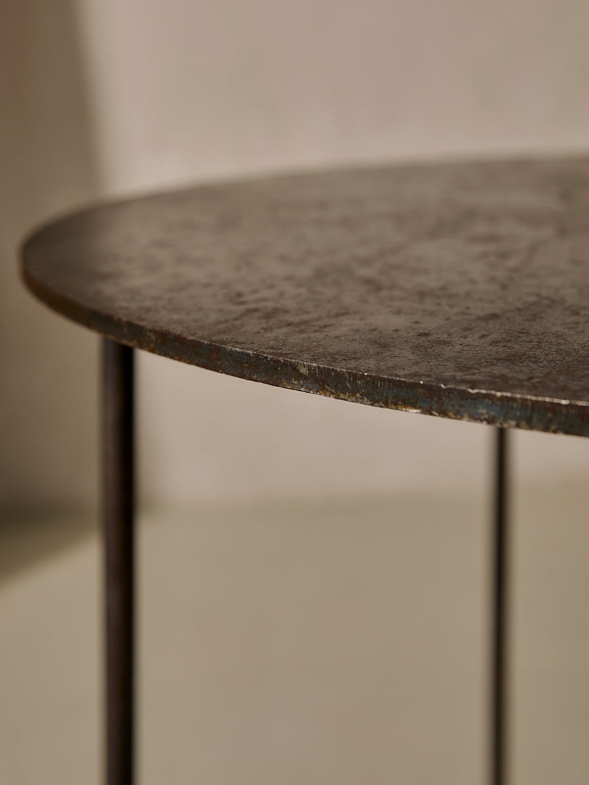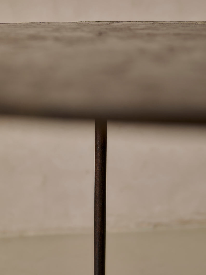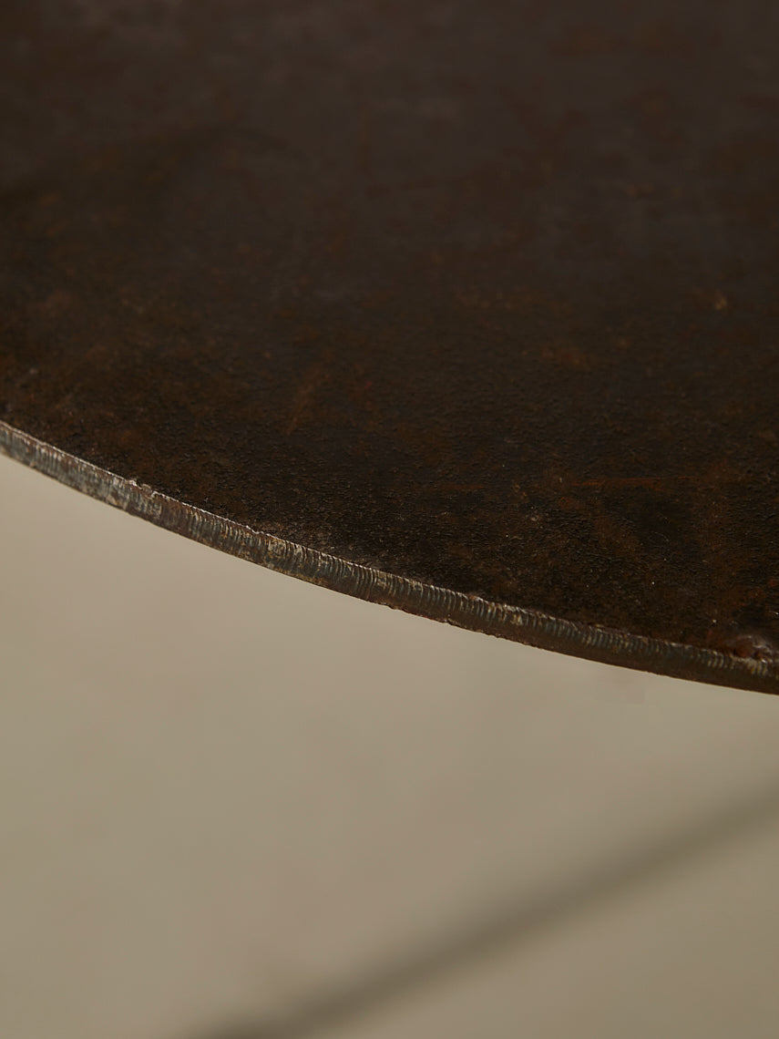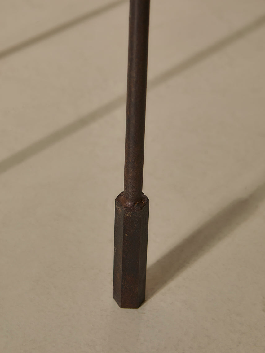 Diseño estructural de fuerte presencia, realizado en hierro macizo trabajado artesanalmente, con un acabado que resalta la textura natural del metal.