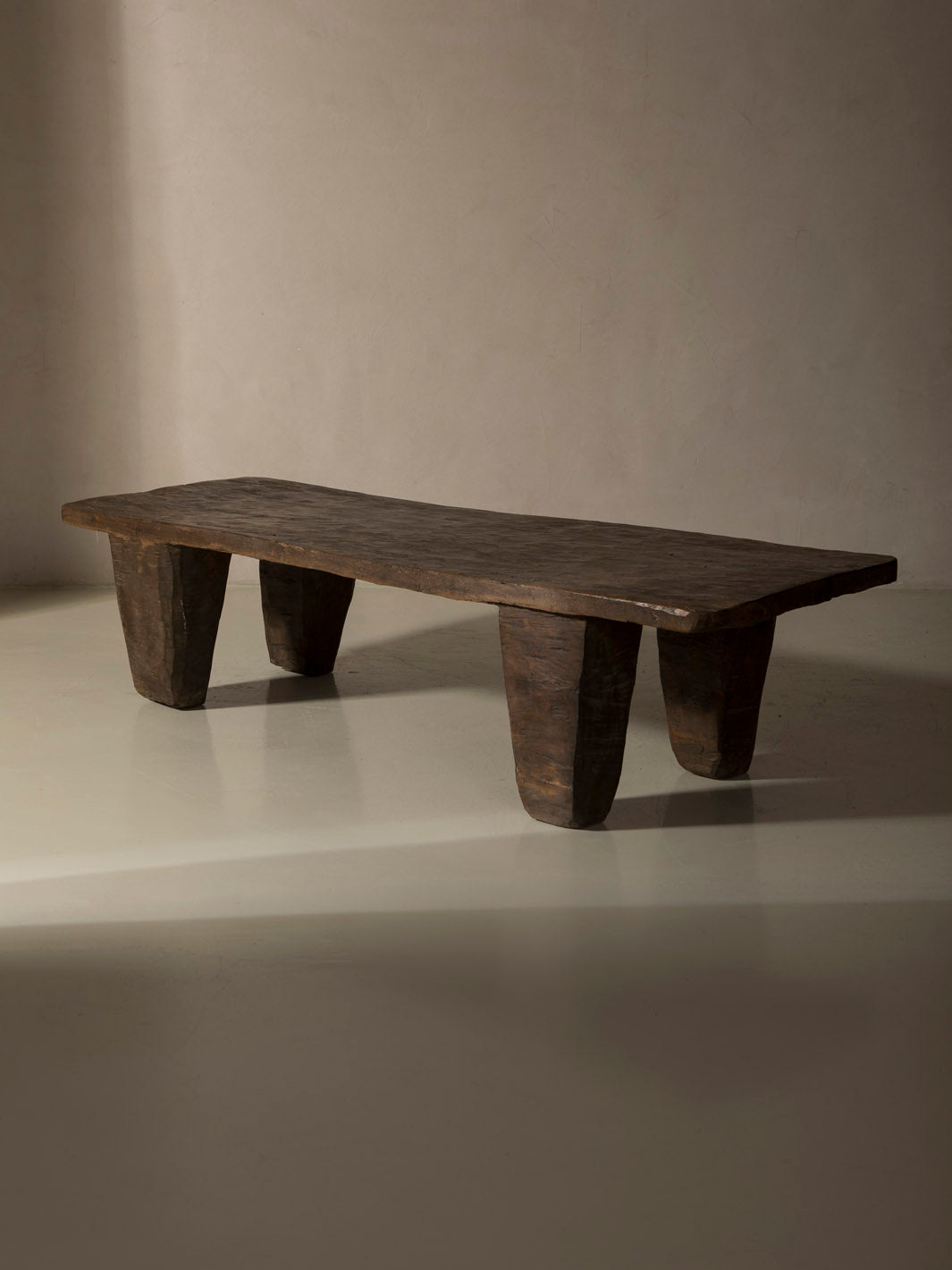 Mesa de centro. En cada etapa del diseño hubo un compromiso de mostrar las manos del artesano en la pieza; cada marca de lijado, rasguño y desgaste revela una historia sobre las herramientas y las manos que crearon la pieza.