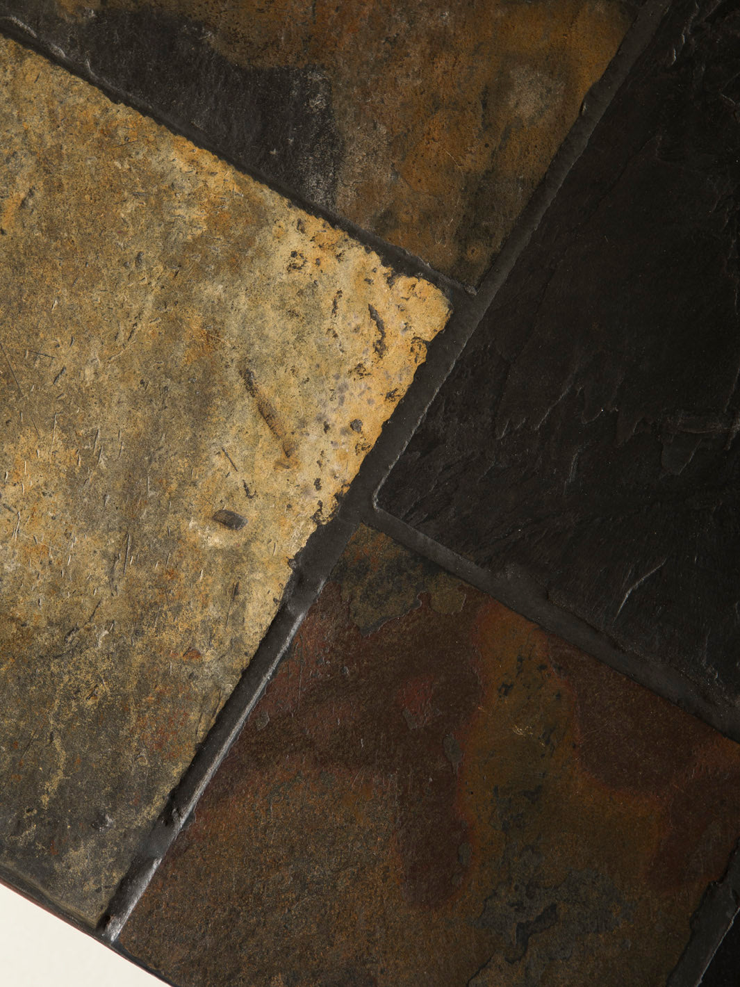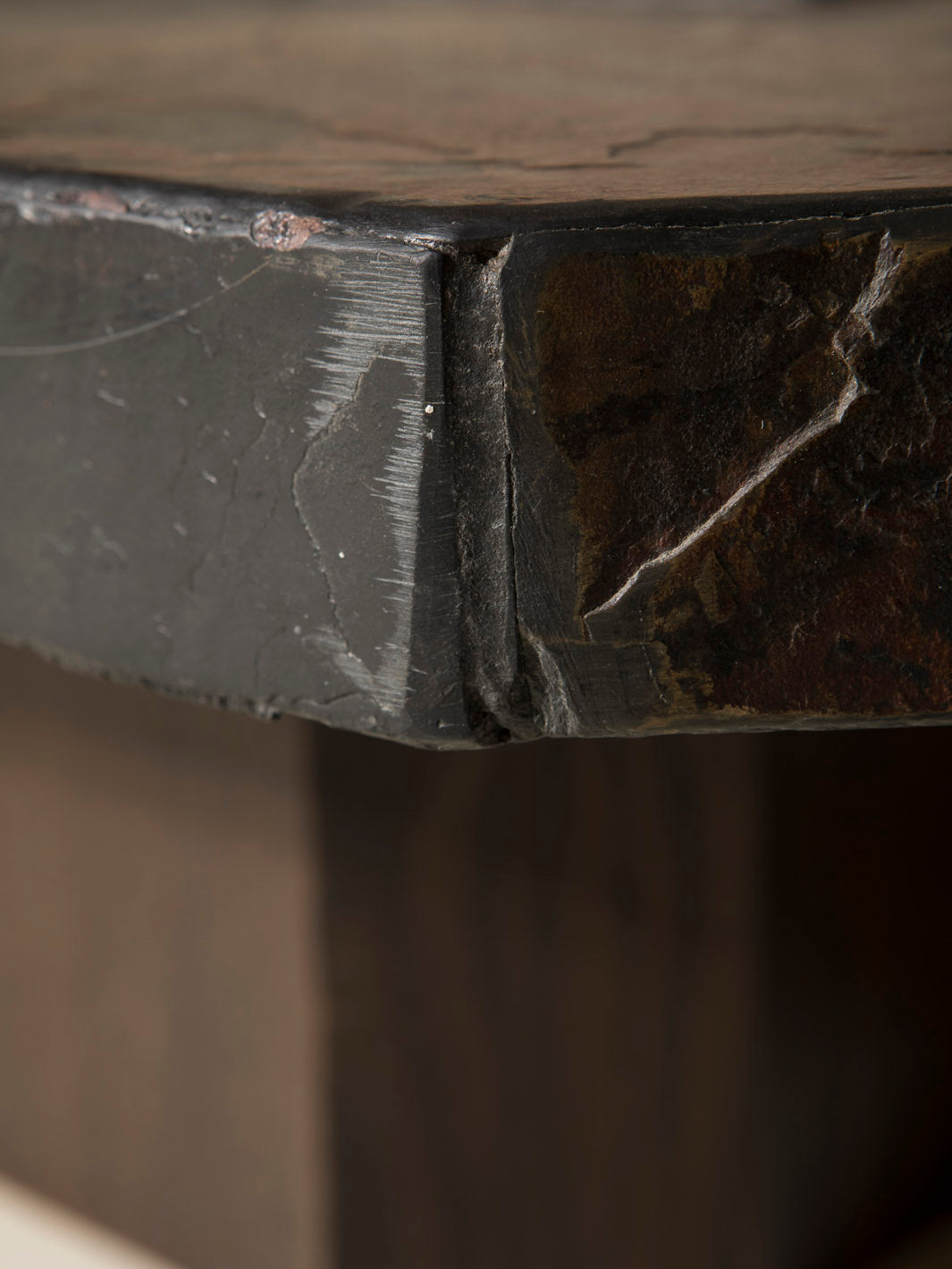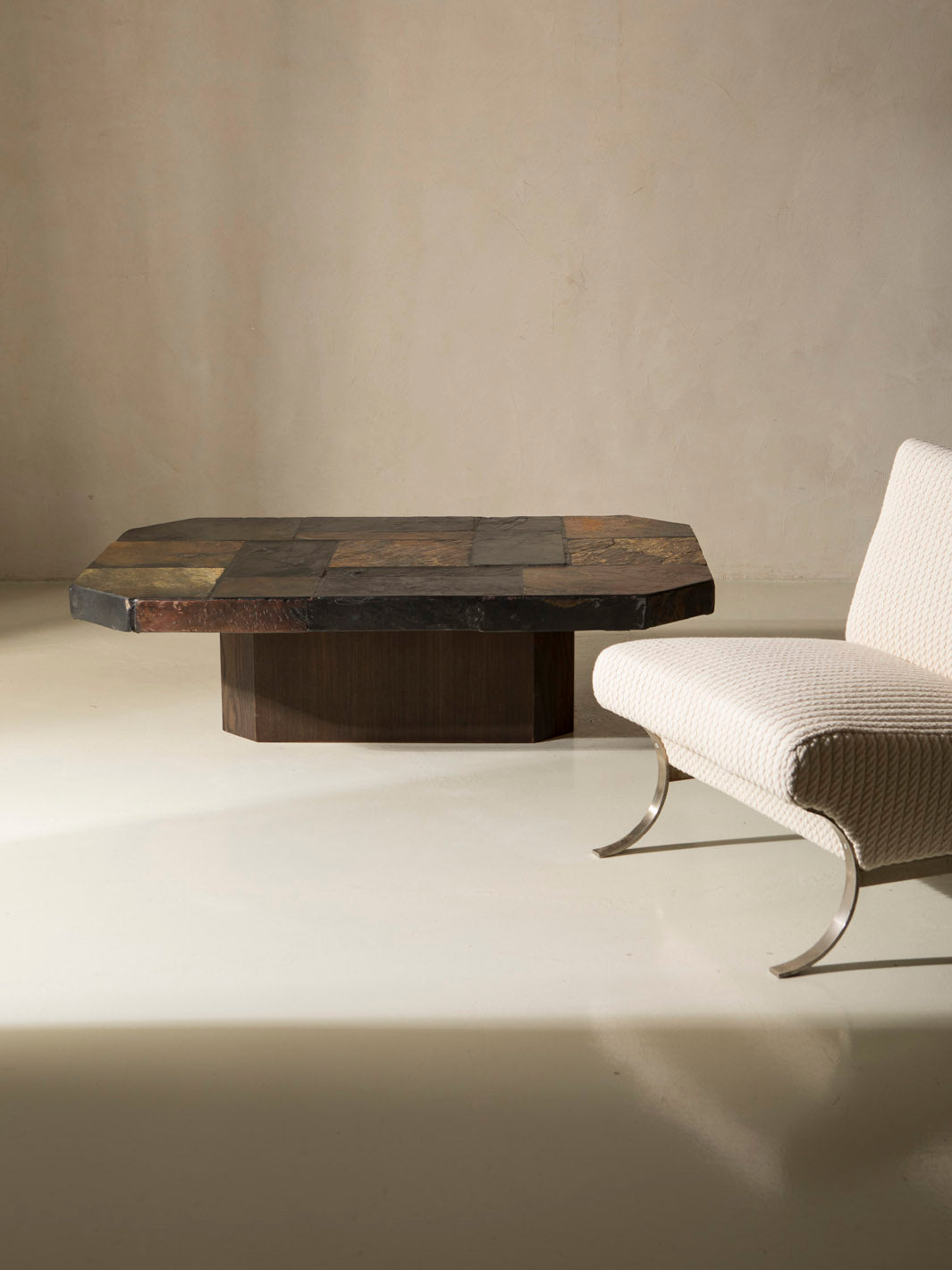 Mesa de centro de piedra con estructura de hierro, original de Suiza de los años 70.
