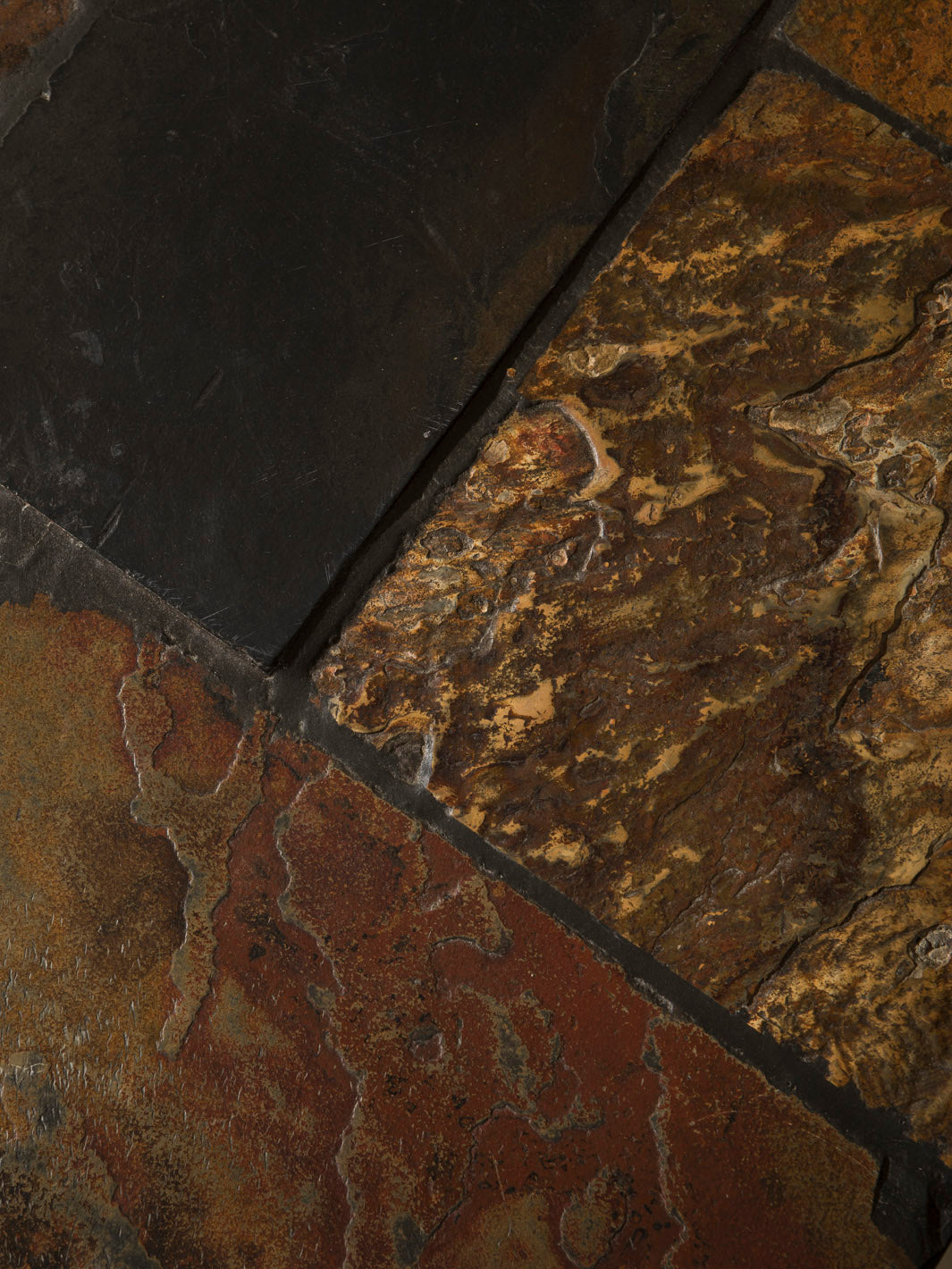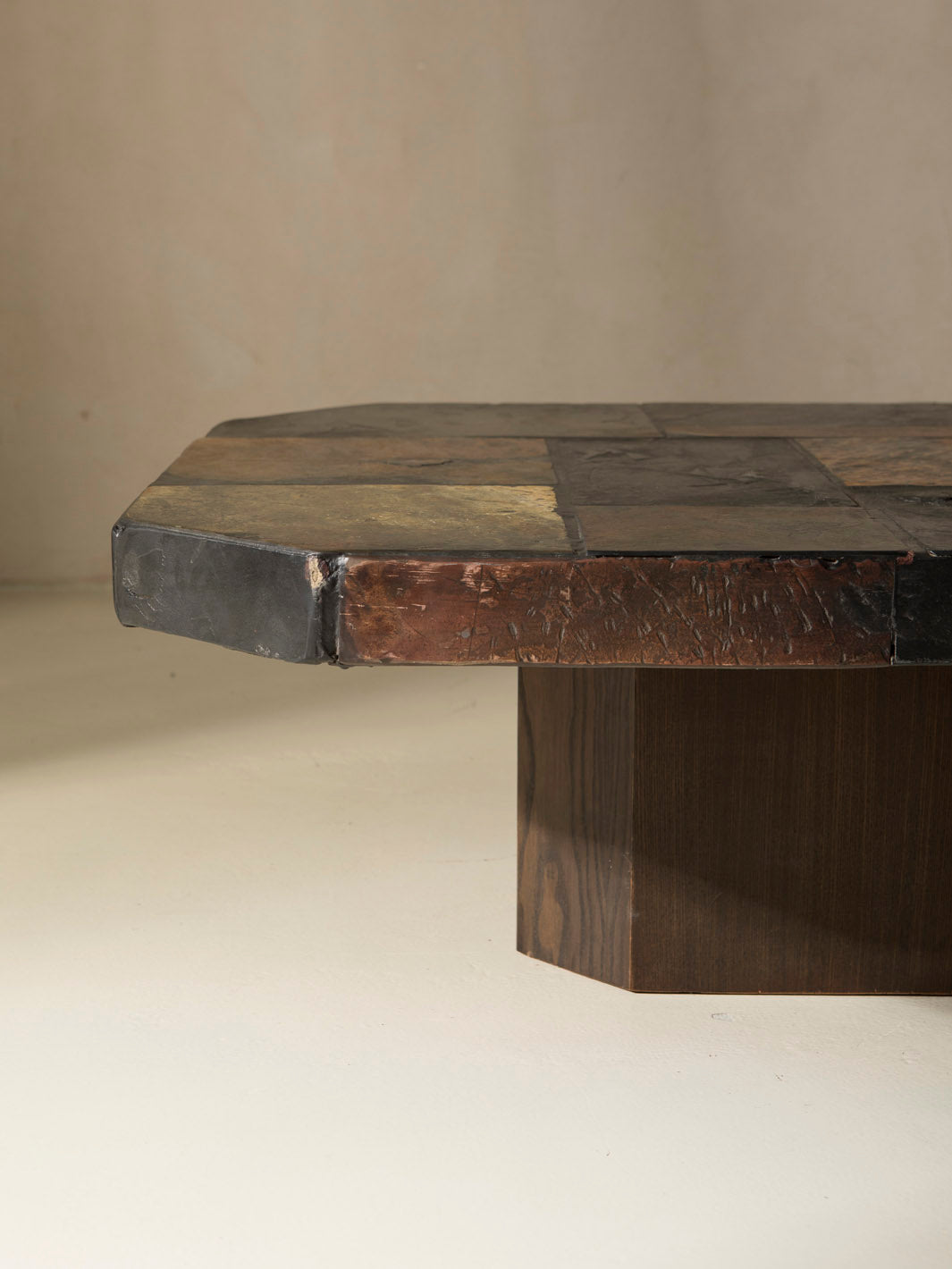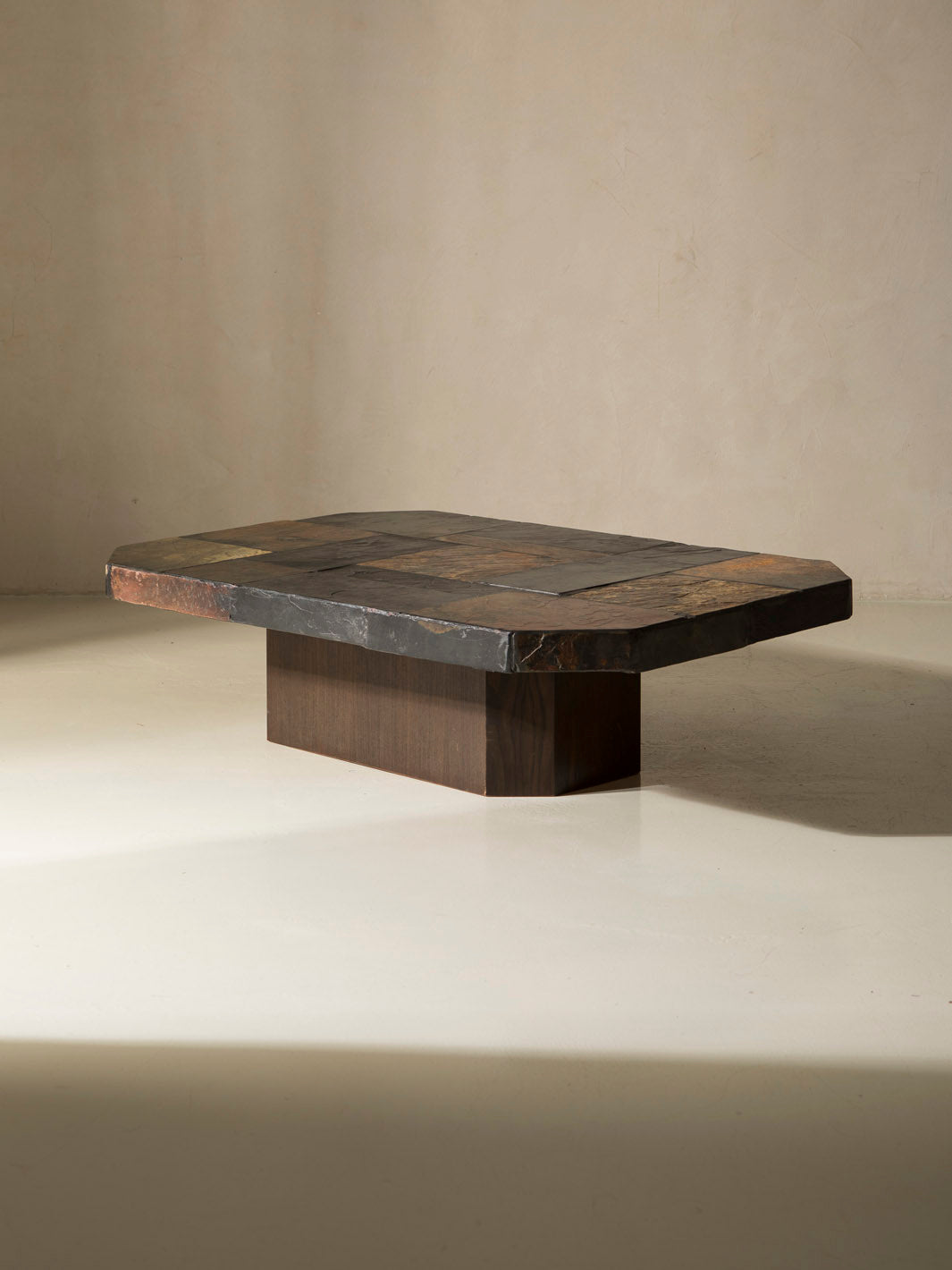 Mesa de centro de piedra con estructura de hierro, original de Suiza de los años 70.