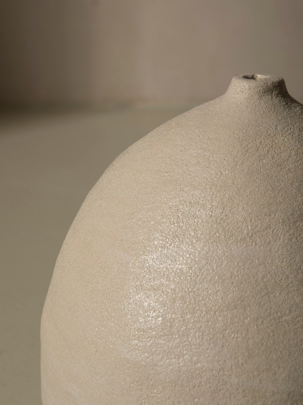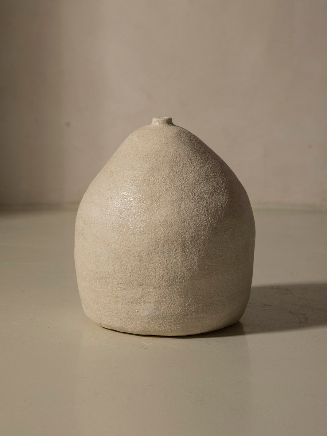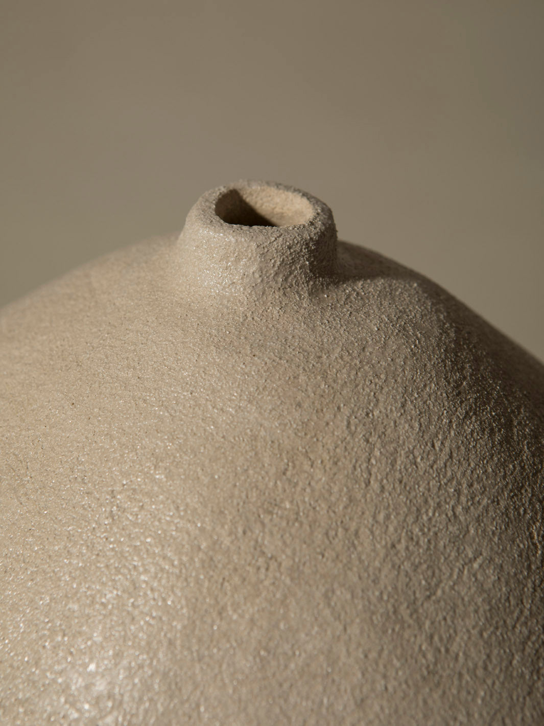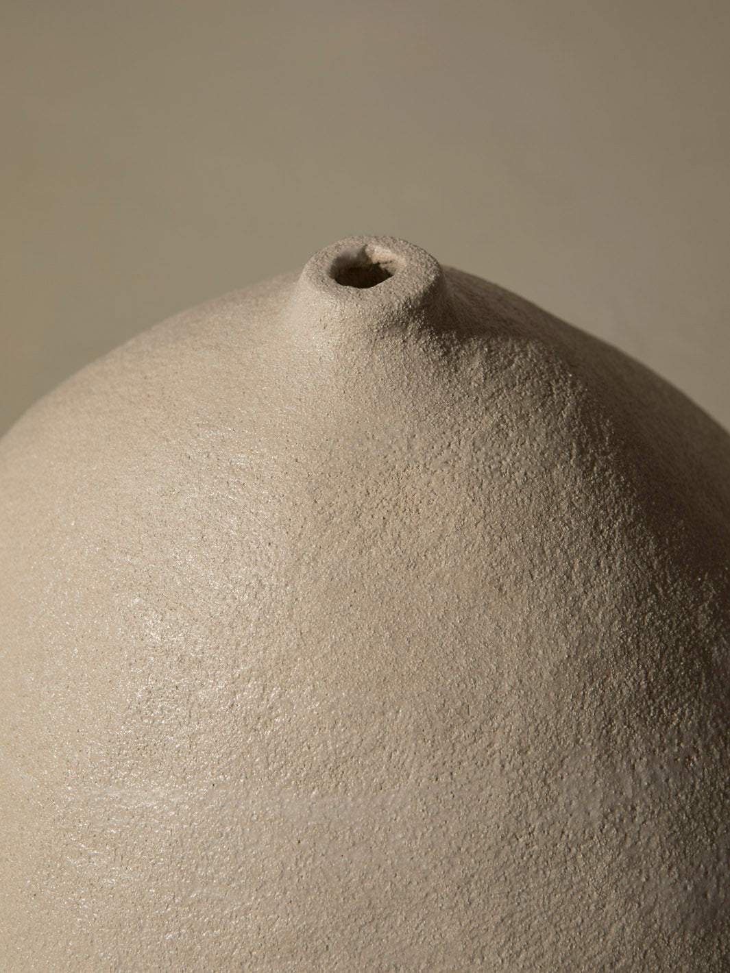 Jarrón Echo 001 en tonos claros, diseñado en exclusiva por Omé Studios para RV74. Cada pieza se tornea y luego se vuelve a trabajar para crear esta forma única y orgánica. Por eso tienen sus propias singularidades, y sus formas y tamaños pueden variar considerablemente. Cada diseño es único, hecho a mano con una forma orgánica. Por eso sus tamaños pueden variar considerablemente. Se puede lavar en el lavavajillas, pero se recomienda lavarlo a mano para cuidarlo lo mejor posible.