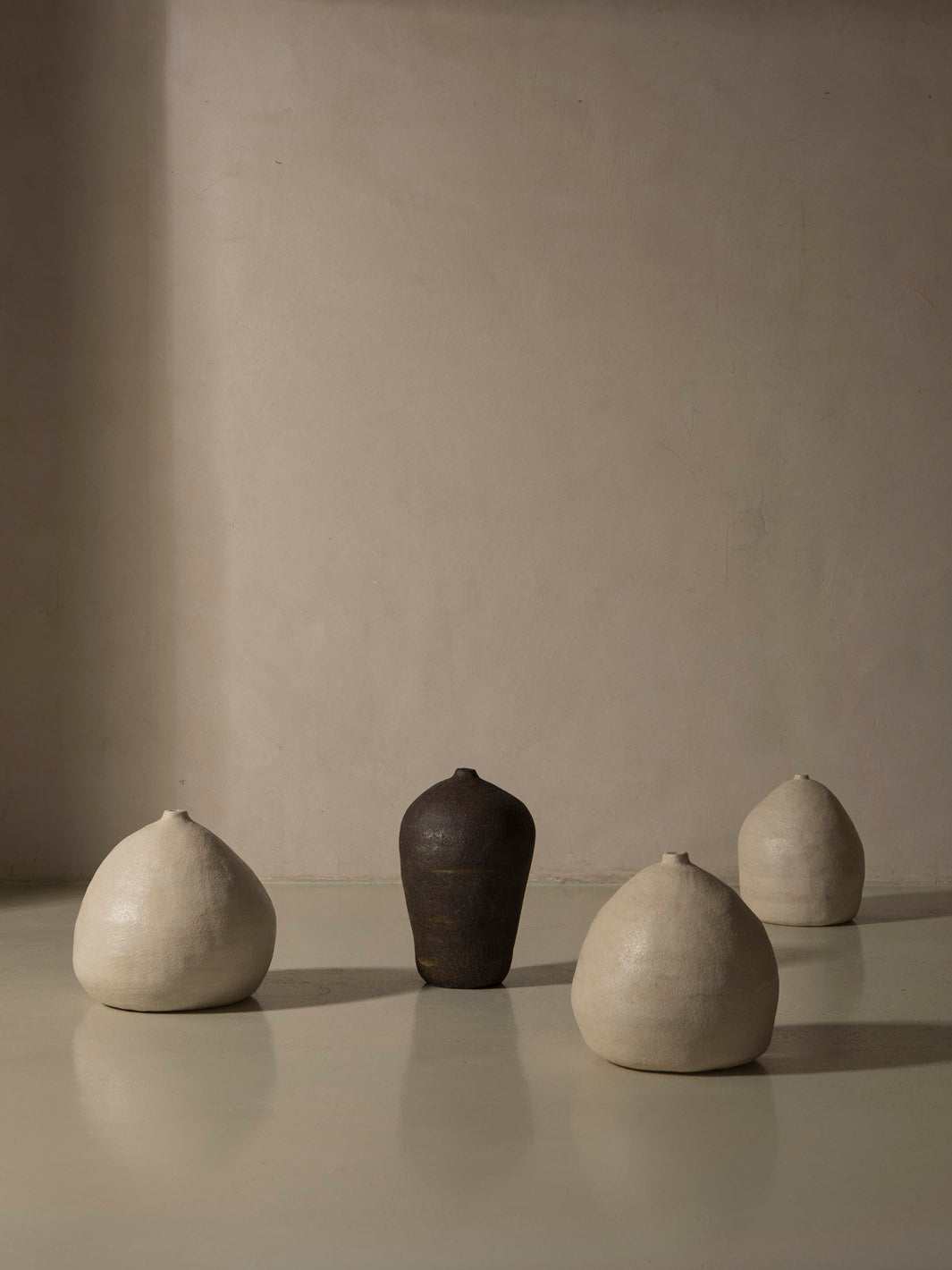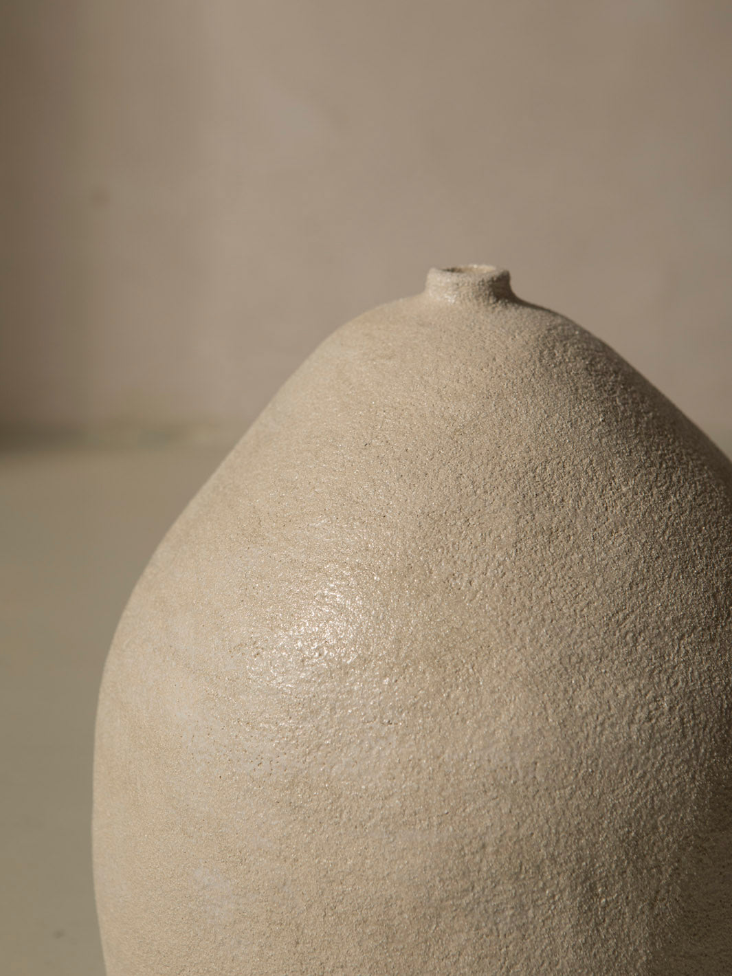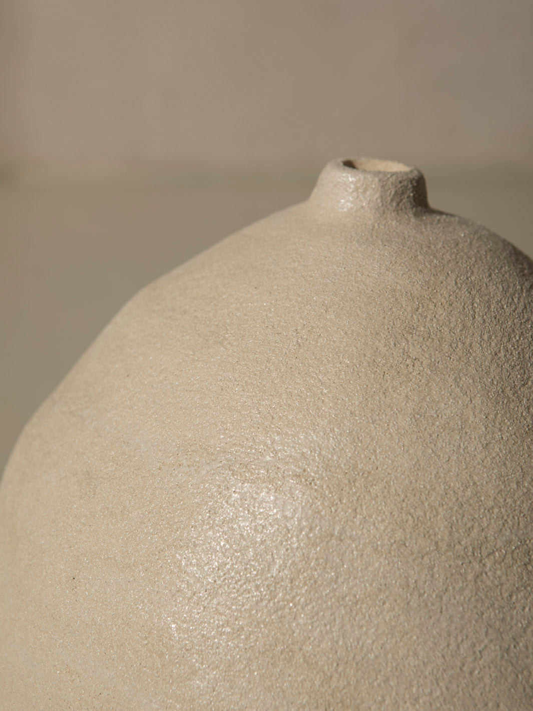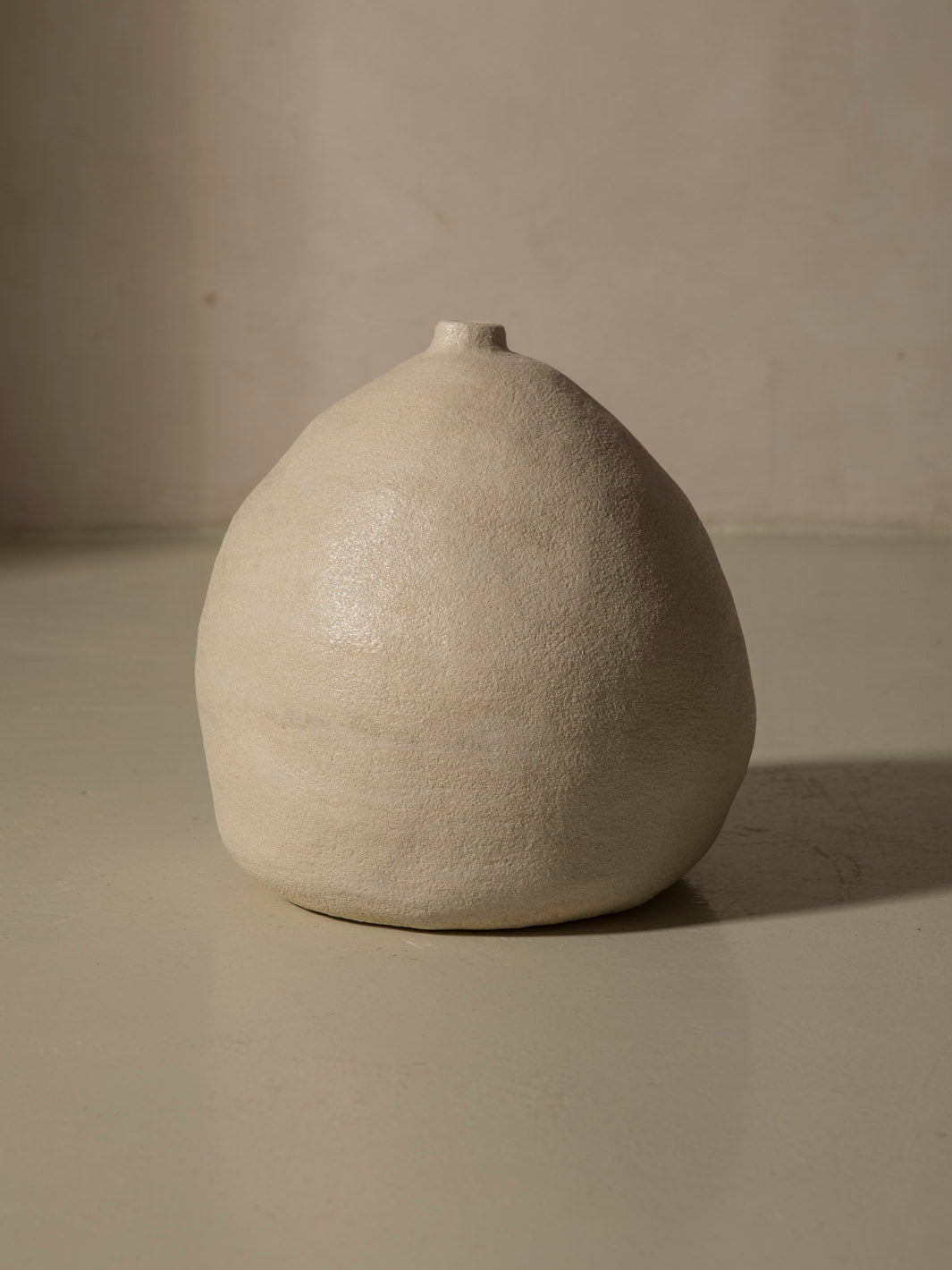 Jarrón Echo 001 en tonos claros, diseñado en exclusiva por Omé Studios para RV74. Cada pieza se tornea y luego se vuelve a trabajar para crear esta forma única y orgánica. Por eso tienen sus propias singularidades, y sus formas y tamaños pueden variar considerablemente. Cada diseño es único, hecho a mano con una forma orgánica. Por eso sus tamaños pueden variar considerablemente. Se puede lavar en el lavavajillas, pero se recomienda lavarlo a mano para cuidarlo lo mejor posible.