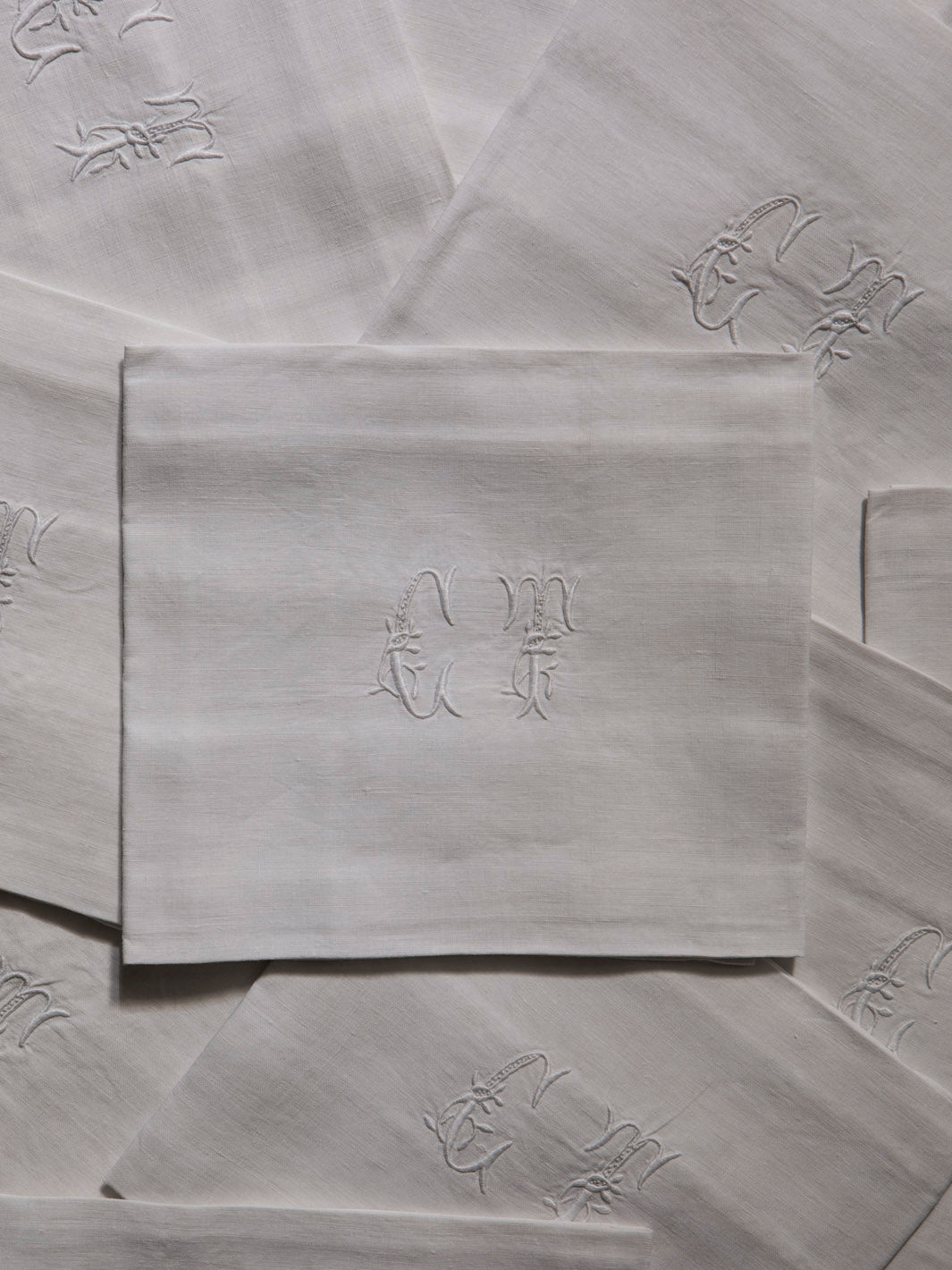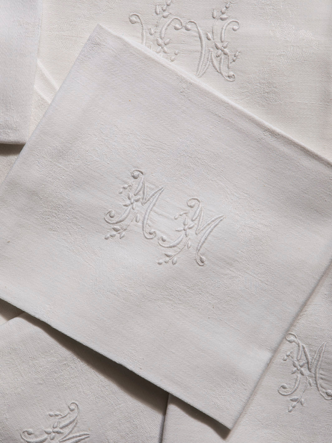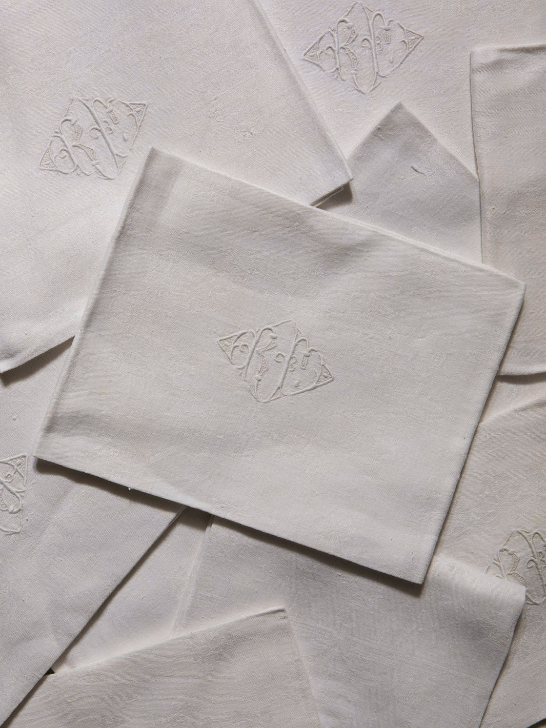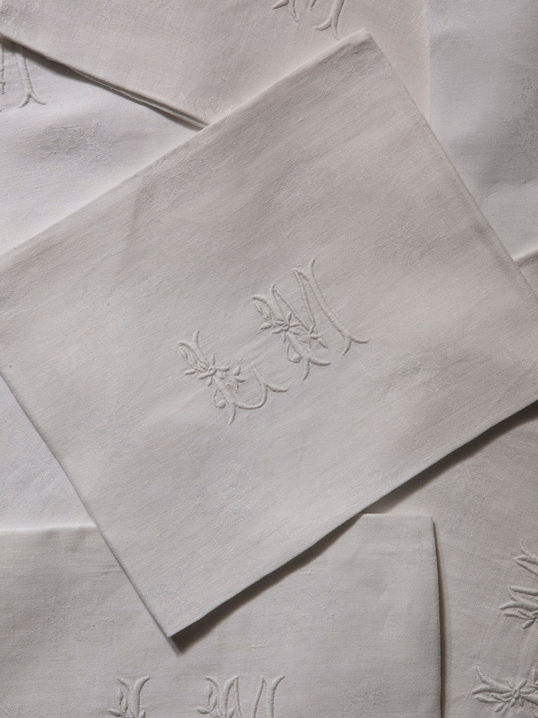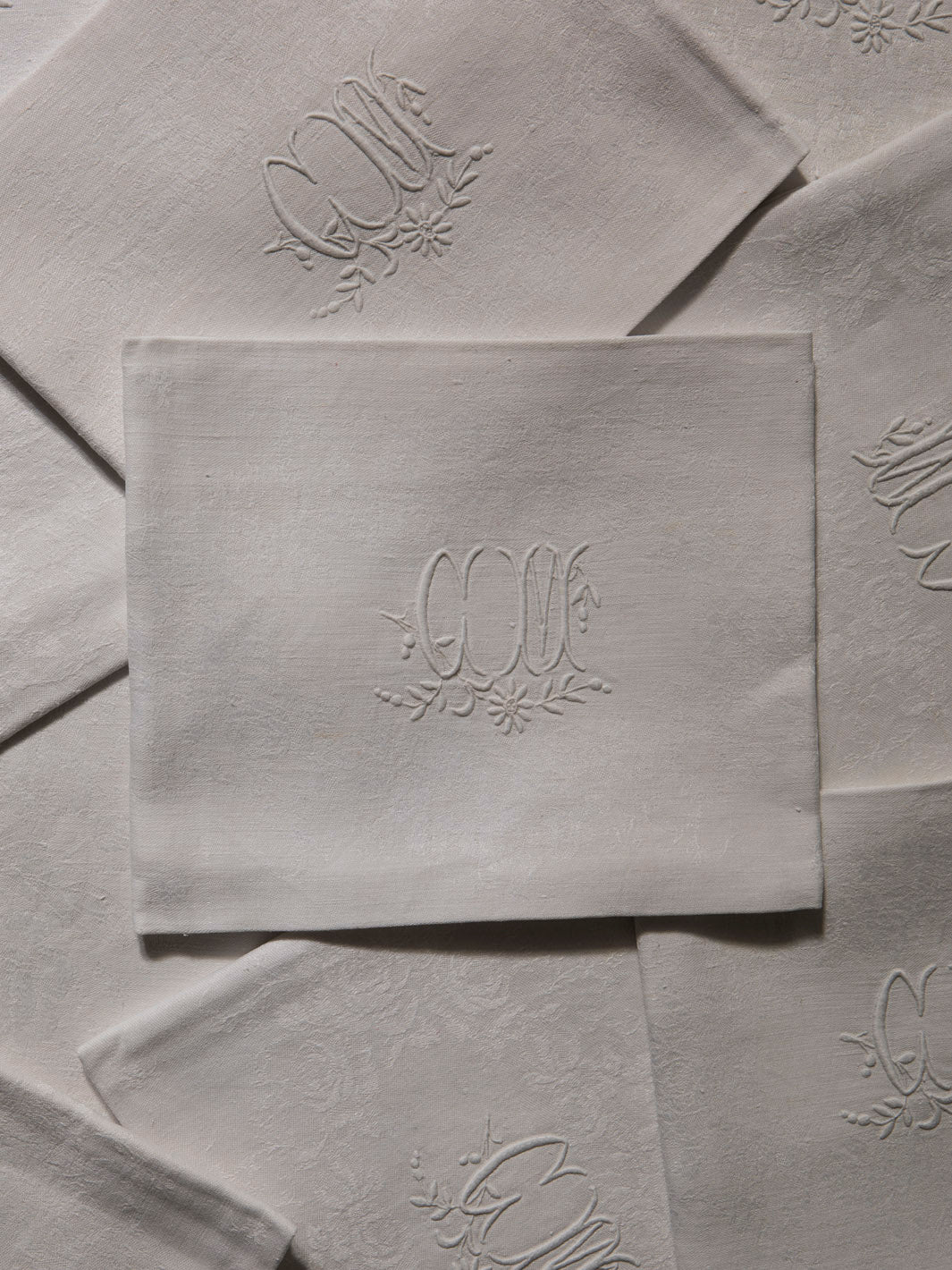 se bordaron minuciosamente a mano las iniciales de sus propietarios y se tejieron en telares con los motivos decorativos deseados.