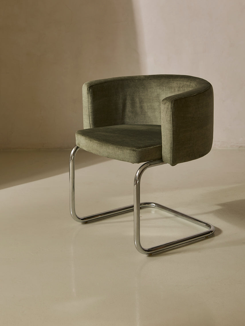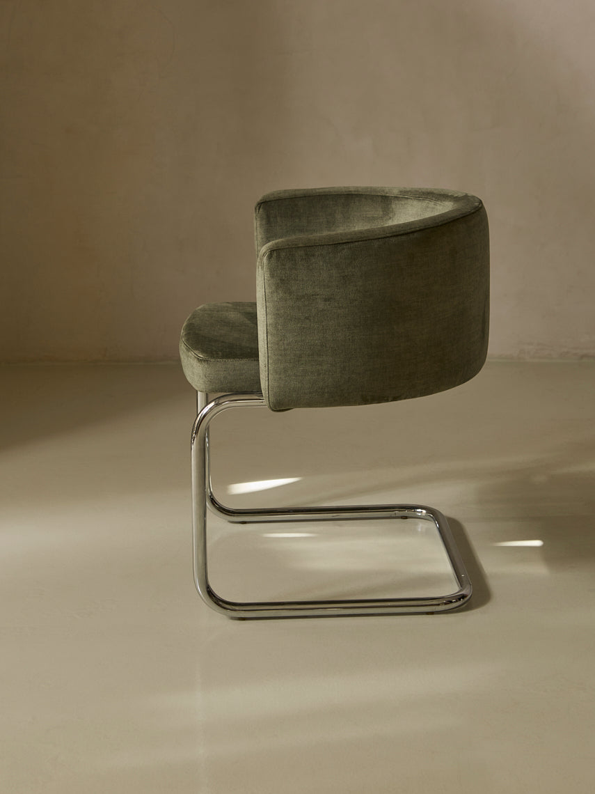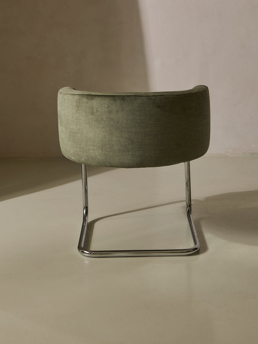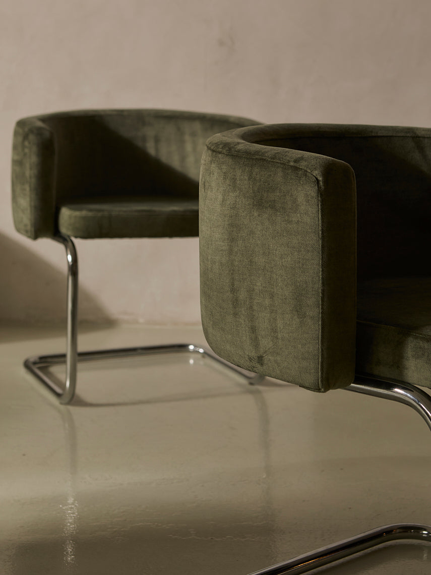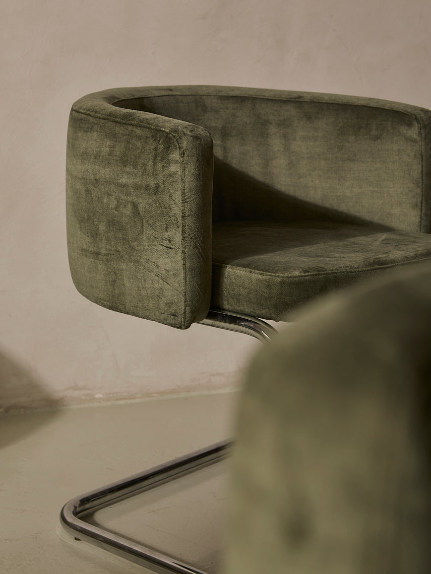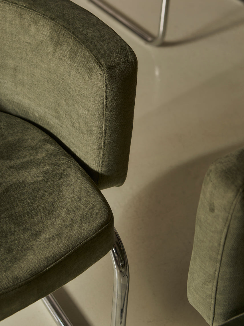 Juego de 6 sillas italianas de los años 70, con elegante respaldo curvo y base de metal cromado.