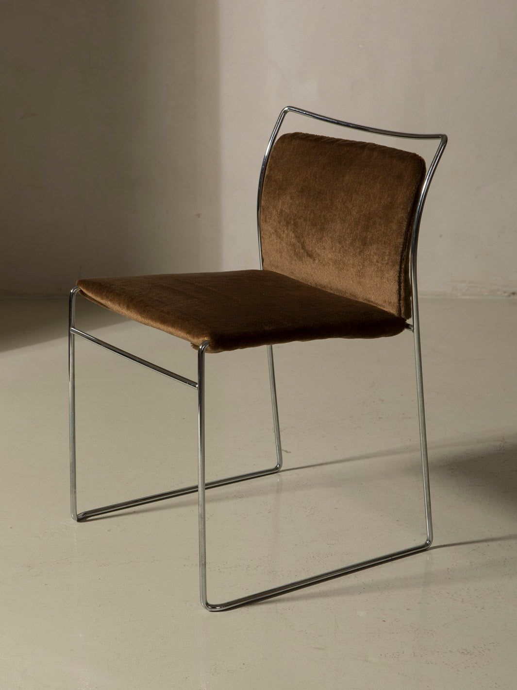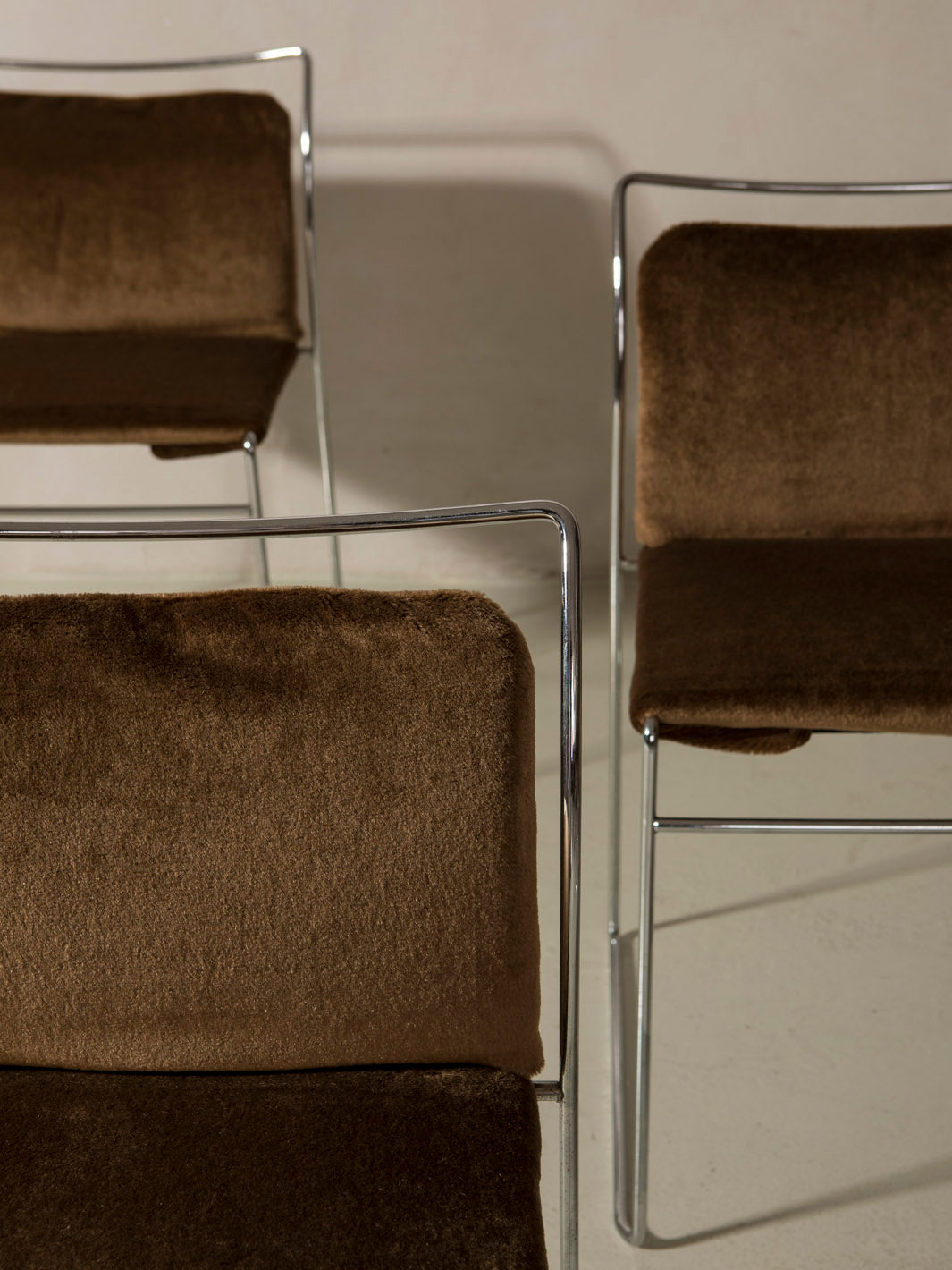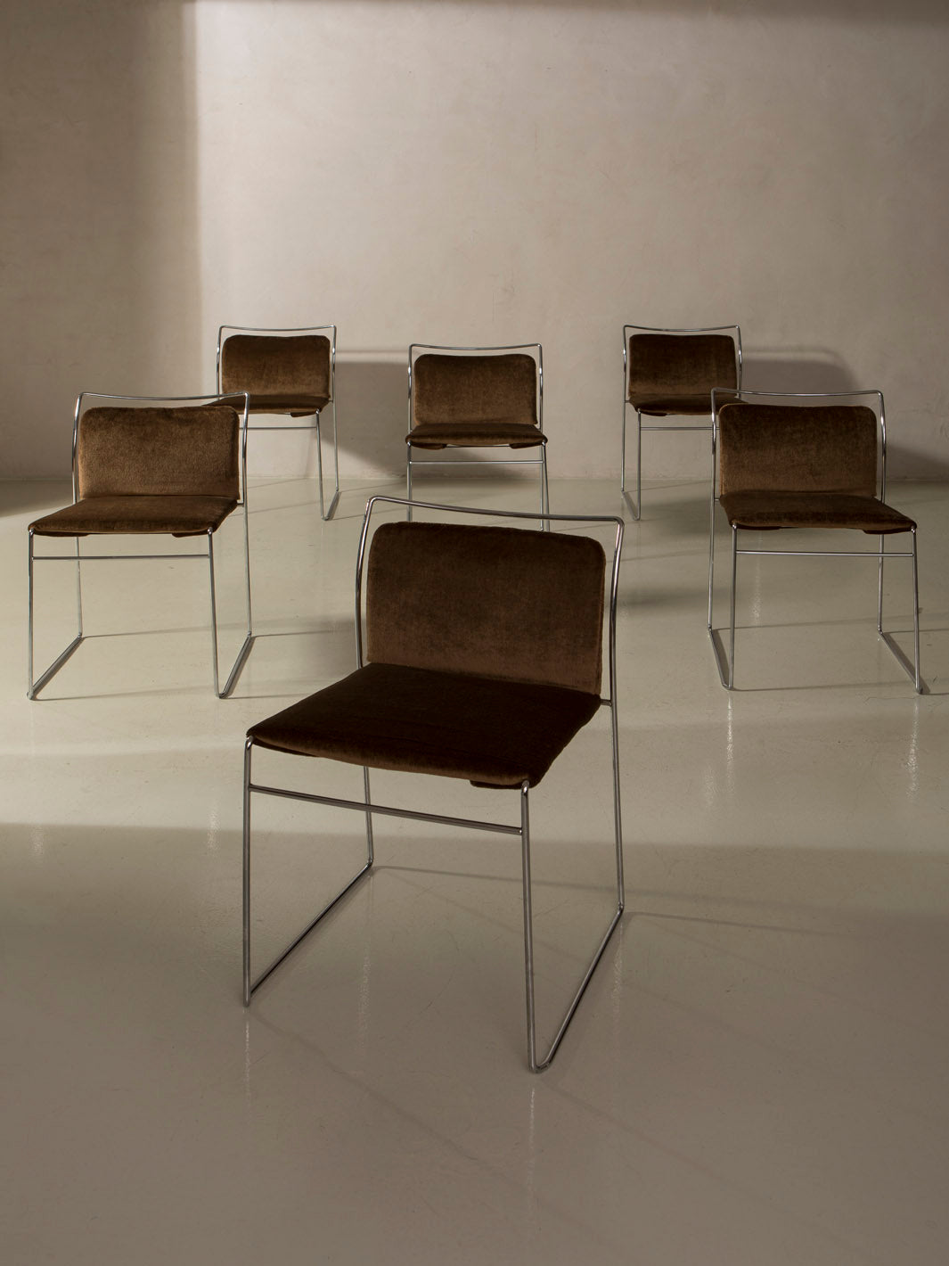Juego de 10 sillas Tulu, diseño original de Kazuhide Takahama para Simon Gavina, Italia, década de 1960. Estas sillas, convertidas en icono del diseño italiano de posguerra, destacan por su estructura tubular cromada y su asiento y respaldo tapizados en tela tensada.