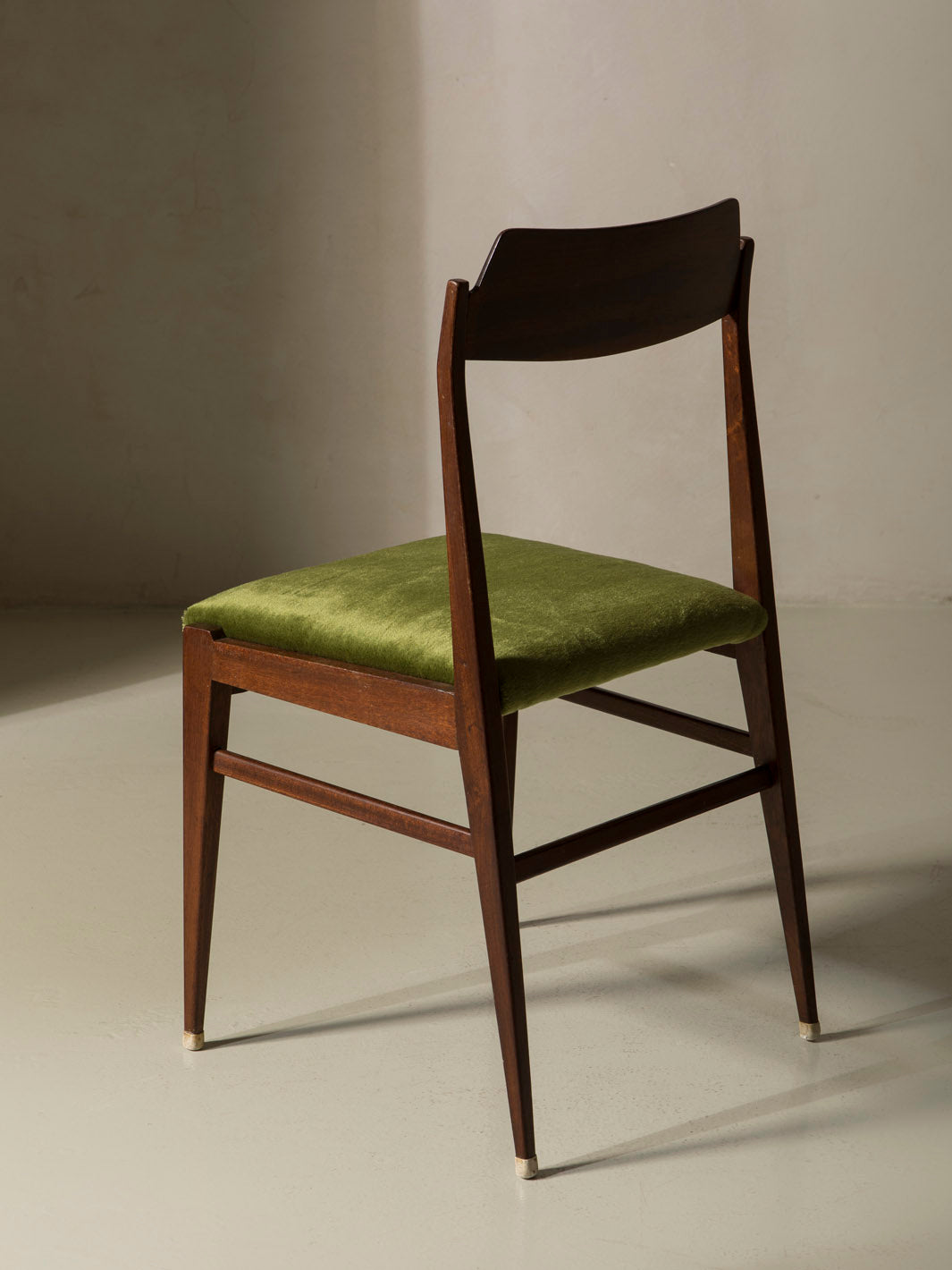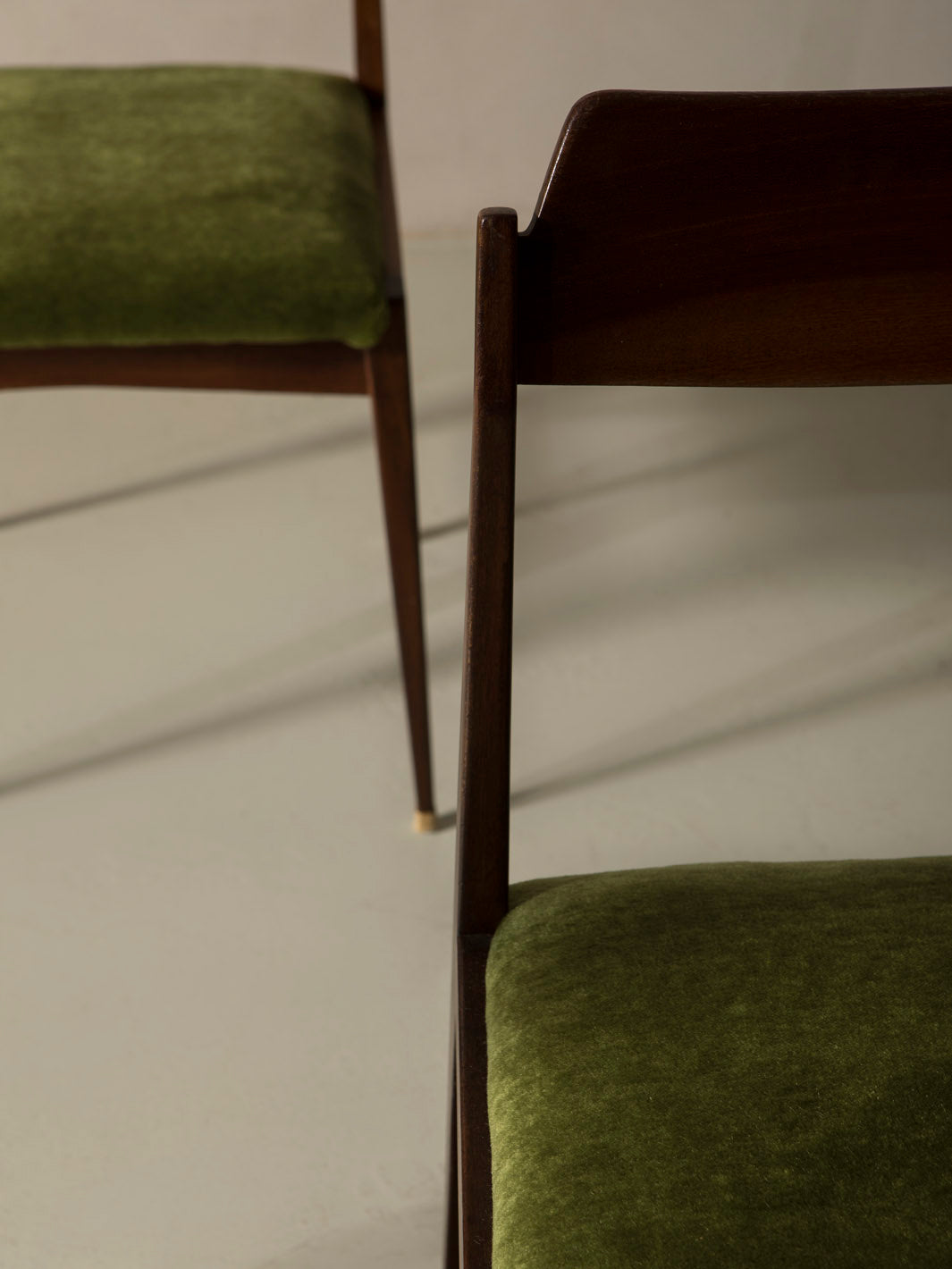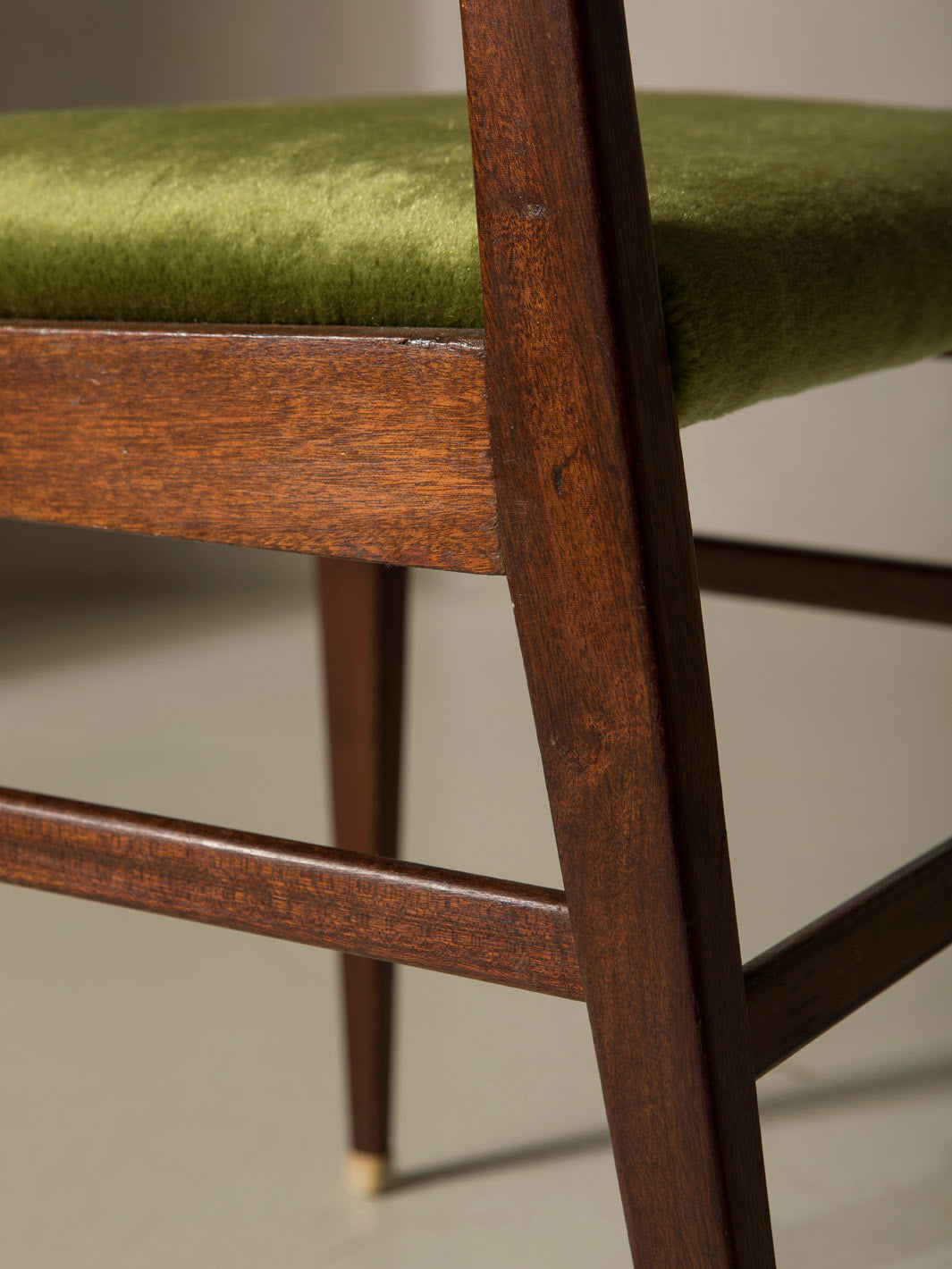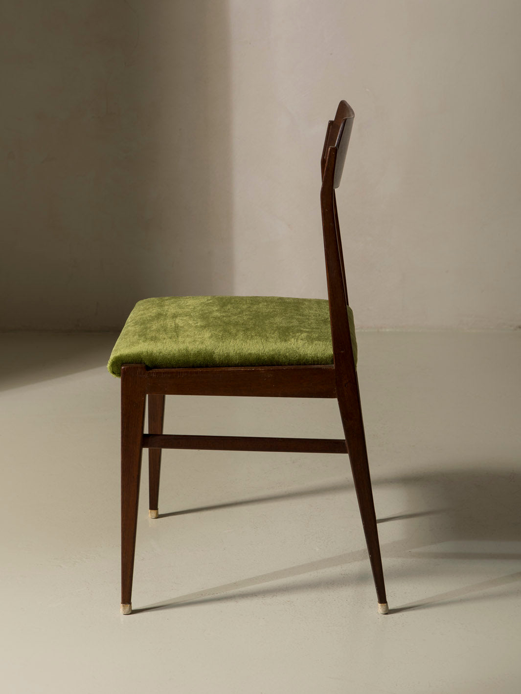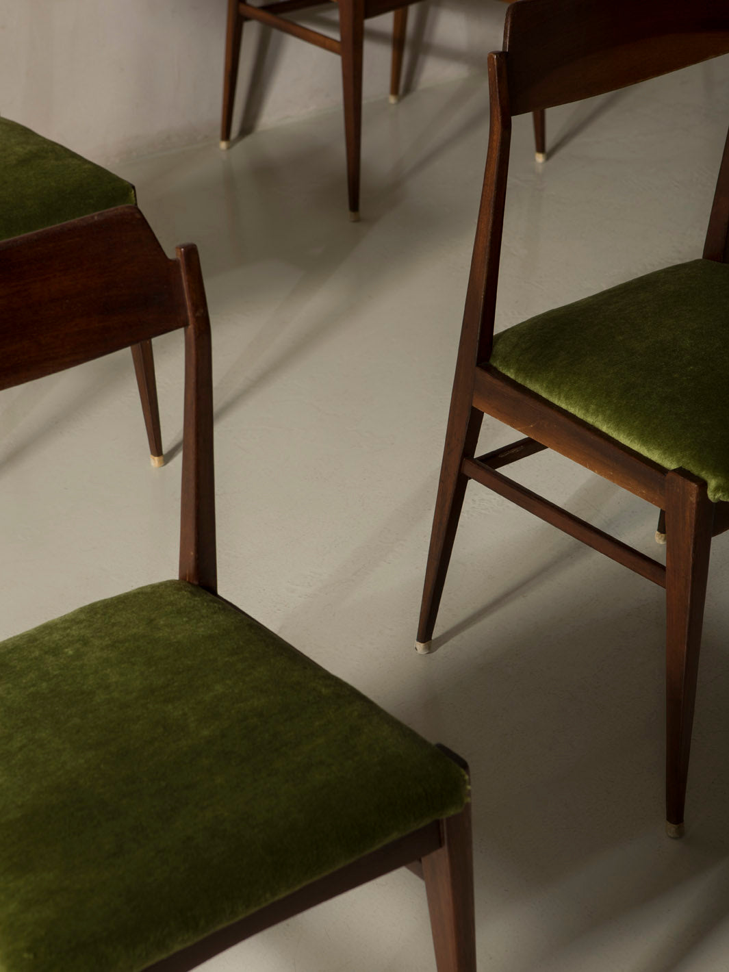 Juego 6 sillas Palosanto tapizadas en verde años 50