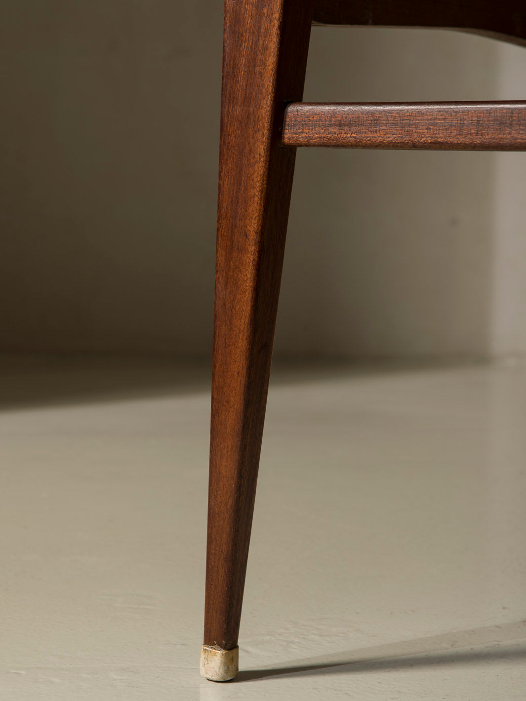 Juego de seis sillas italianas originales de los años 50. Realizadas en palosanto macizo, ejemplo del refinamiento y la calidad artesanal del mobiliario italiano de mediados del siglo XX.