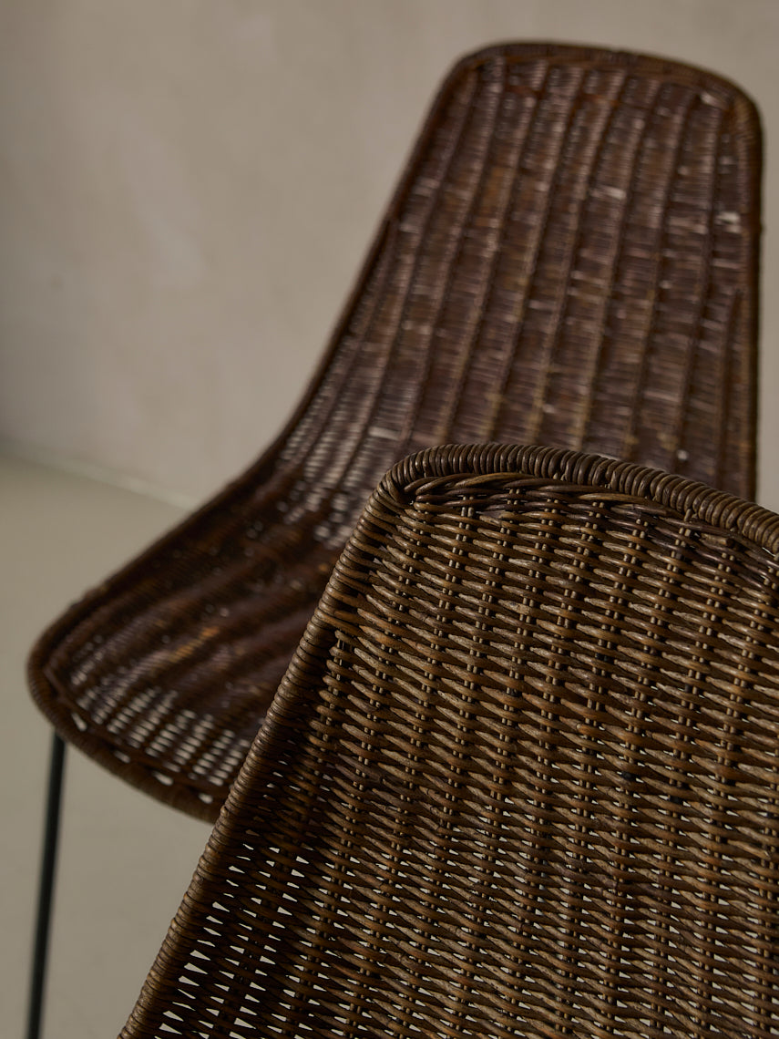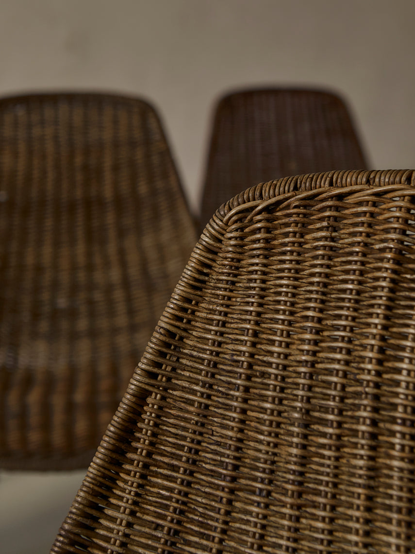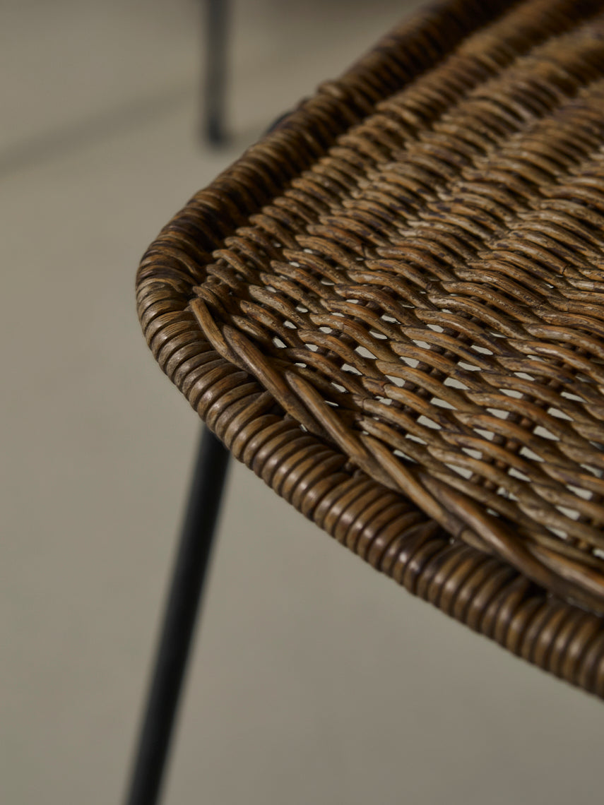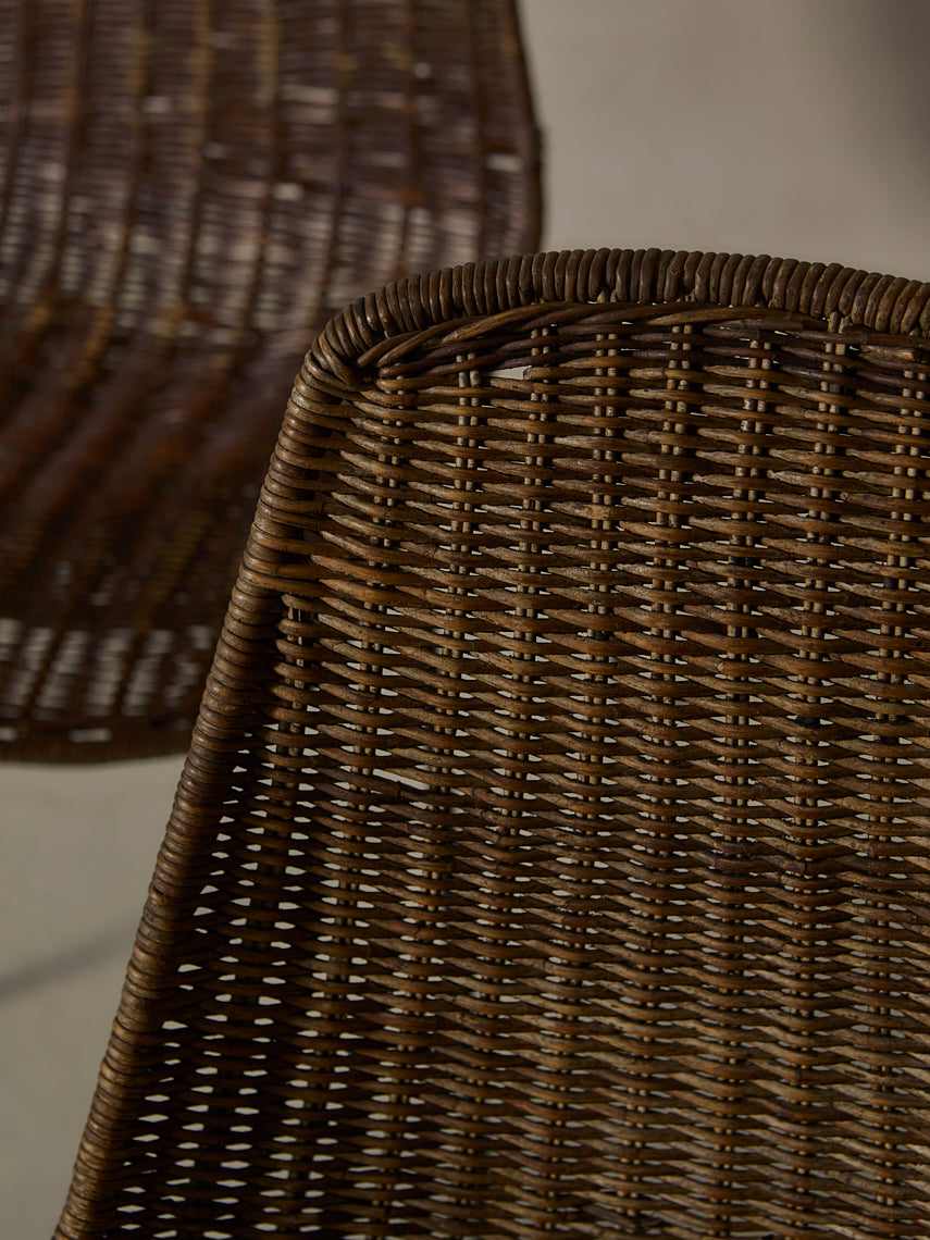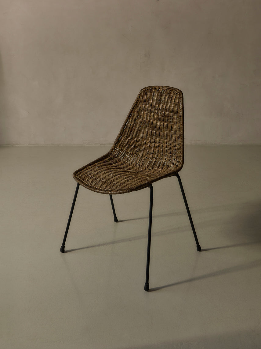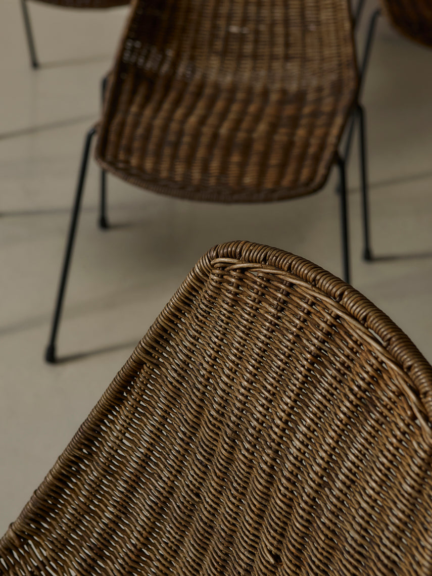 Juego de 8 sillas italianas de los diseñadores italianos Franco Campo y Carlo Graffi de ratán y hierro negro originales de los años 50.