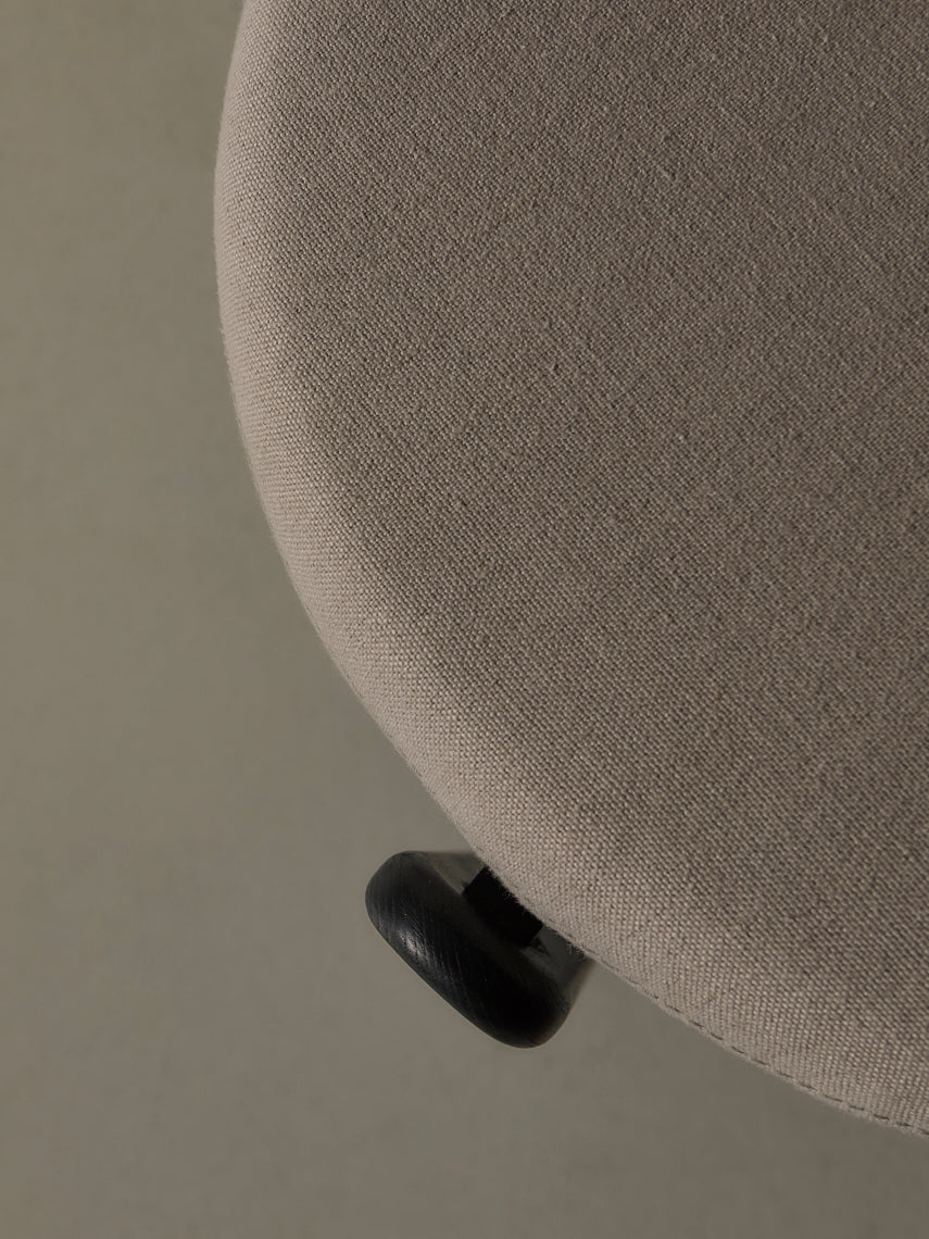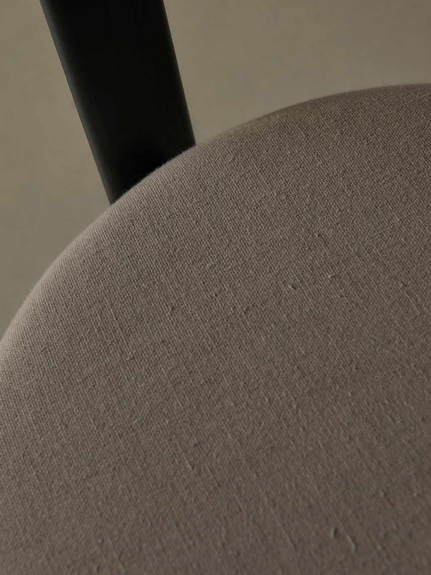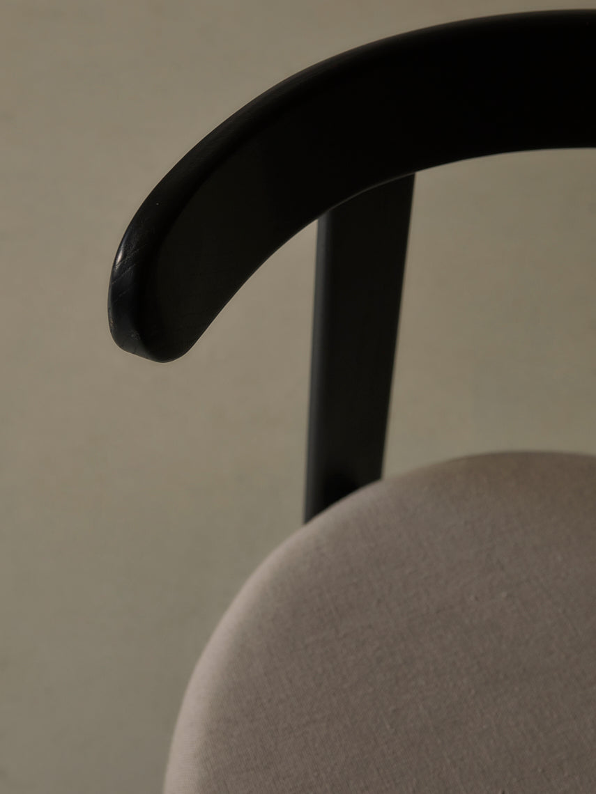 Silla de fresno con acabado lacado negro y revestimiento de lino natural.