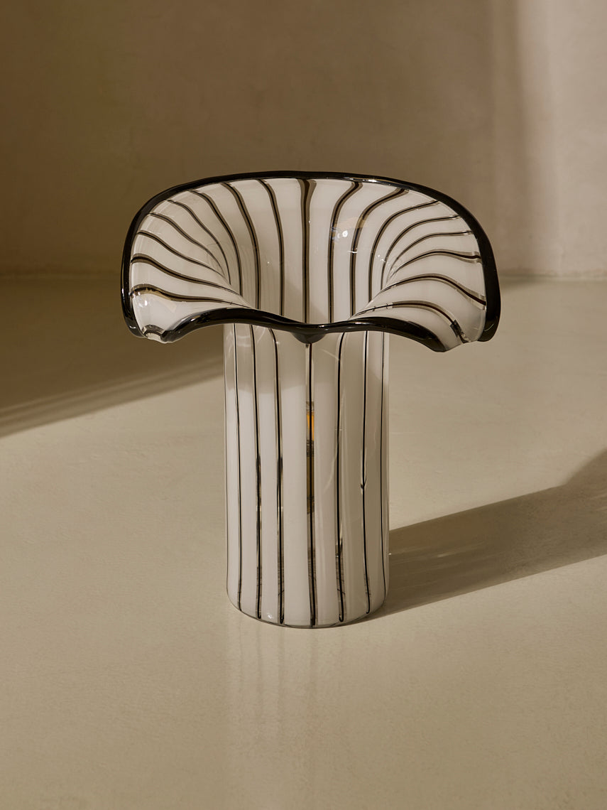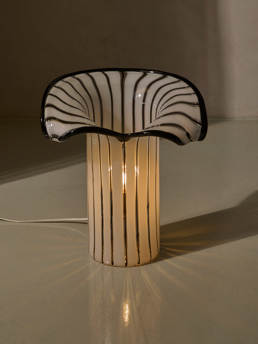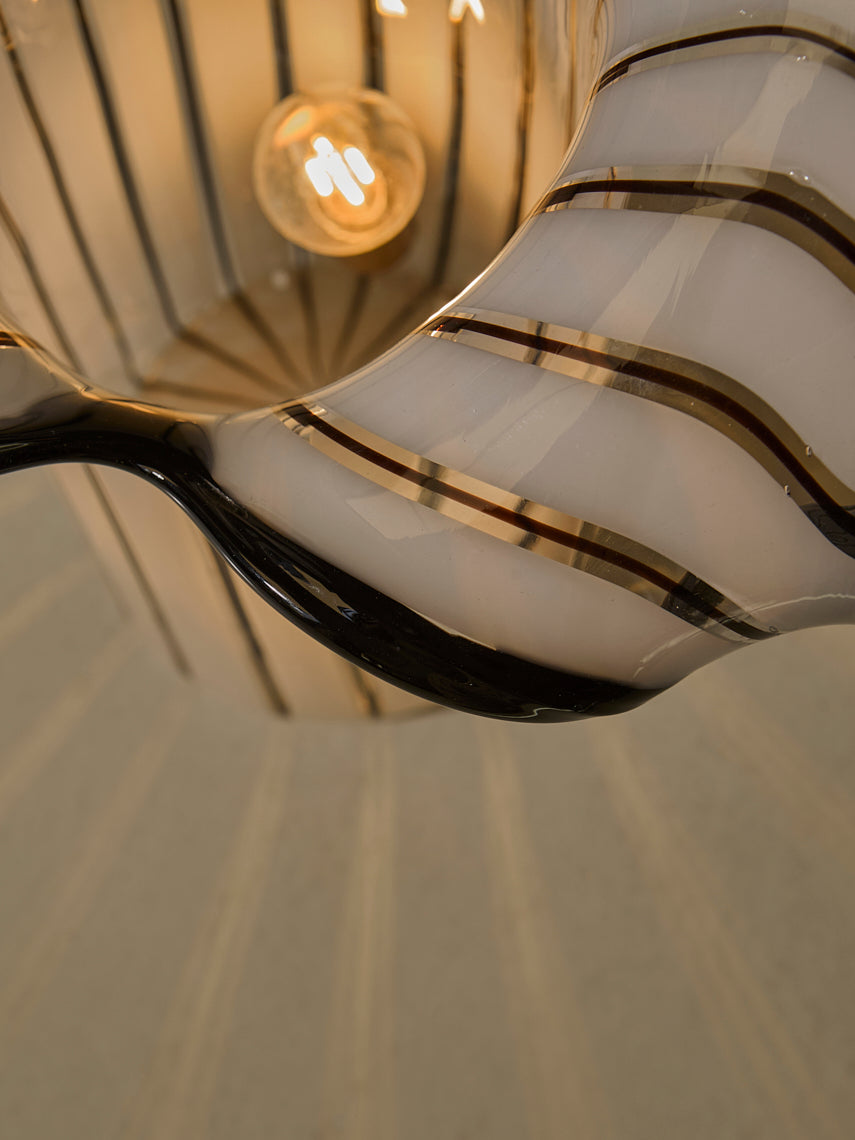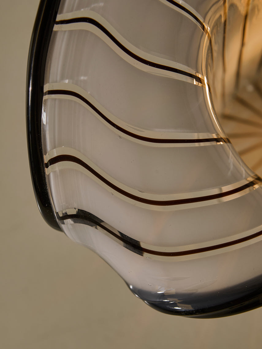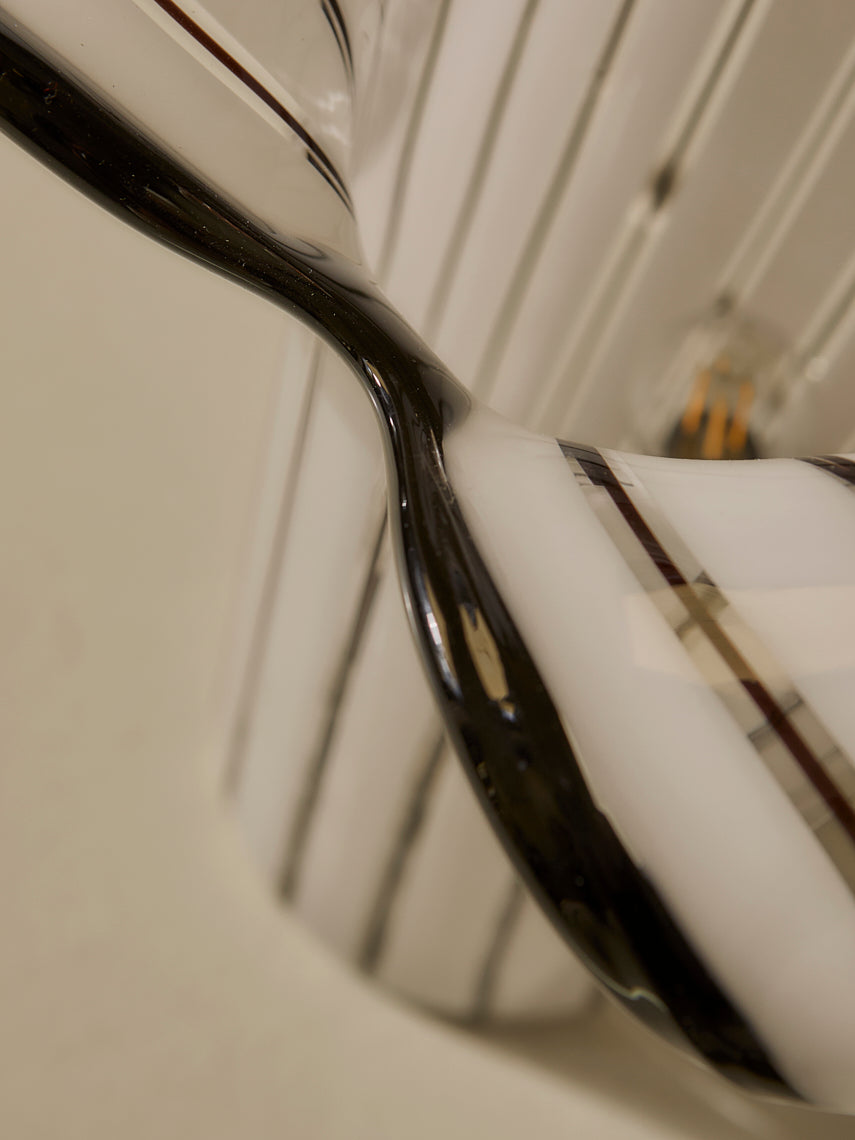 Lámpara trabajada en cristal de murano de rayas negras y blancas, original de Italia de los años 70.