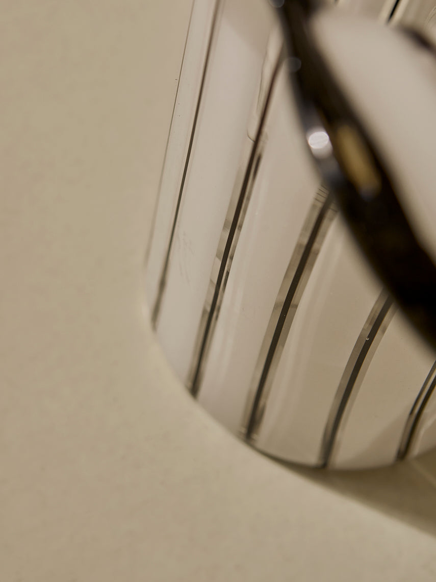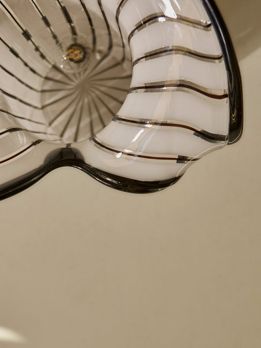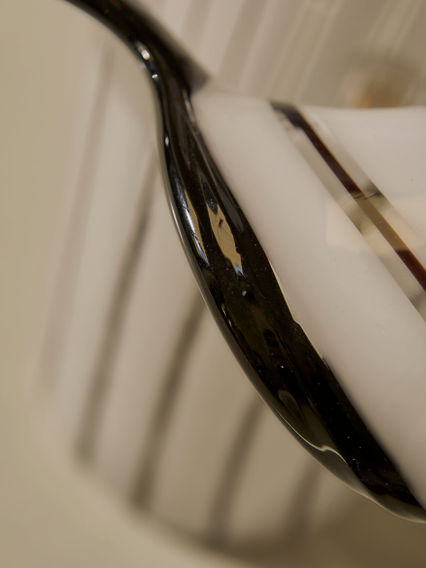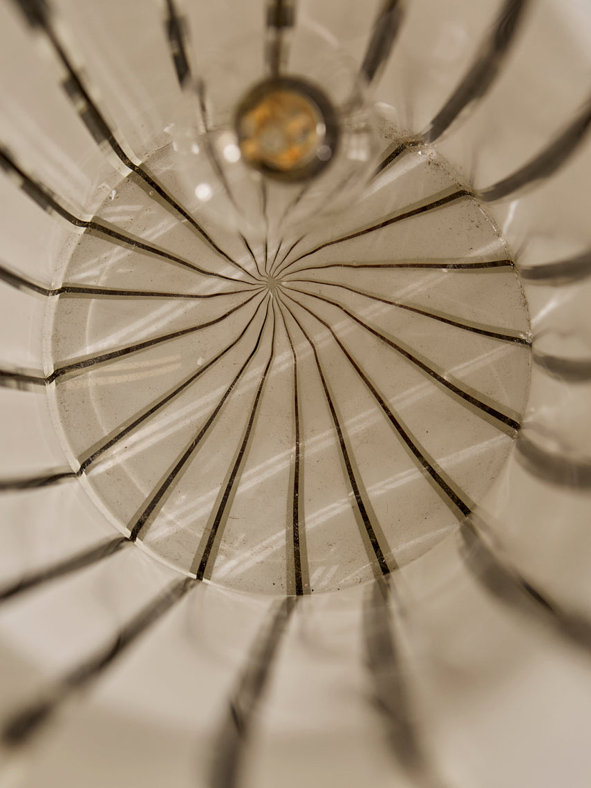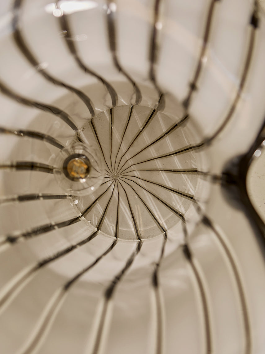 Lámpara trabajada en cristal de murano de rayas negras y blancas, original de Italia de los años 70.