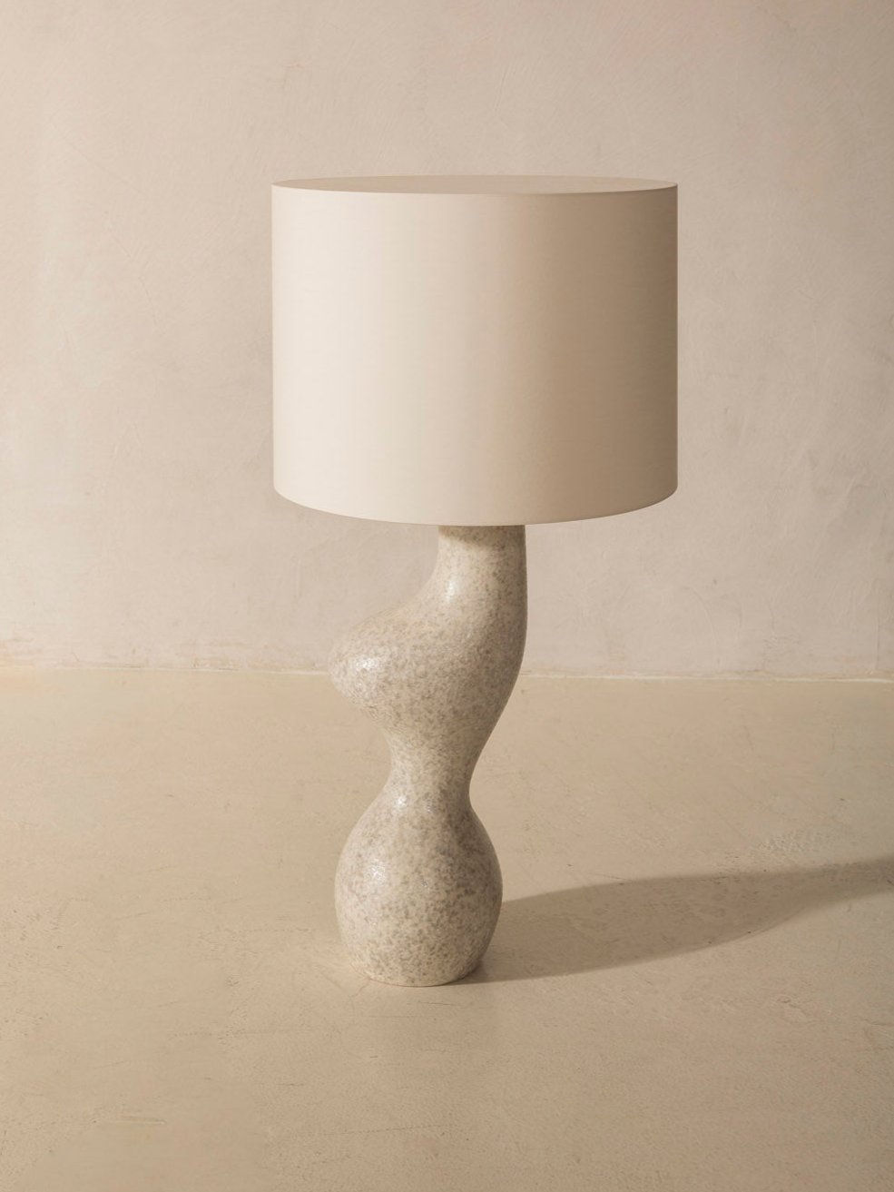 Lámpara artesanal de sobremesa Venuso del estudio de diseño Simone & Marcel. Una pieza impactante por su forma orgánica que realza las curvas femeninas contemporáneas. Se puede colocar como lámpara de mesa o de pie, difundiendo una luz poética.
