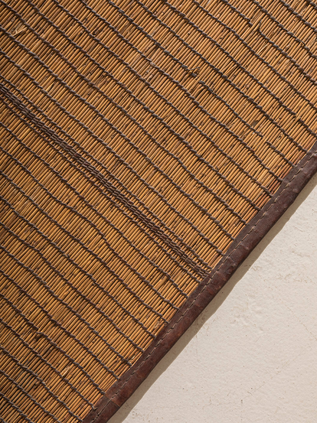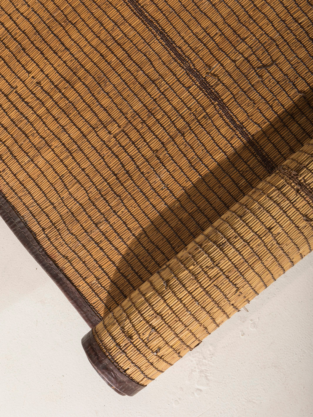 Alfombra Touareg vintage, original de Mauritania tejida a mano en el desierto de África a partir de yute y cuero, con un estilo tribal a la vez que atemporal.
