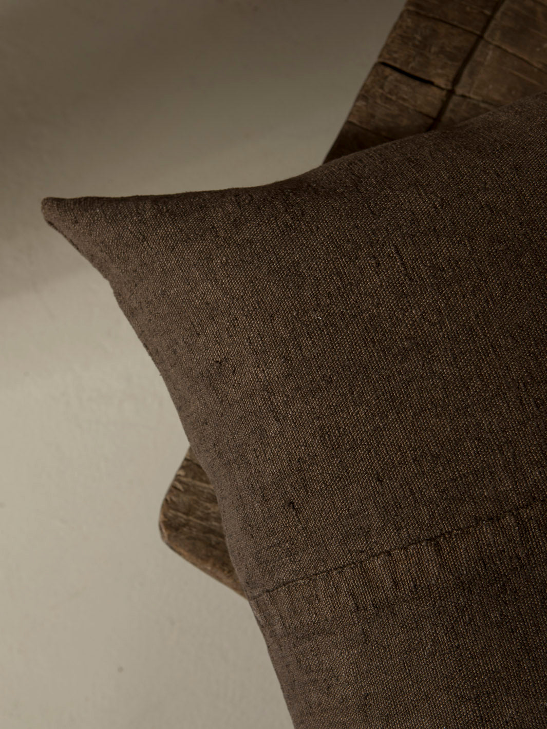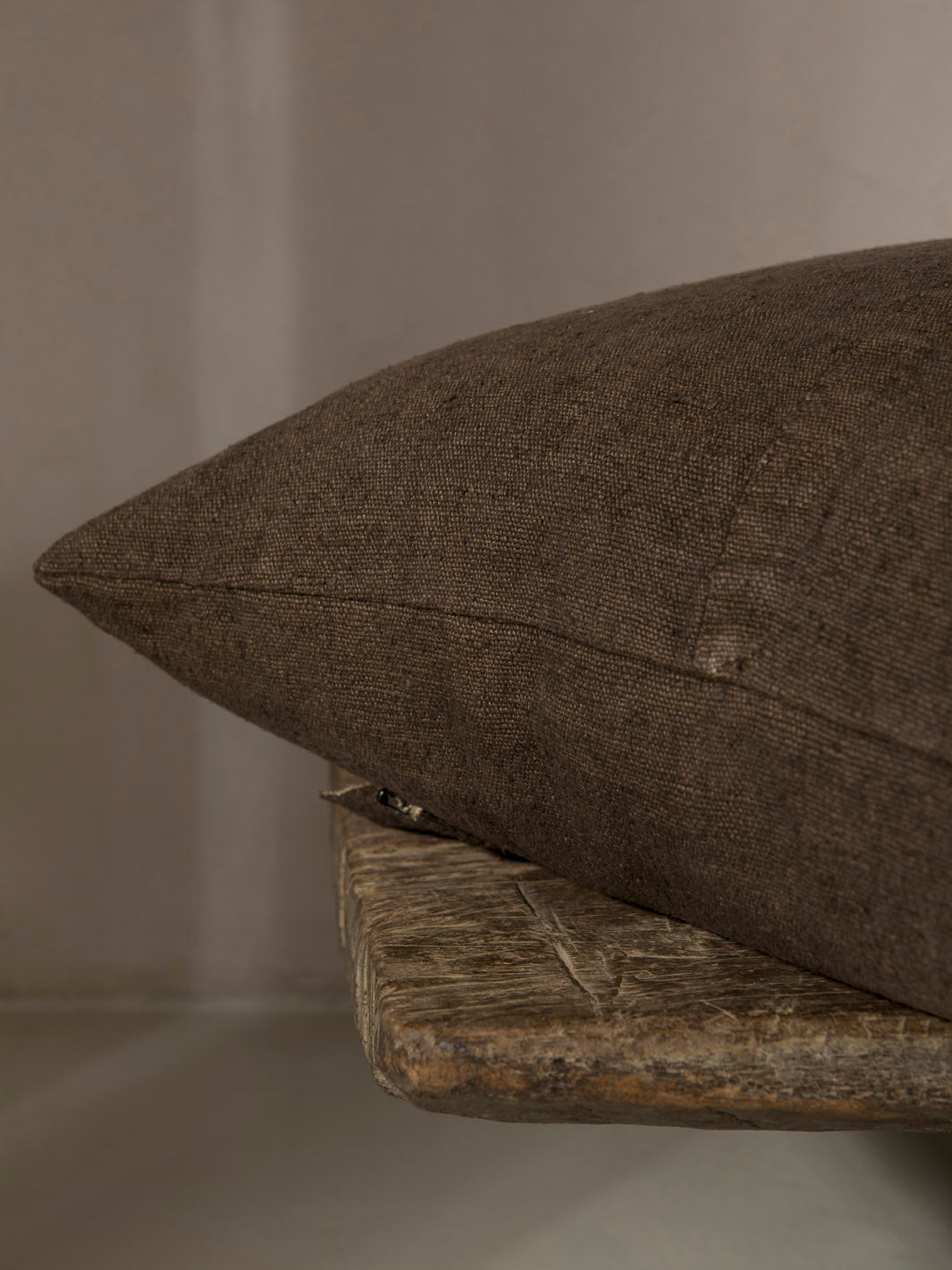 Almohadón de cáñamo recuperado de principios del siglo XX de la diseñadora Isabelle Yamamoto teñido y confeccionado de forma artesanal.