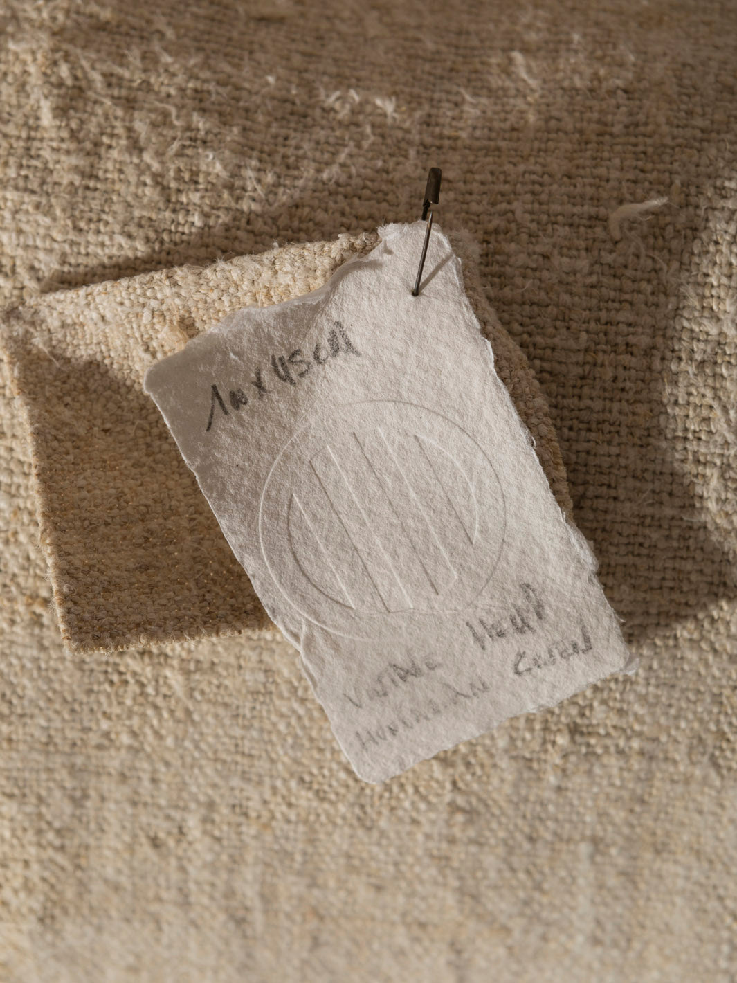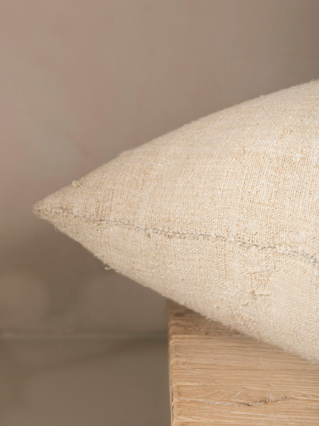 Almohadón de cáñamo recuperado de principios del siglo XX de la diseñadora Isabelle Yamamoto teñido y confeccionado de forma artesanal.