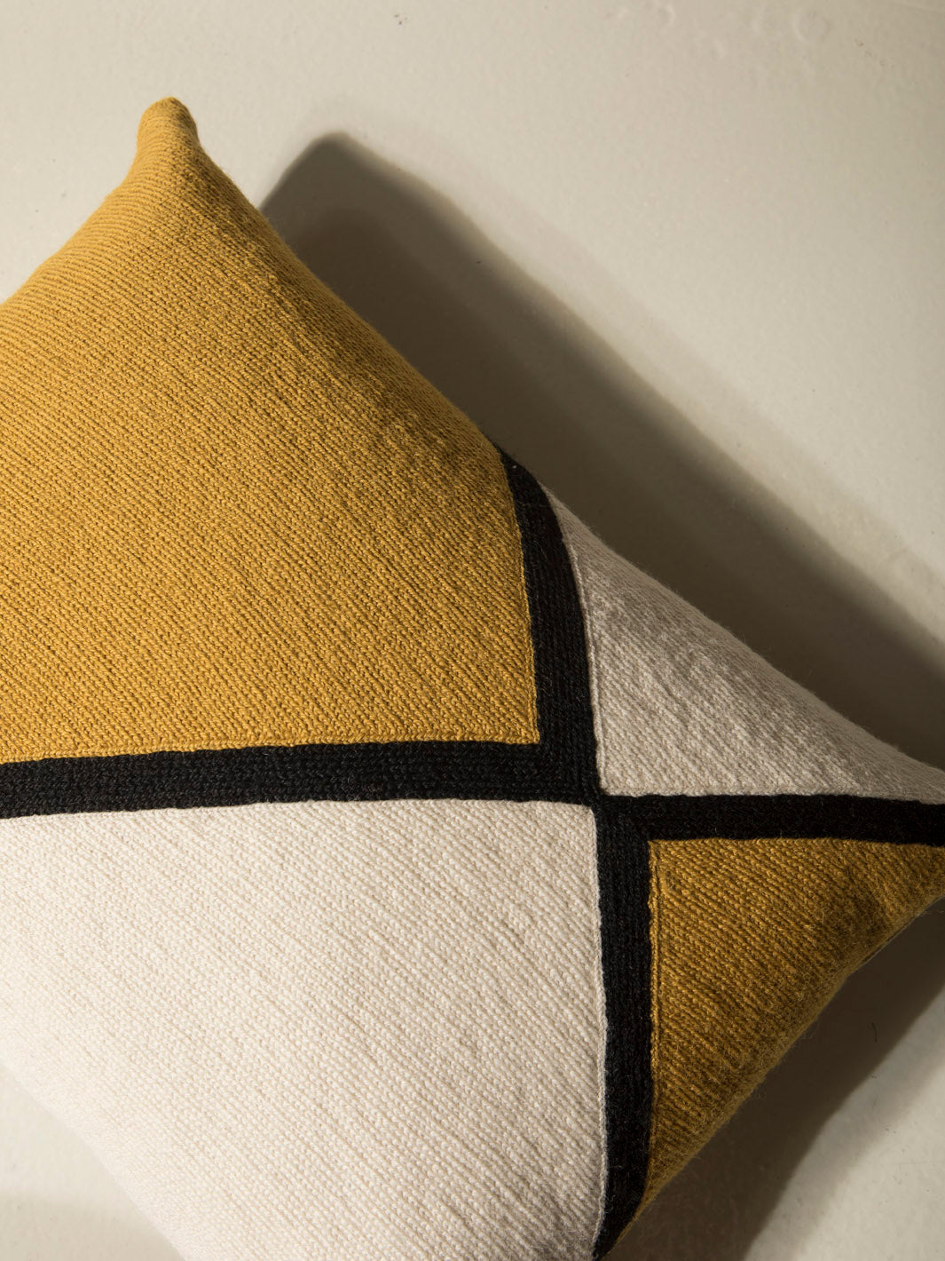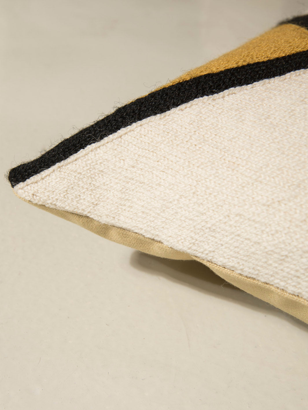 Cojín de Lindell & Co. diseñado en exclusiva por Gabrielle Soyer y fabricado 100% a mano: bordados, tejidos y tintes están hechos por artesanos de India y Nepal. Los materiales utilizados son lana de Nueva Zelanda y seda india. Sus delicadas irregularidades son parte de su innegable personalidad y prueba de su autenticidad. Todas las creaciones de Lindell & Co. están producidas en pequeñas cantidades.