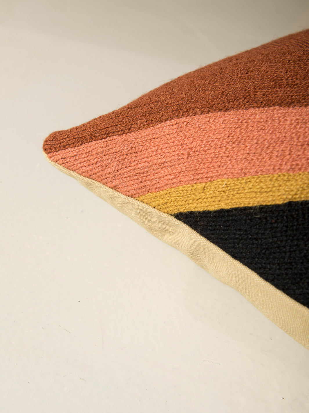 Cojín de Lindell & Co. diseñado en exclusiva por Gabrielle Soyer y fabricado 100% a mano: bordados, tejidos y tintes están hechos por artesanos de India y Nepal. Los materiales utilizados son lana de Nueva Zelanda y seda india. Sus delicadas irregularidades son parte de su innegable personalidad y prueba de su autenticidad. Todas las creaciones de Lindell & Co. están producidas en pequeñas cantidades.