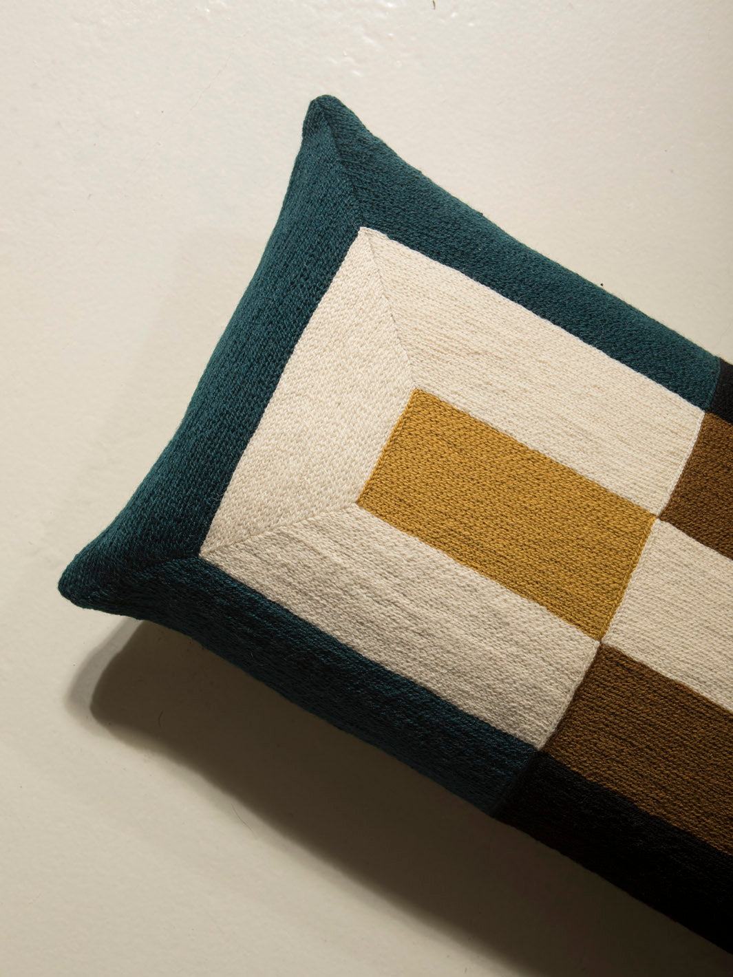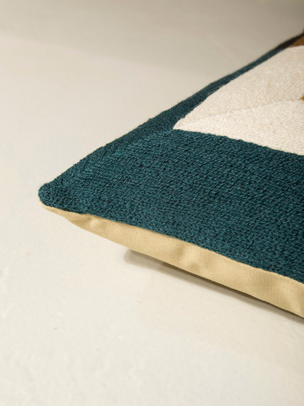 Cojín de Lindell & Co. diseñado en exclusiva por Gabrielle Soyer y fabricado 100% a mano: bordados, tejidos y tintes están hechos por artesanos de India y Nepal. Los materiales utilizados son lana de Nueva Zelanda y seda india. Sus delicadas irregularidades son parte de su innegable personalidad y prueba de su autenticidad. Todas las creaciones de Lindell & Co. están producidas en pequeñas cantidades.