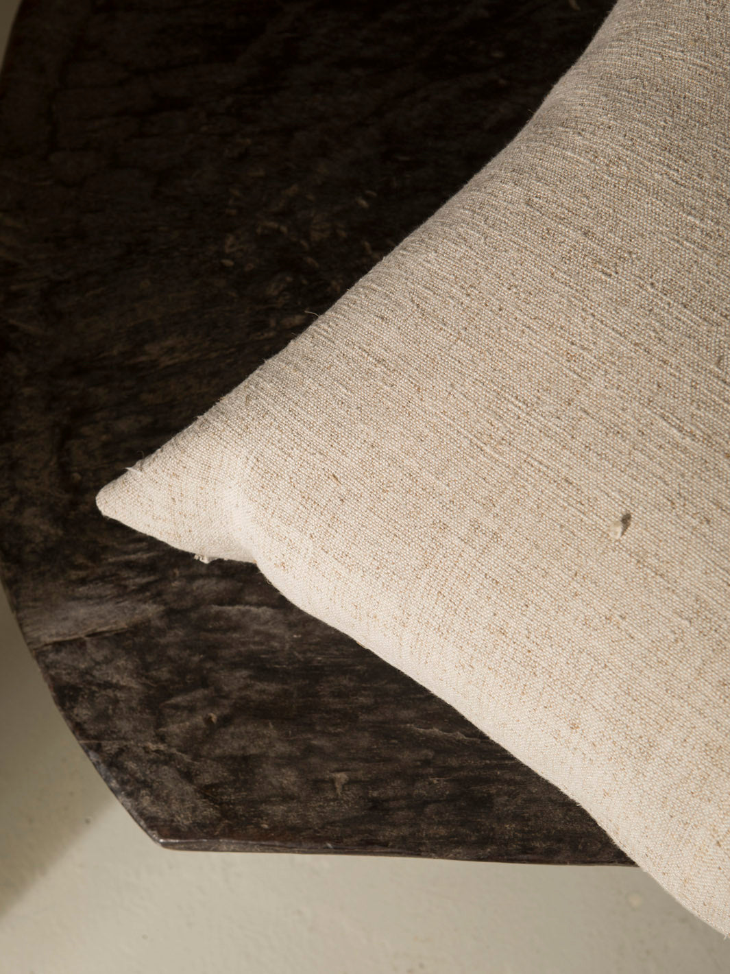 Almohadón de cáñamo recuperado de principios del siglo XX de la diseñadora Isabelle Yamamoto teñido y confeccionado de forma artesanal.