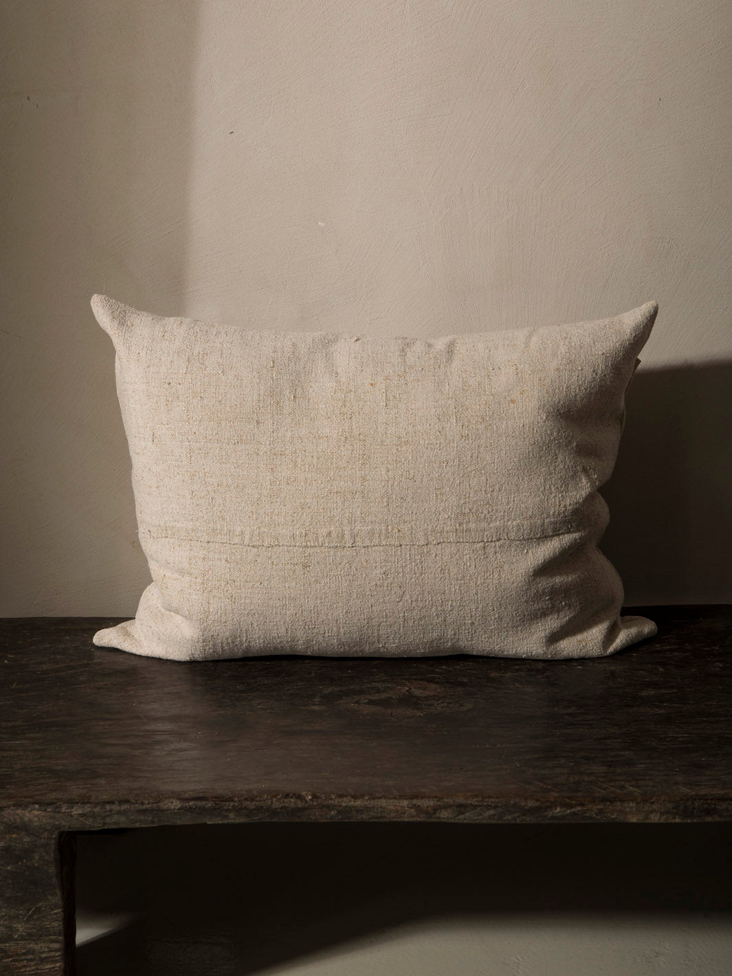 Almohadón de cáñamo recuperado de principios del siglo XX de la diseñadora Isabelle Yamamoto teñido y confeccionado de forma artesanal.
