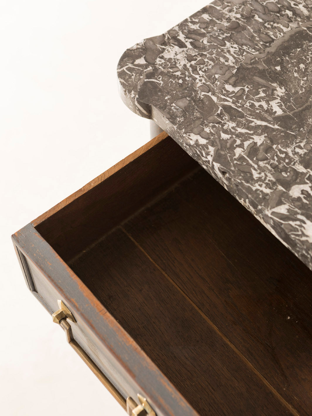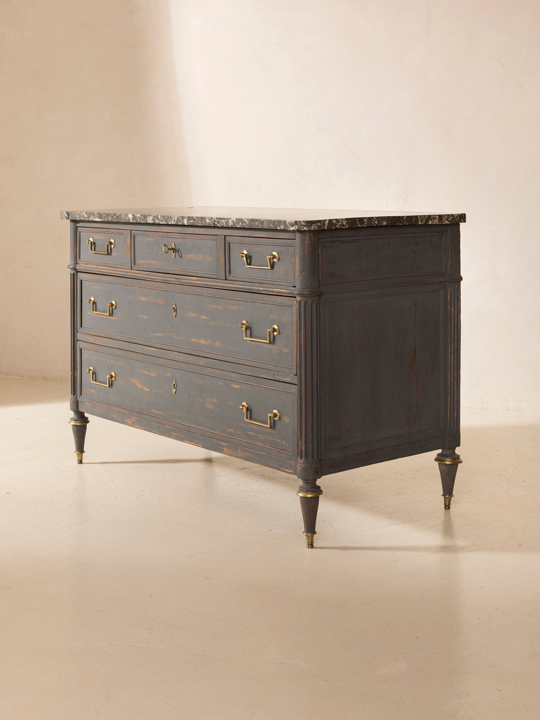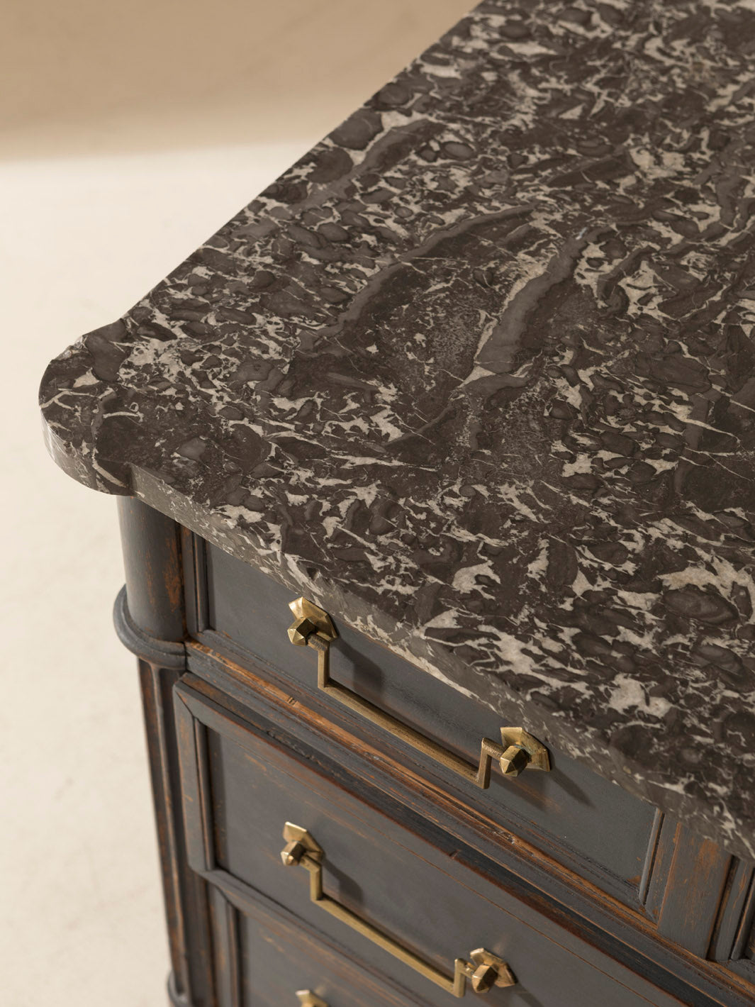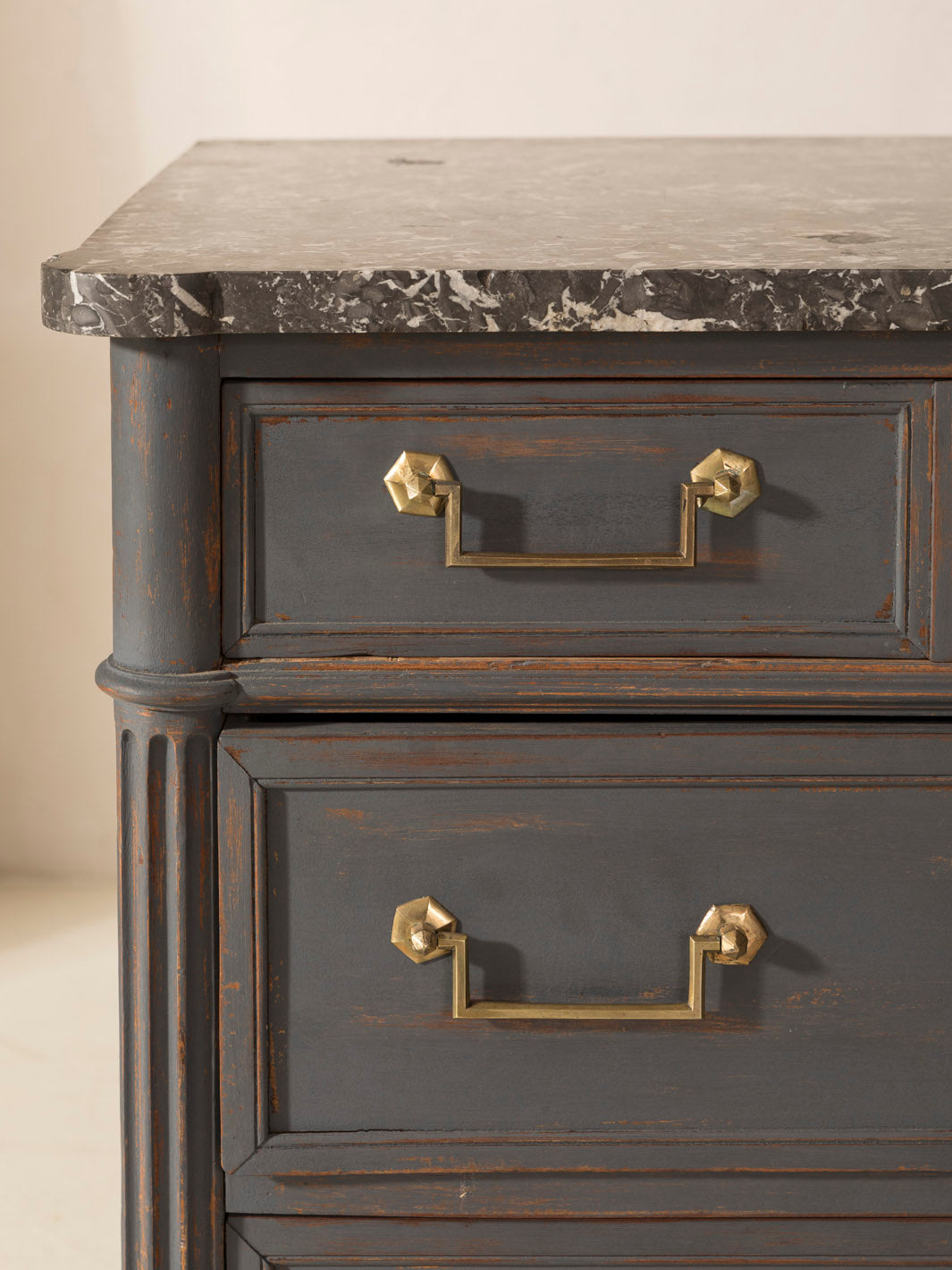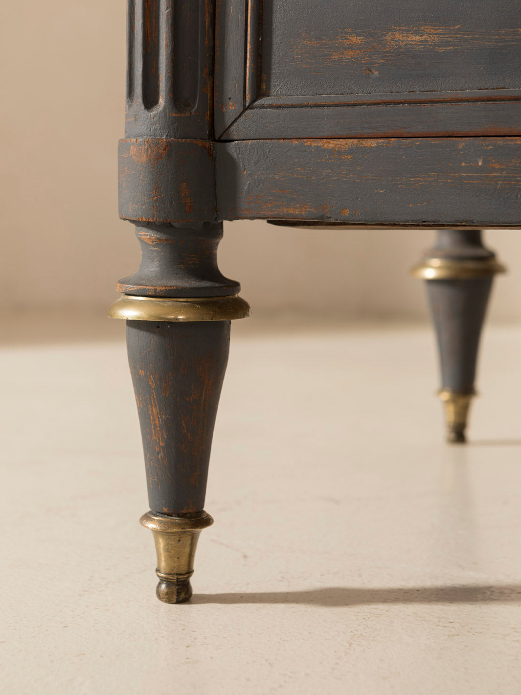 Cómoda negra Louis XVI en madera de nogal, original de Francia de finales del siglo XIX con pátina negra contemporánea.