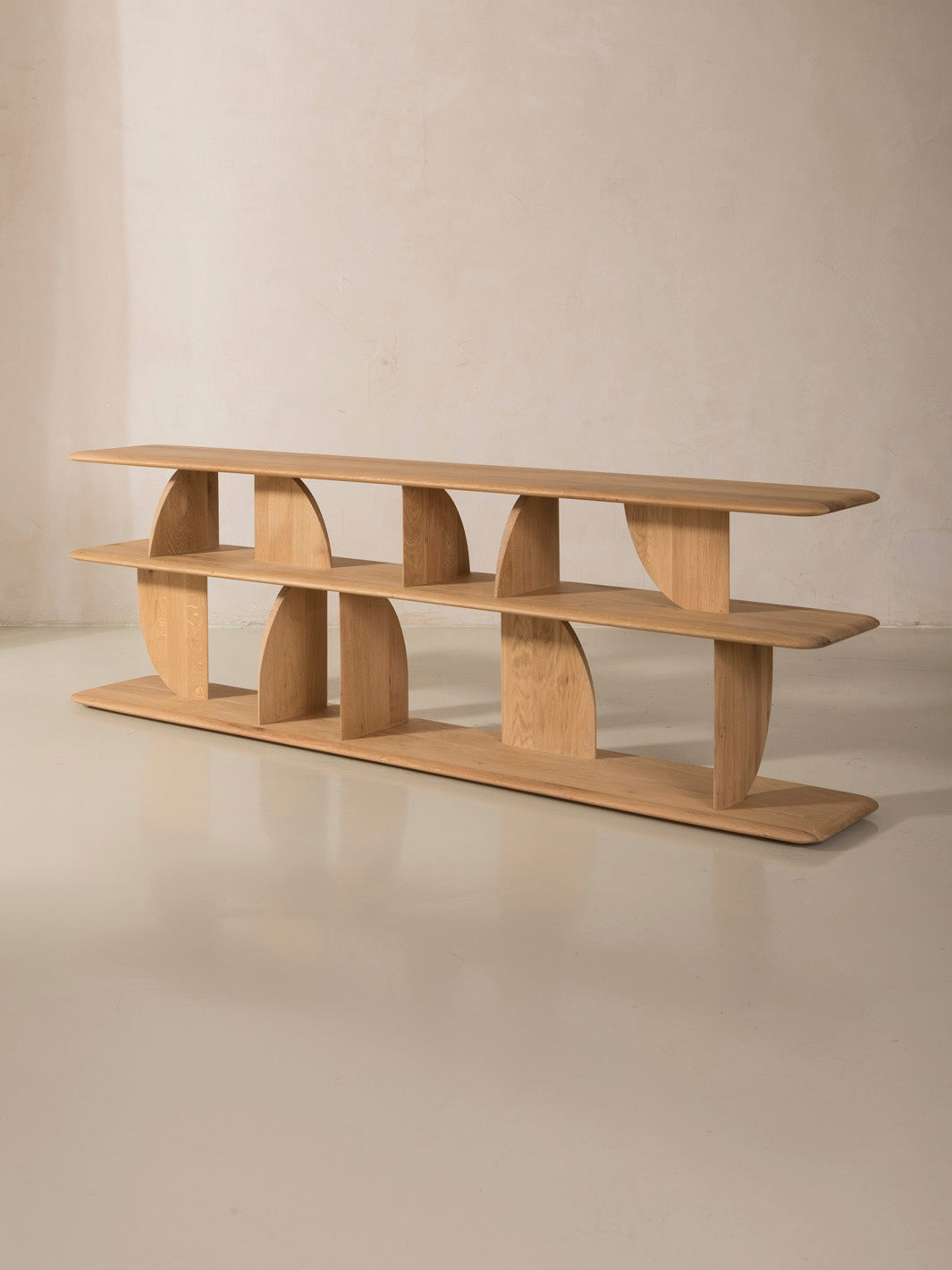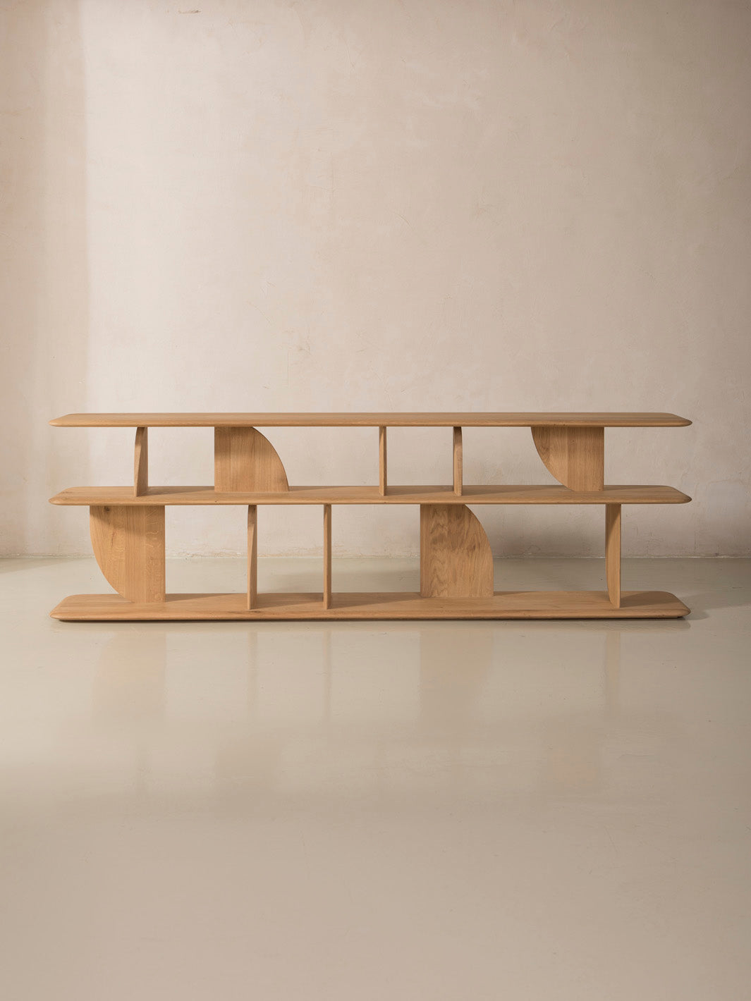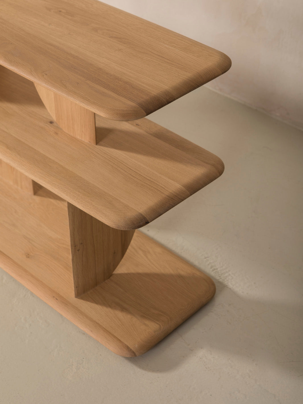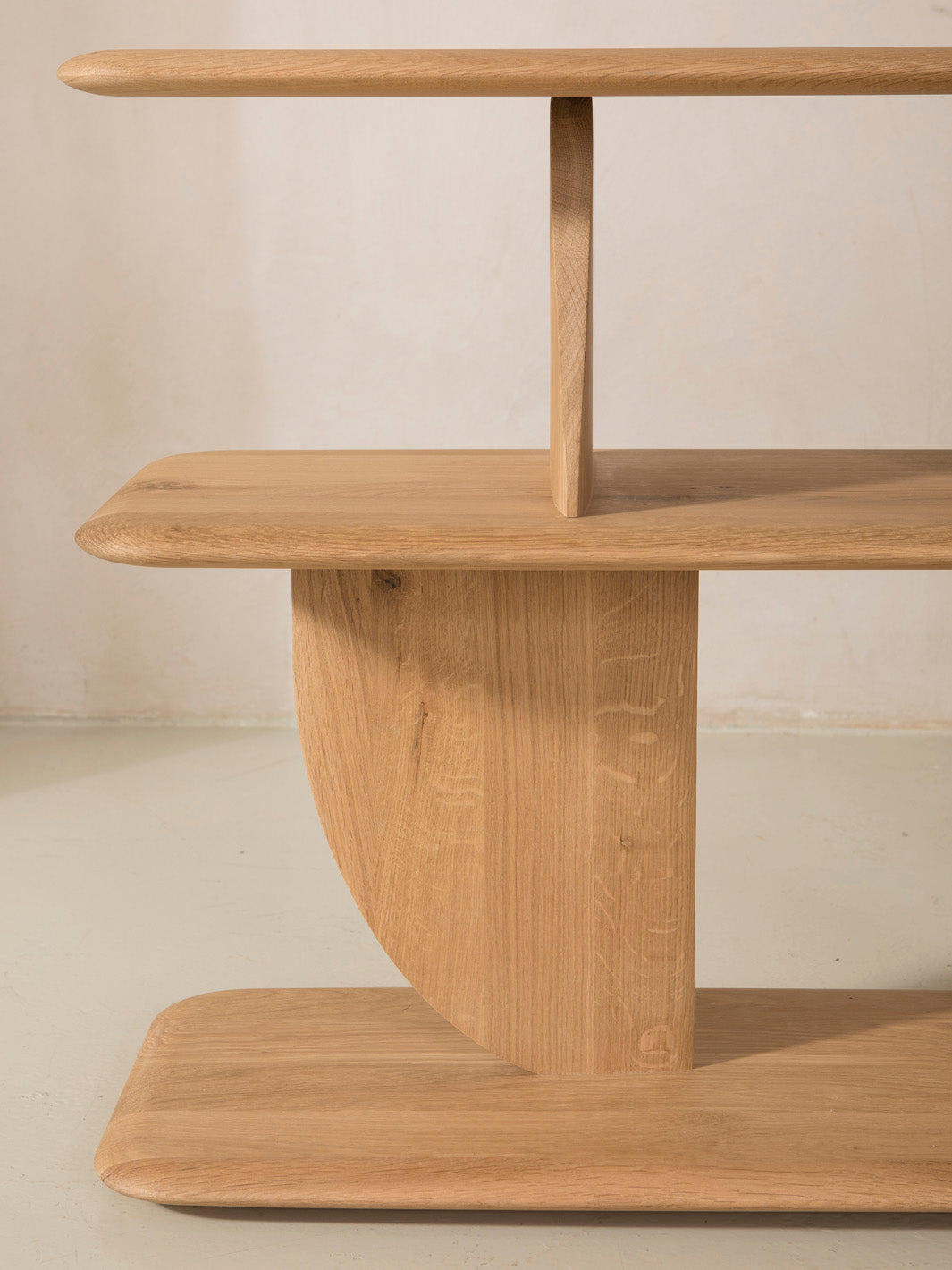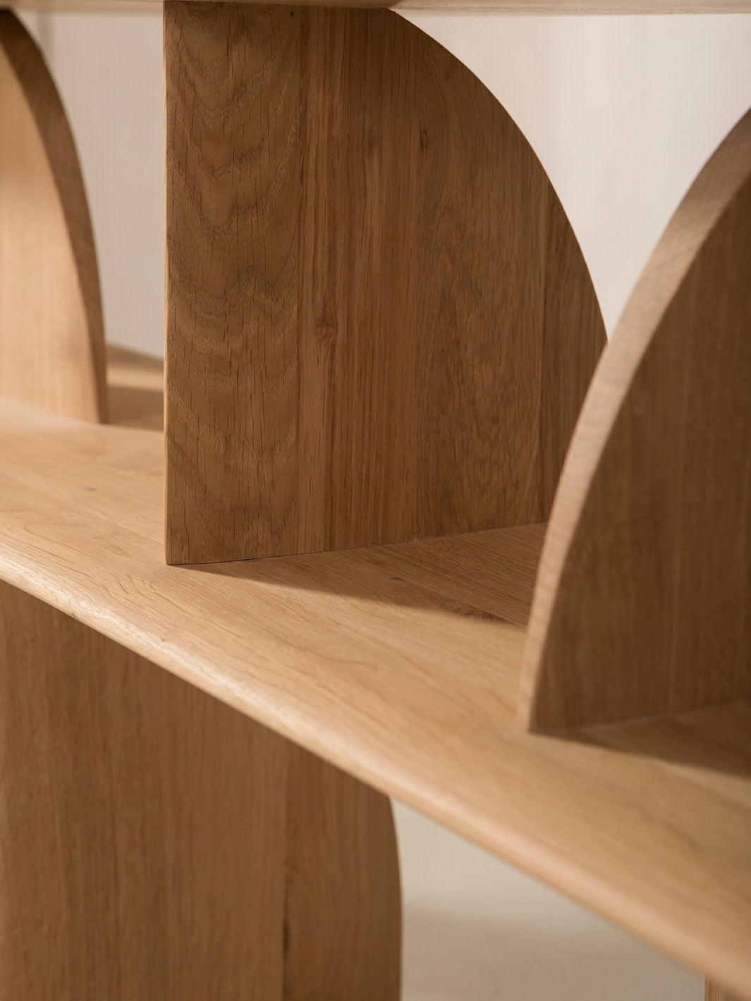 En la colección Geometric de Ethnicraft, las formas se entrecruzan de forma inesperada, creando divertidos contrastes con luces y sombras en todos los ángulos. Este diseño está realizado en madera de roble macizo.