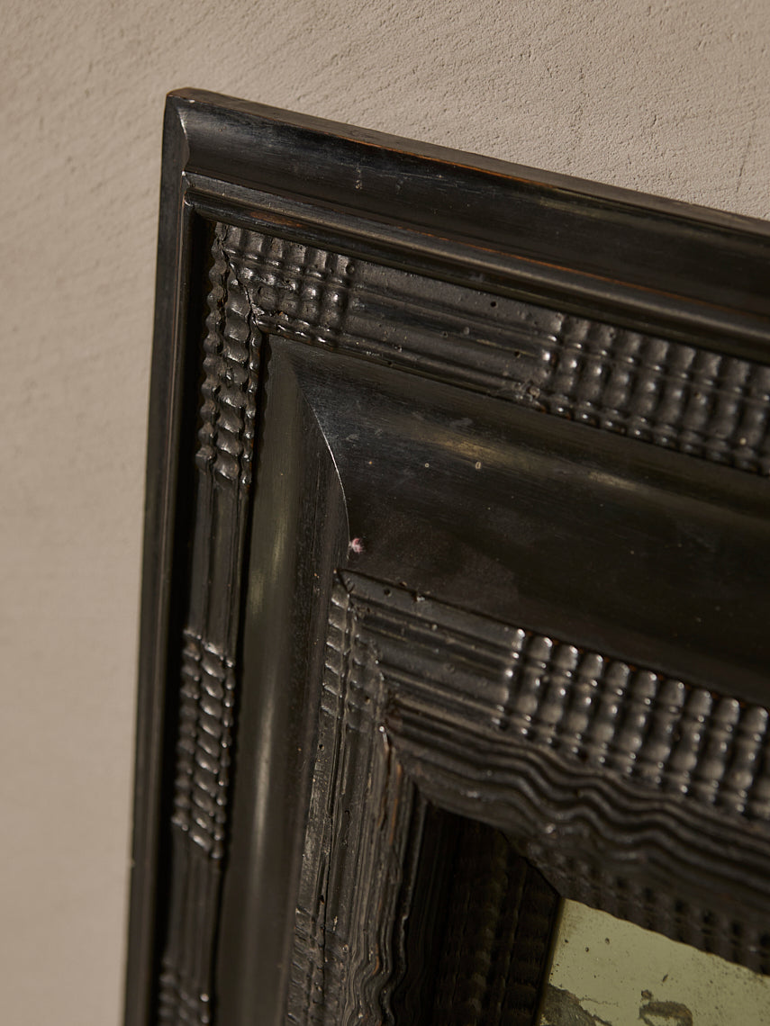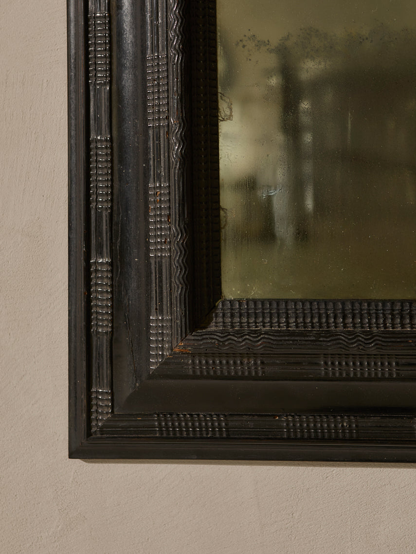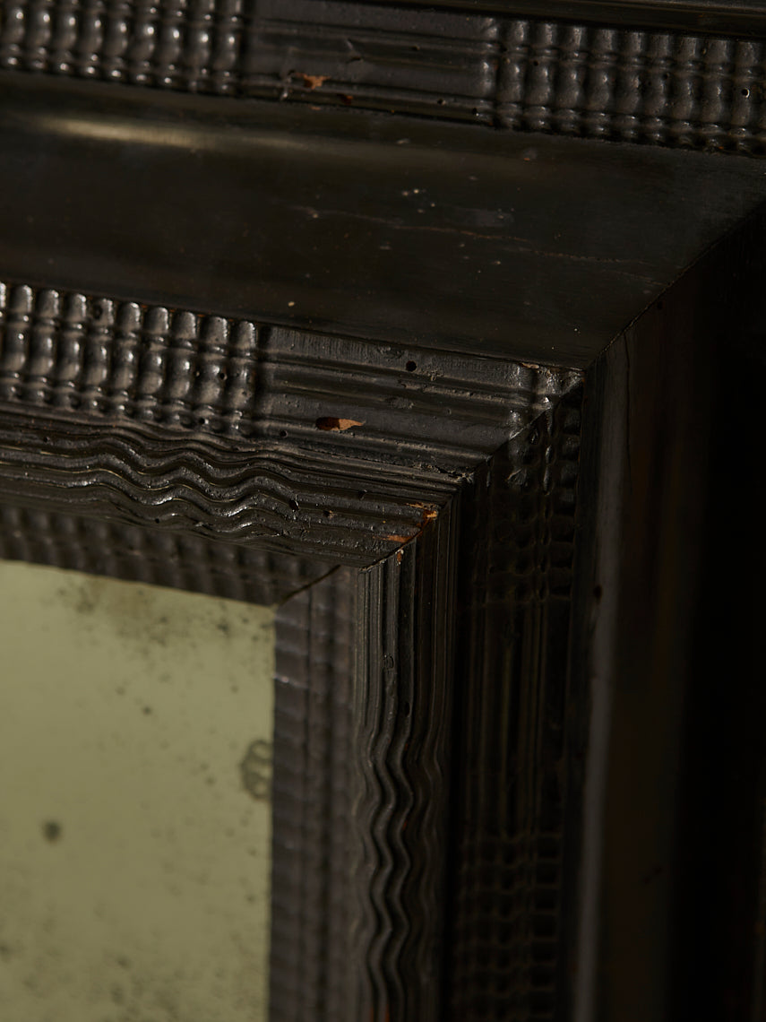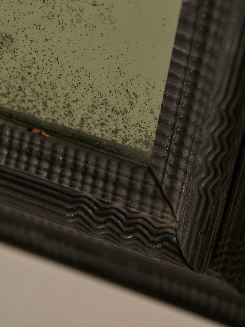 Espejo realizada en madera de caoba maciza, con un fino trabajo guilloché tallado a mano original de Italia del s.XIX.