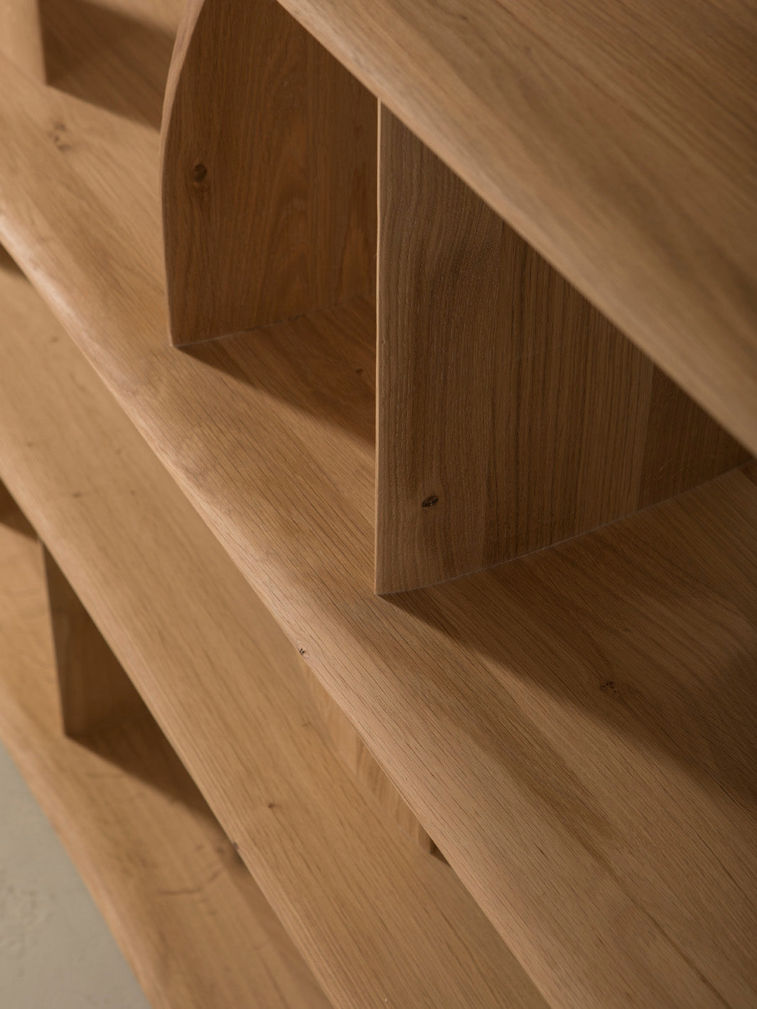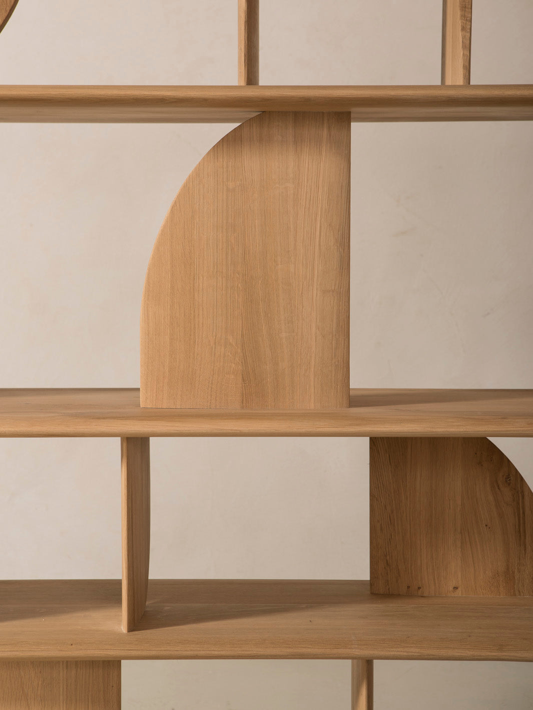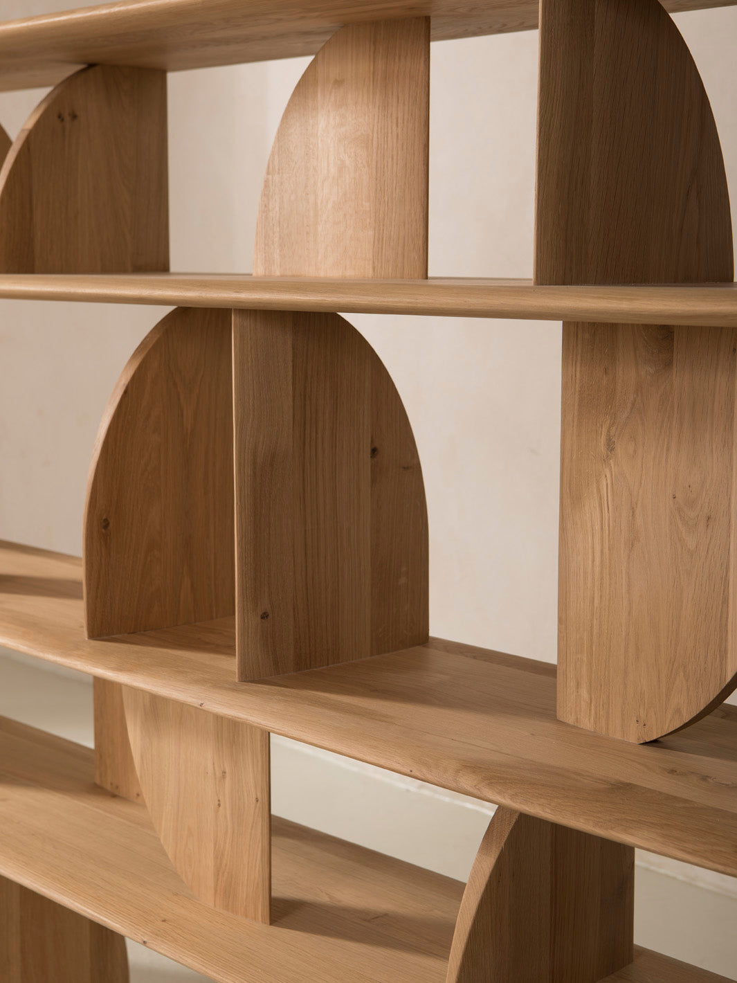 En la colección Geometric de Ethnicraft, las formas se entrecruzan de forma inesperada, creando divertidos contrastes con luces y sombras en todos los ángulos. Este diseño está realizado en madera de roble maciza.