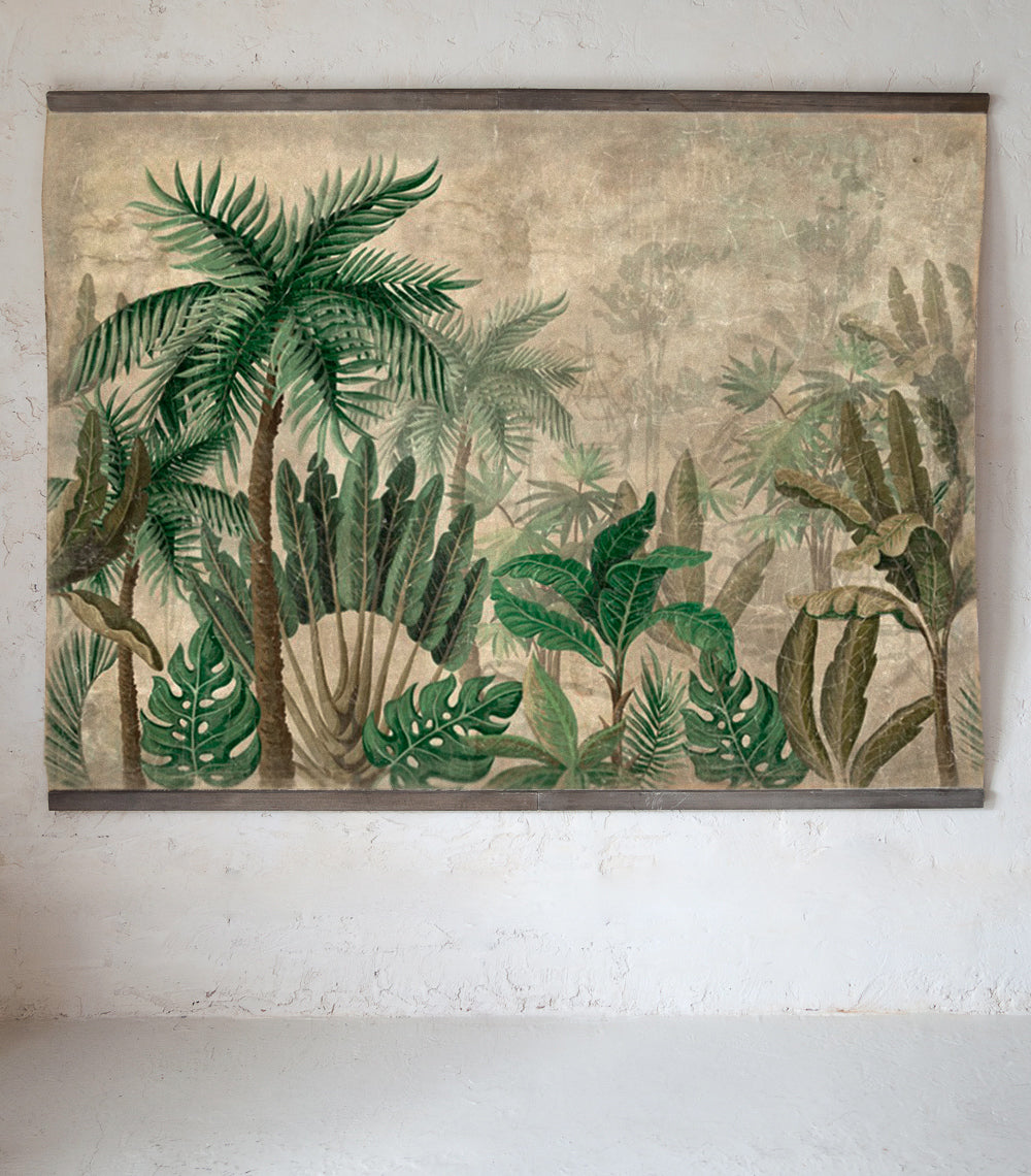 Mural estampado sobre un delicado papel reciclado efecto pergamino. El papel ha sido tratado para darle un aspecto envejecido y una delicada textura formando pliegues y rugosidad. Se trata de una edición limitada. Viene con bastidor de madera para poder colgar.