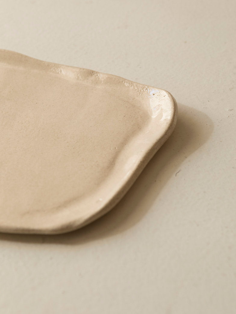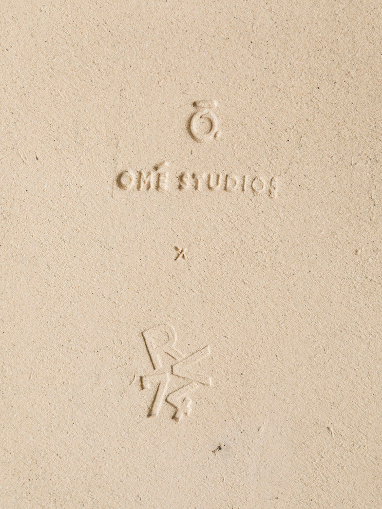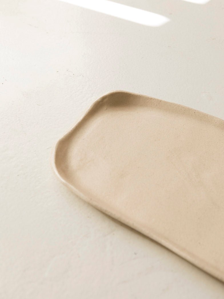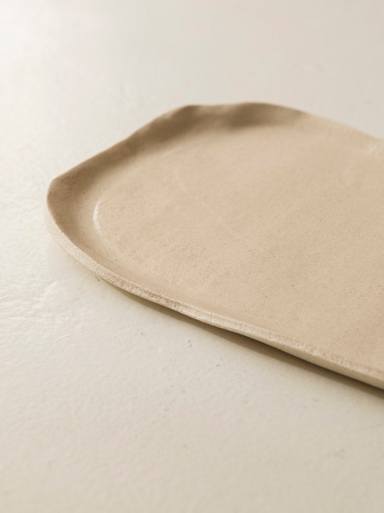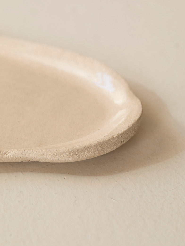 Fuente llana artesanal de cerámica en color crudo, diseñada en exclusiva por Omé Studios para RV74.