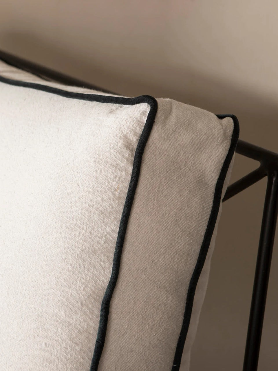 Funda para sofá medaillon de hierro forjado termolacado en negro, trabajada en loneta acrílica y vivo negro.
