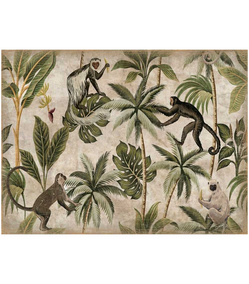Mural estampado sobre un delicado papel reciclado efecto pergamino. El papel ha sido tratado para darle un aspecto envejecido y una delicada textura formando pliegues y rugosidad. Se trata de una edición limitada. Viene con bastidor de madera para poder colgar.