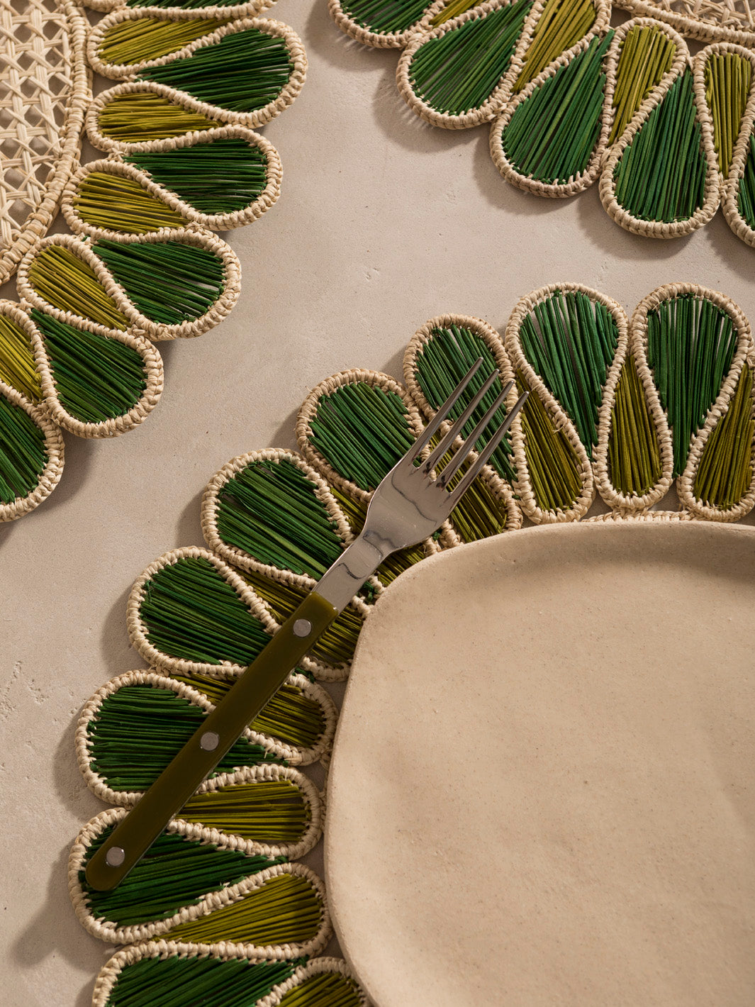 Exclusivos manteles individuales hechos por artesanos de Usiacurí, una vibrante ciudad de la costa caribeña de Colombia. Utilizando una técnica tradicional que se ha transmitido de generación en generación, el proceso comienza dando forma a una estructura de alambre, sobre la que tejen intrincados patrones con palma de Iraca. El resultado es una obra de arte excepcionalmente detallada que realzará cualquier mesa.