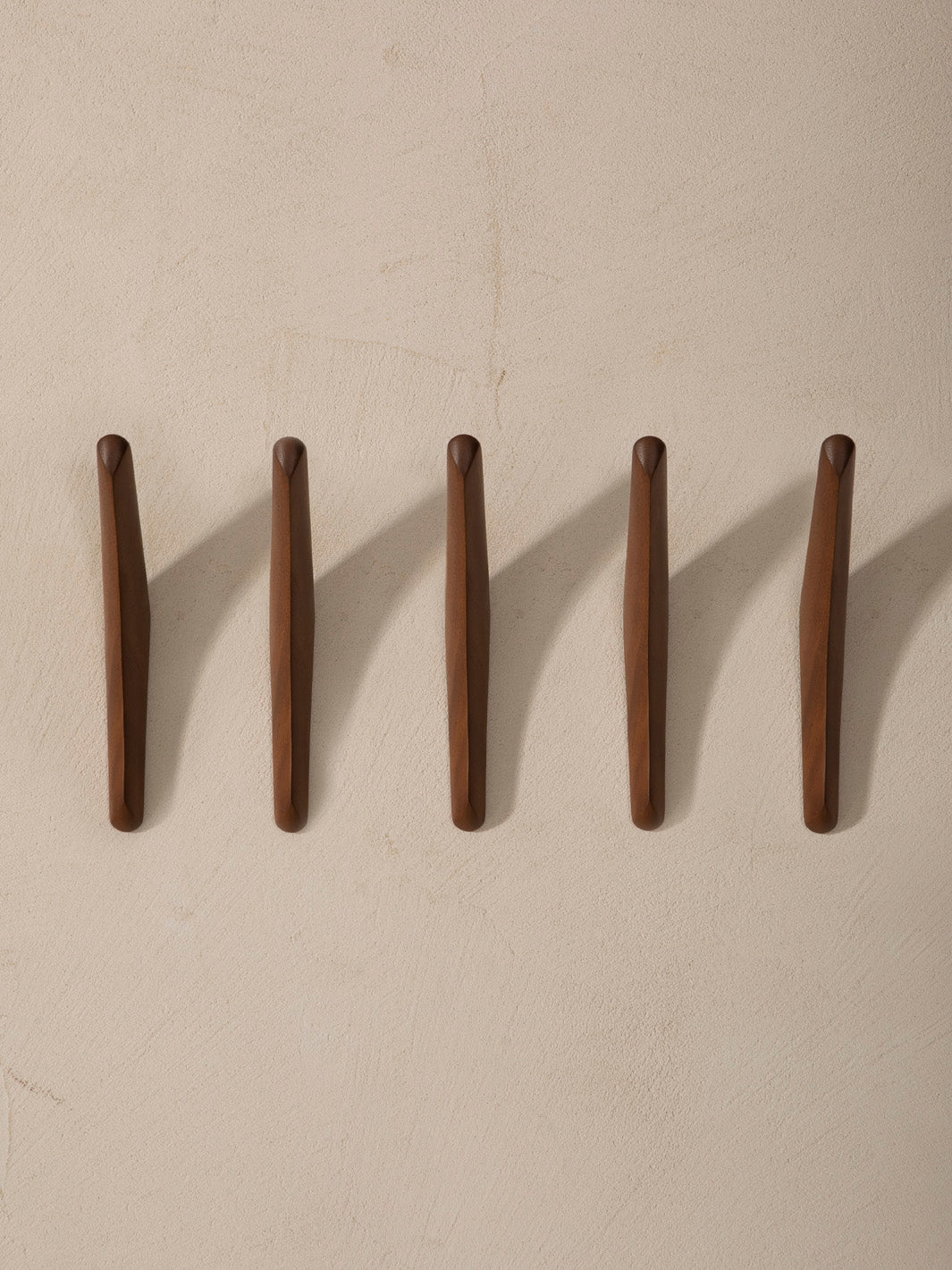 La colección PI hace honor al diseño de la naturaleza, manteniendo la fuerza y las líneas, tal y como la naturaleza las concibió. Cada colgador de pared PI está acabado a mano para garantizar que se respete el carácter individual de la madera. Las formas interesantes se descubren en este acabado pulido imperfecto, elegante y con estilo. Diseñado por Alain van Havre.