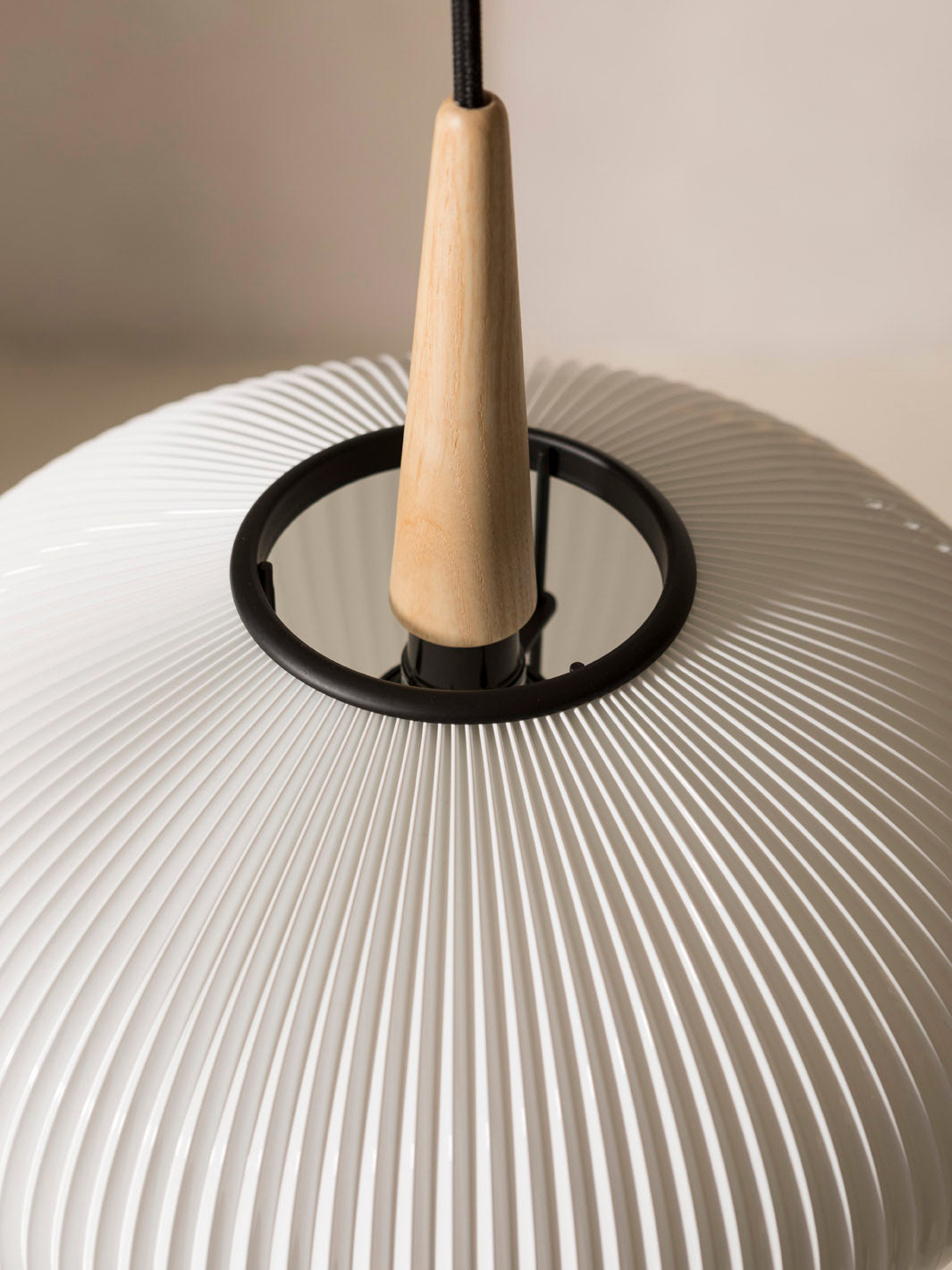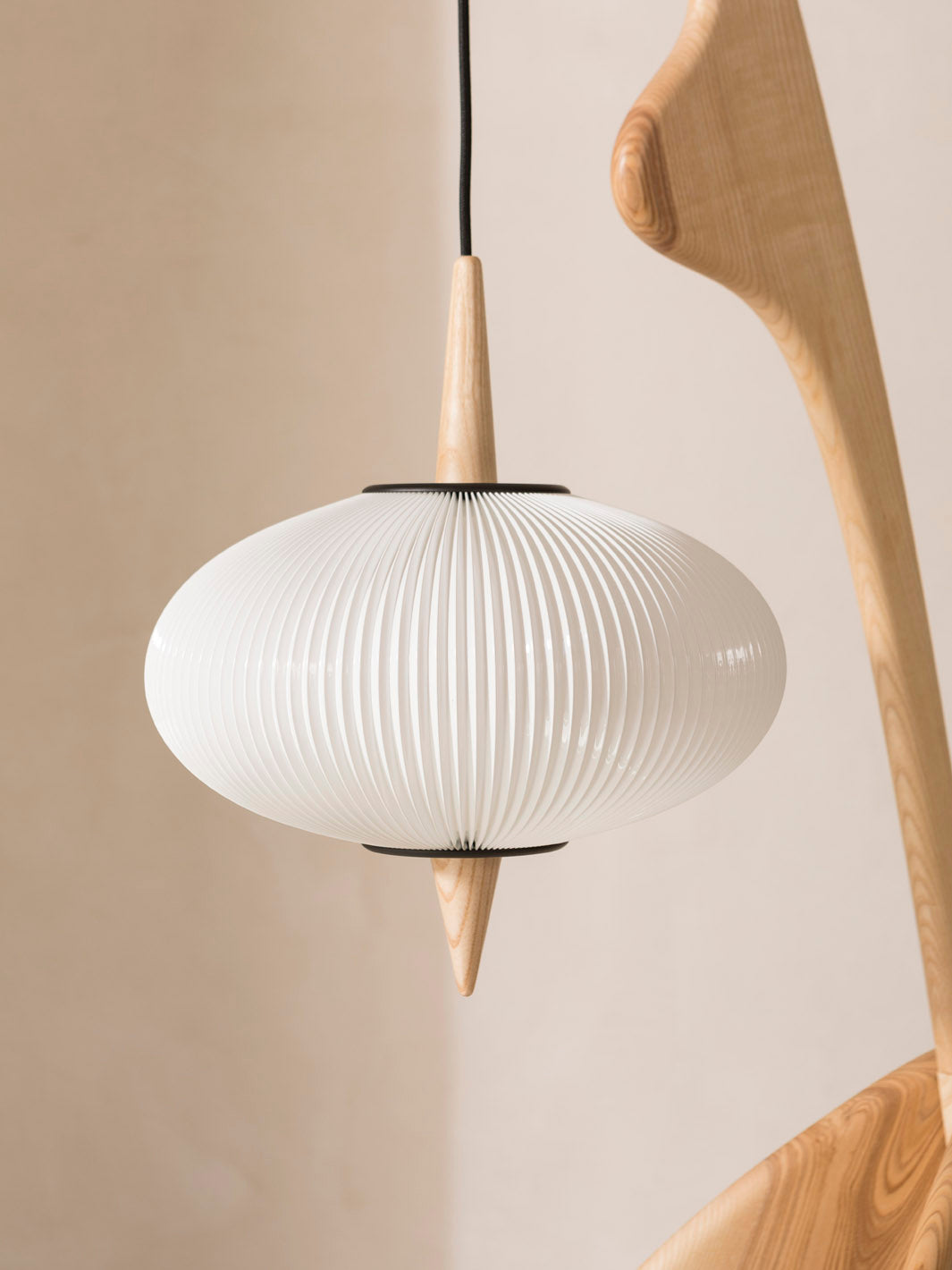 Pantalla de lámpara de acetato de celulosa fabricada artesanalmente y madera de fresno.