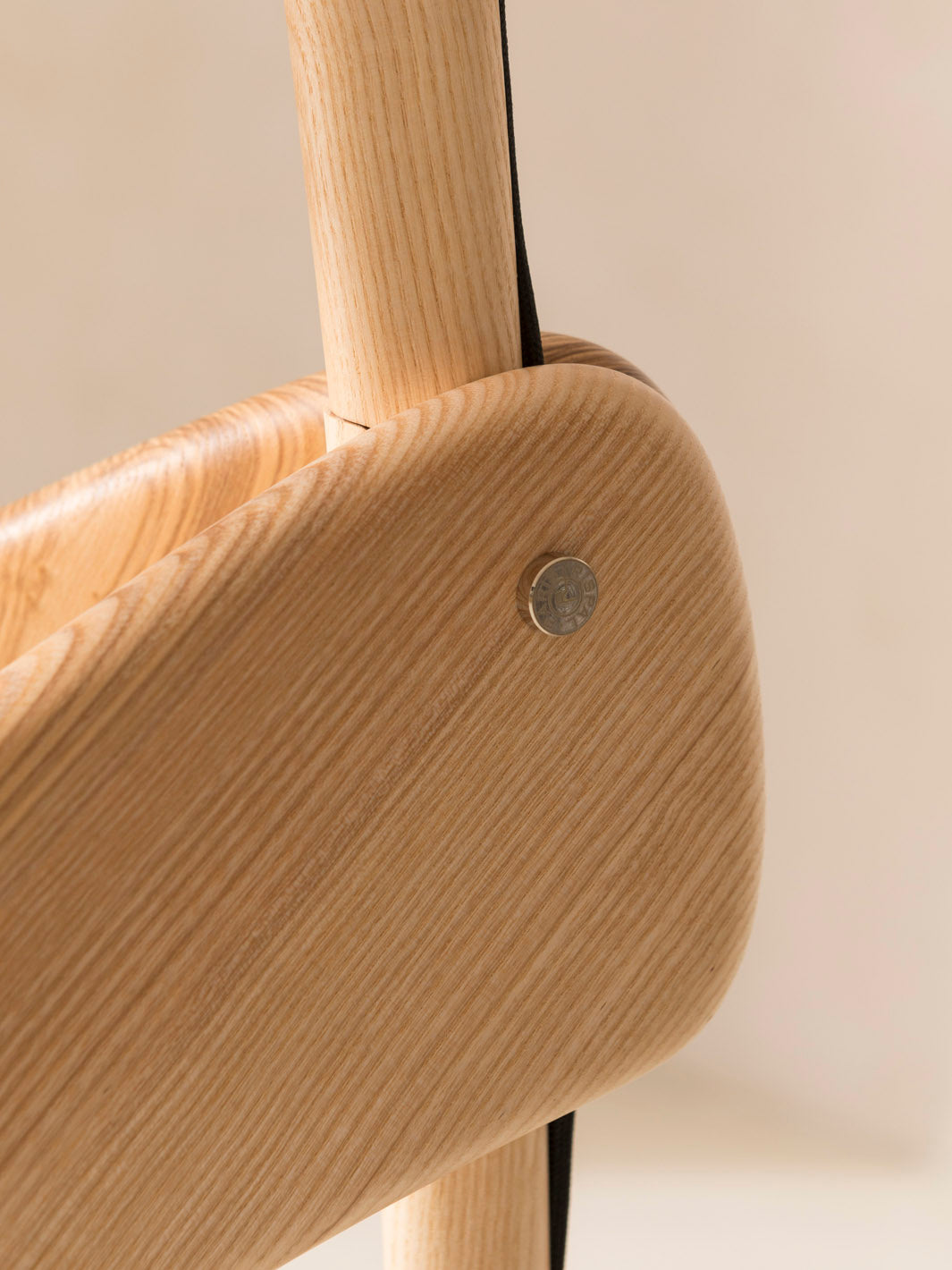 Reedición de la lámpara de pie #14.950 de Rispal de madera de fresno.
