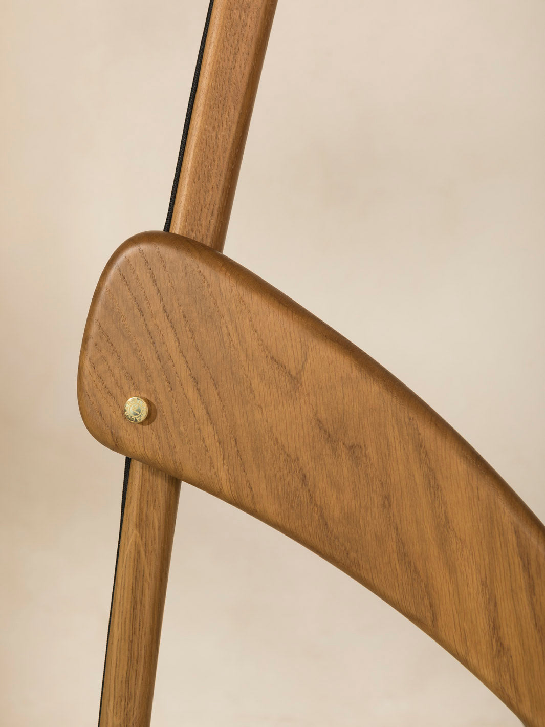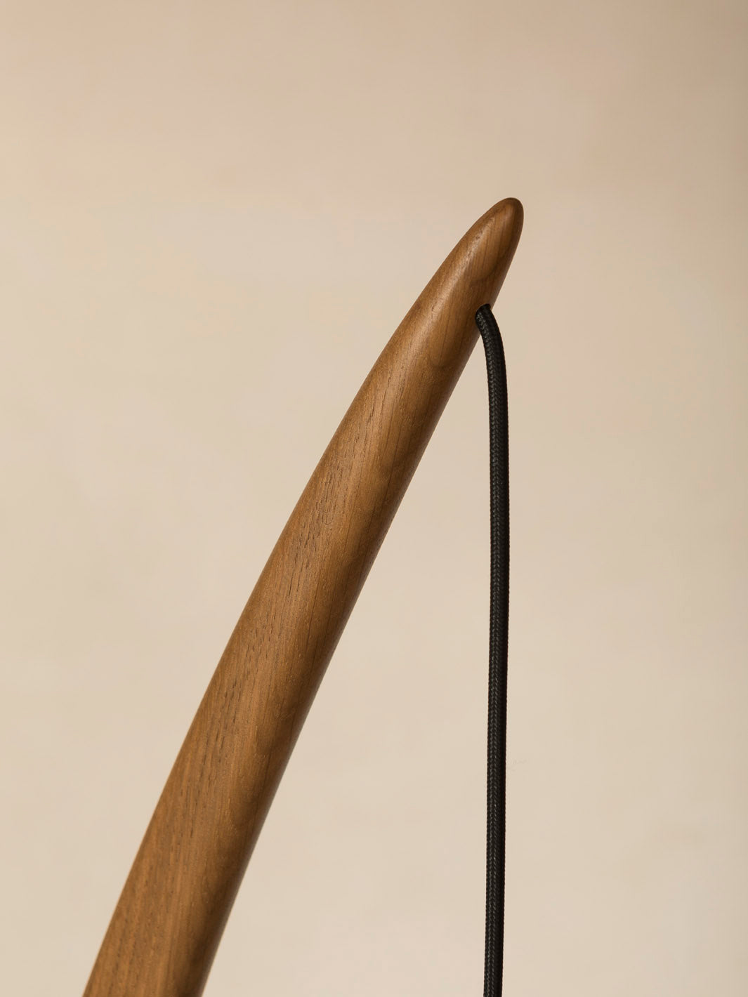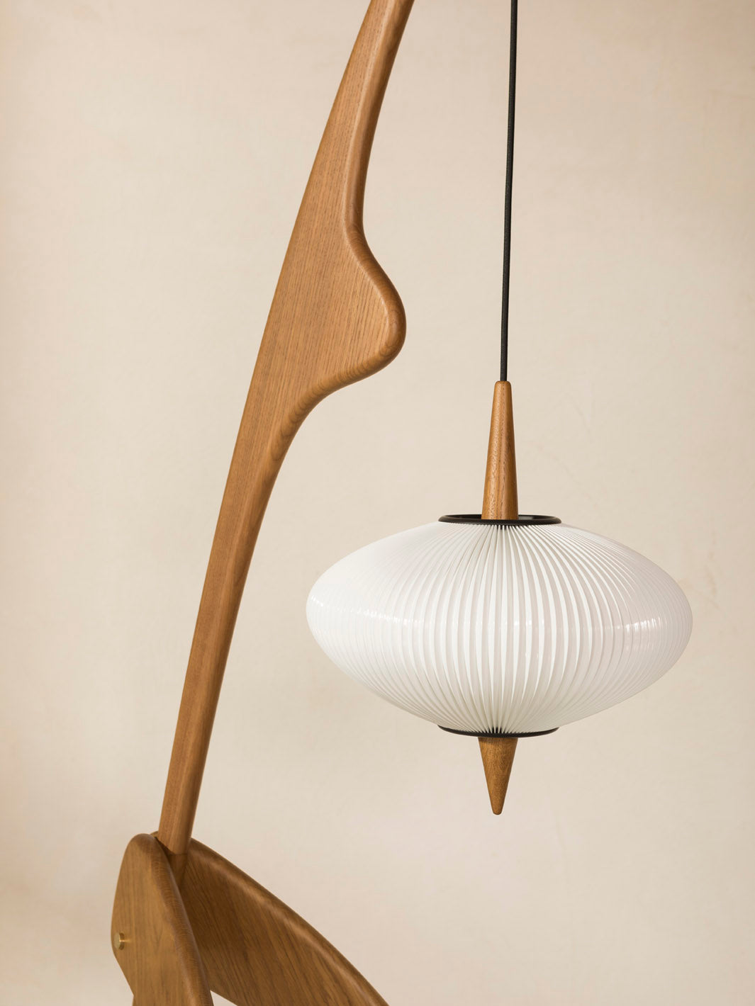 Reedición de la lámpara de pie #14.950 de Rispal de madera de roble.