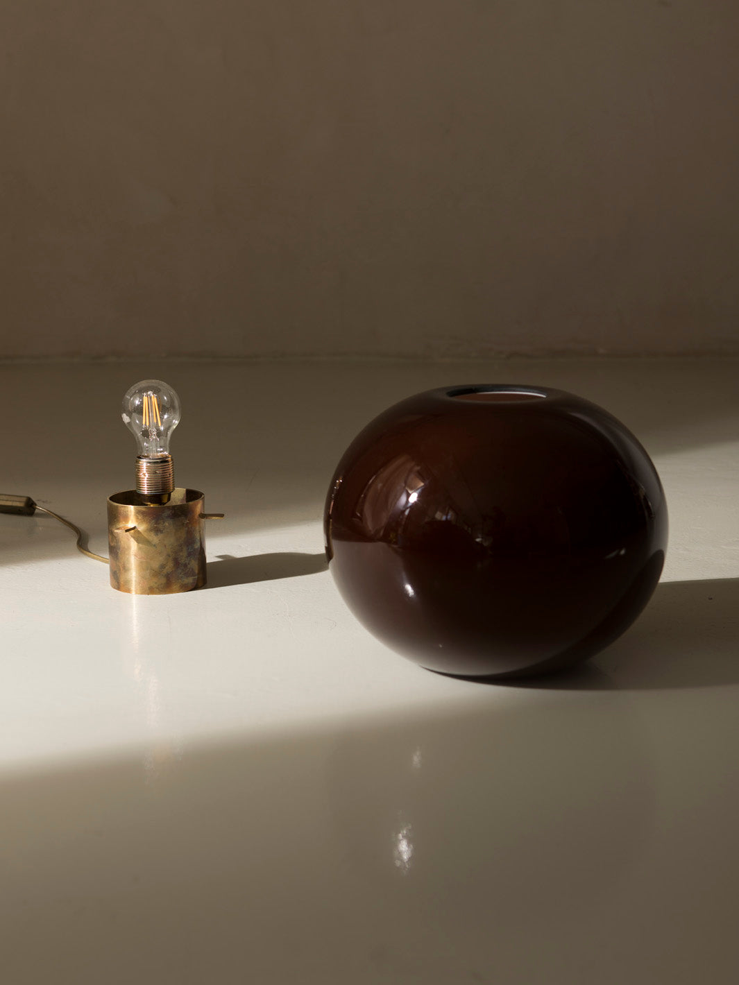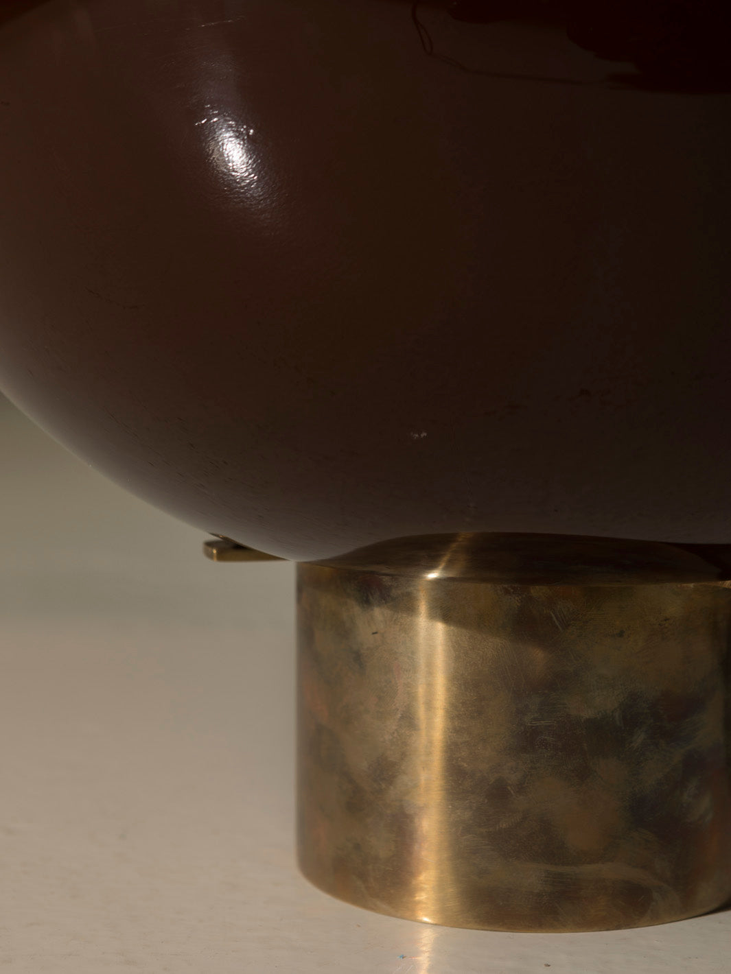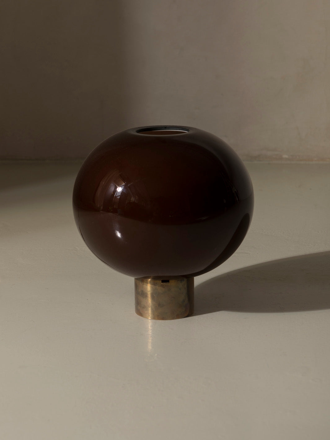 Cristal de murano color teja y base cilíndrica en latón.