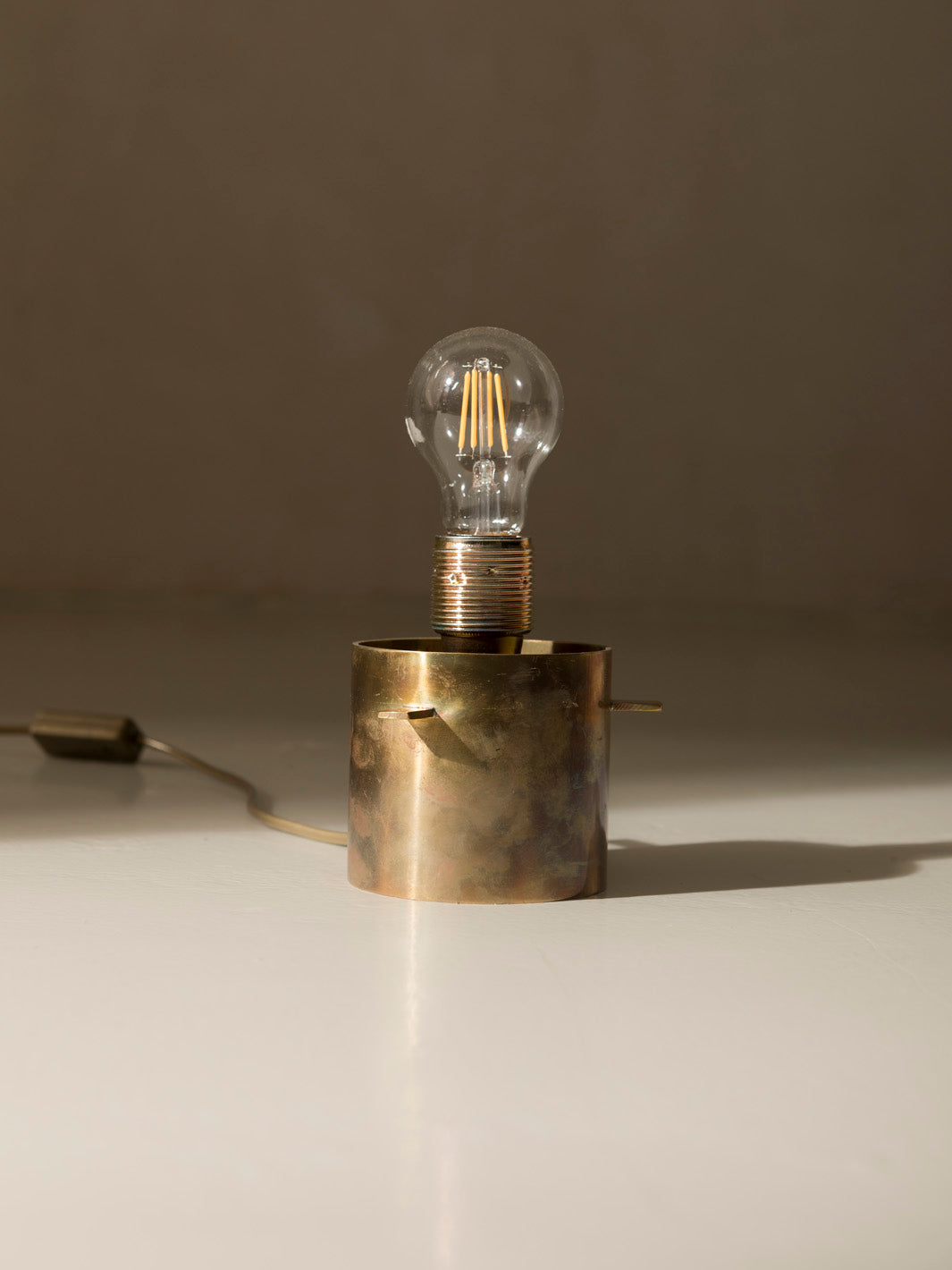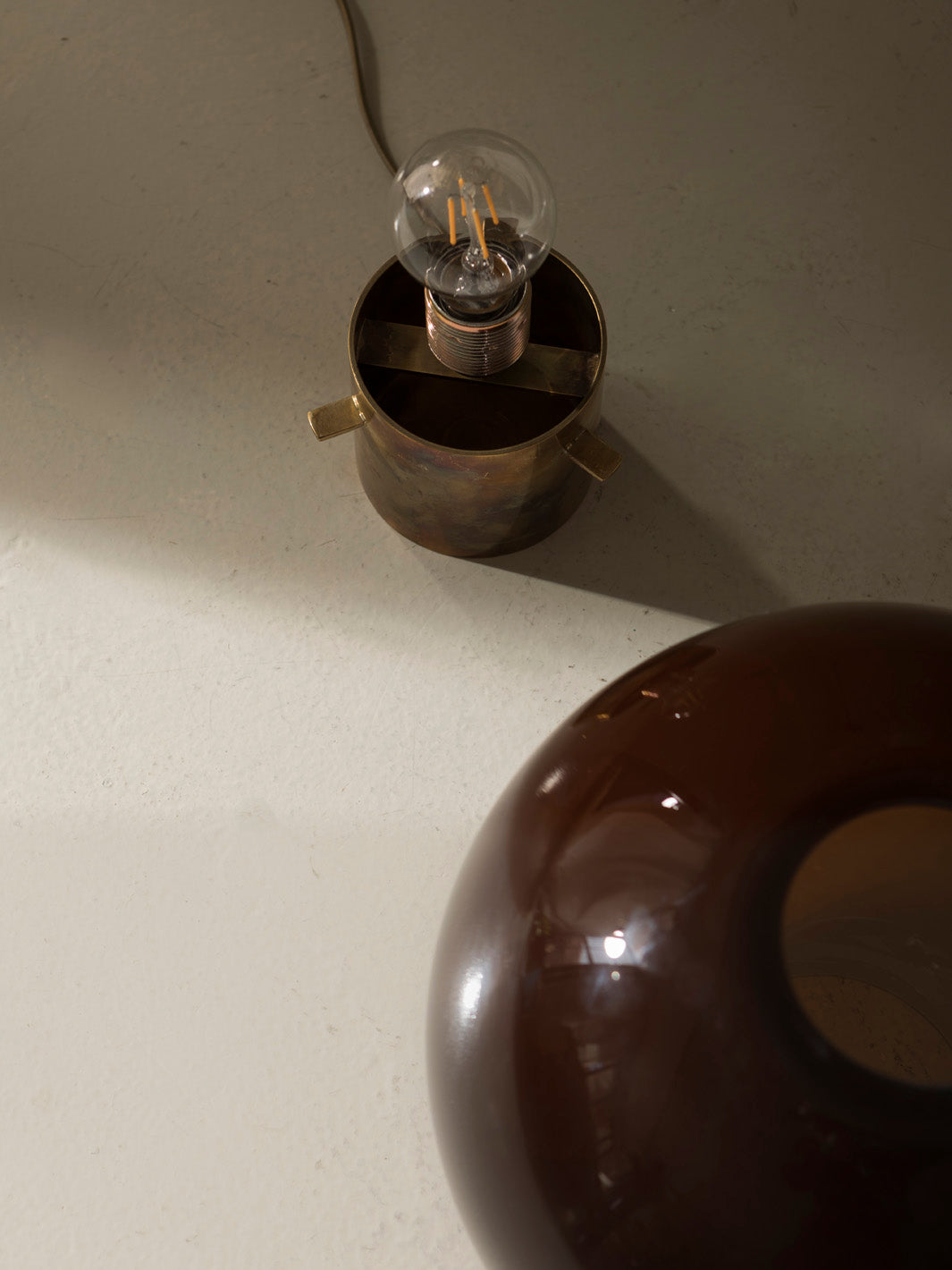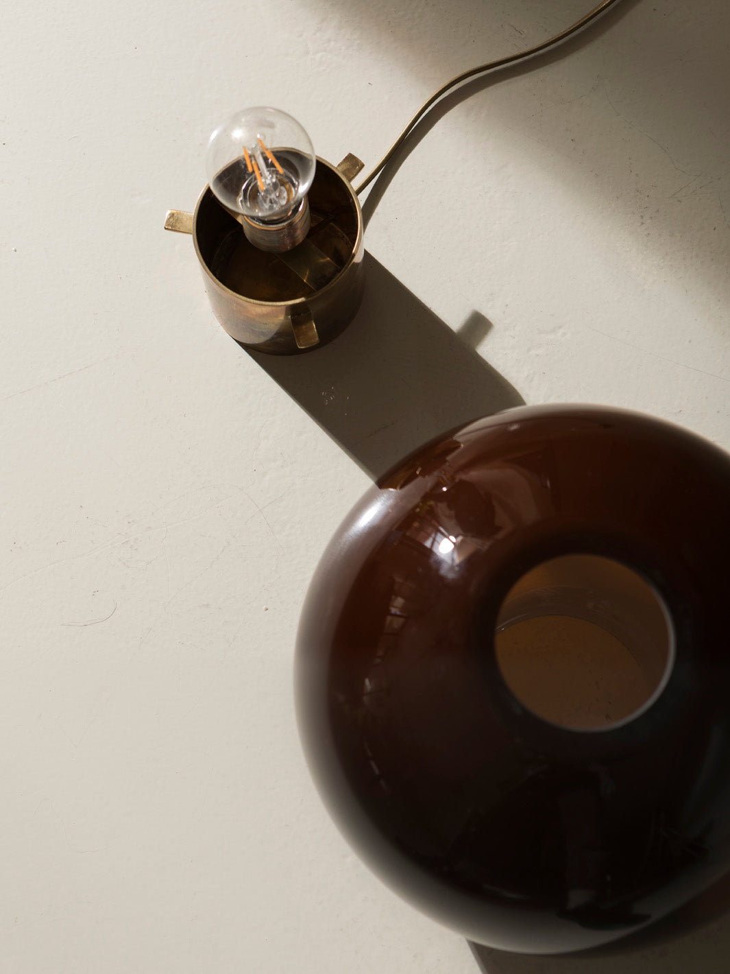 Cristal de murano color teja y base cilíndrica en latón.