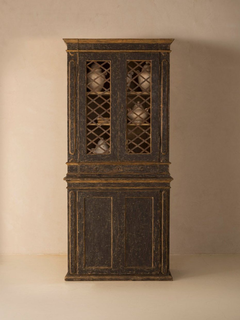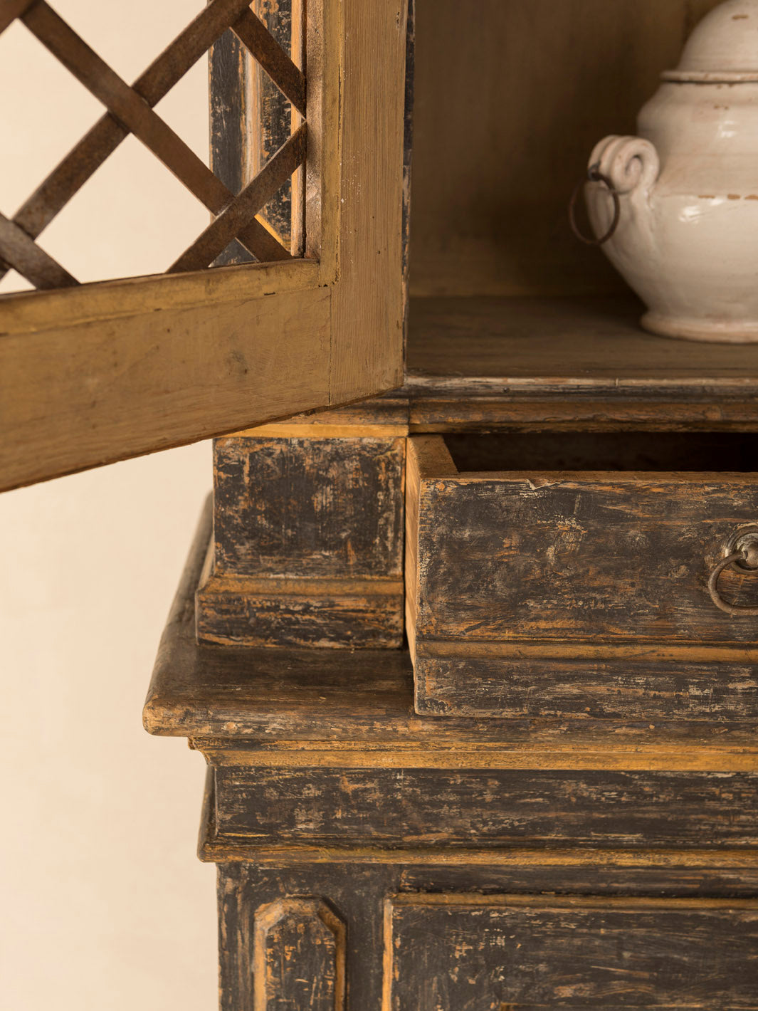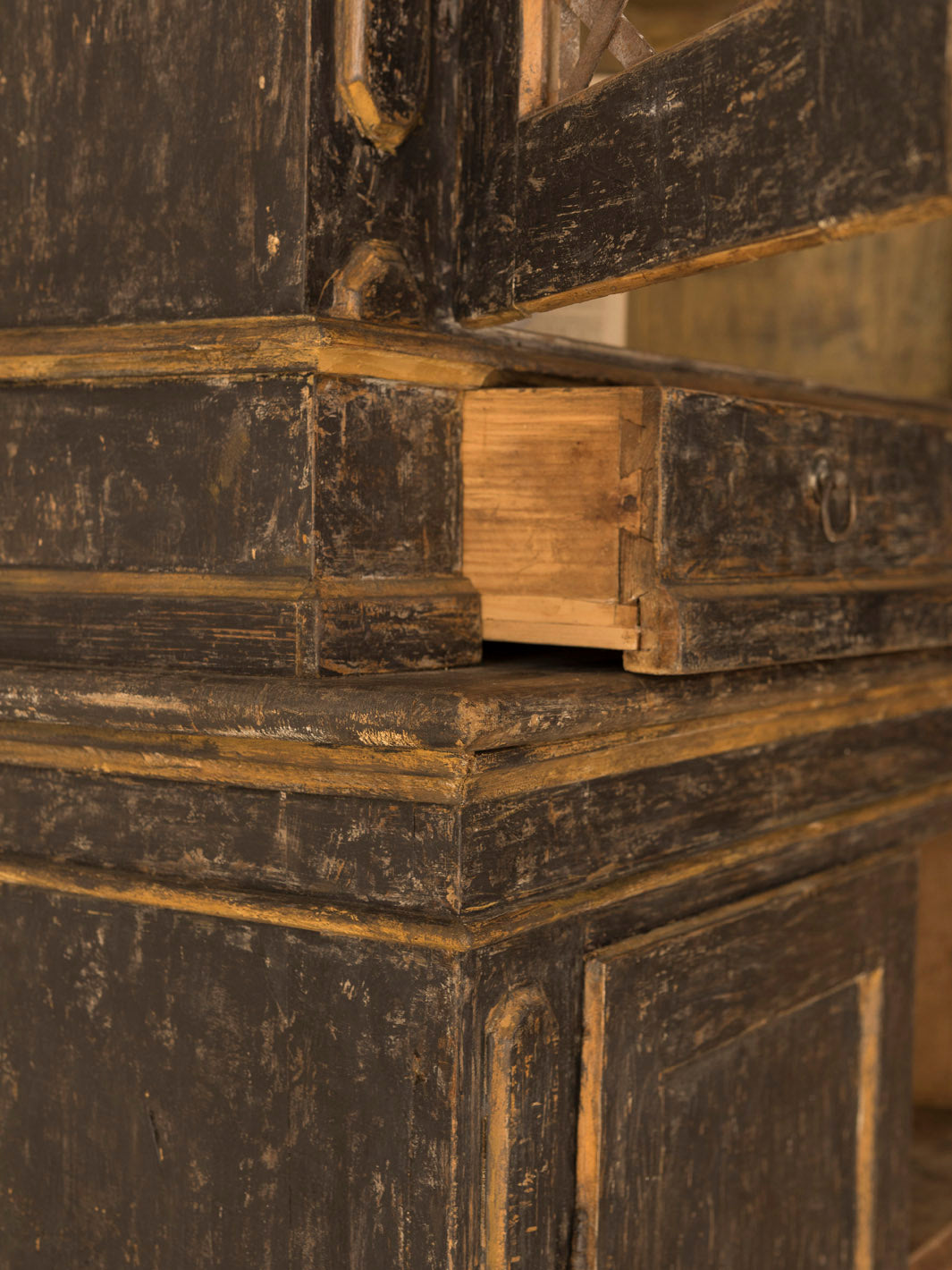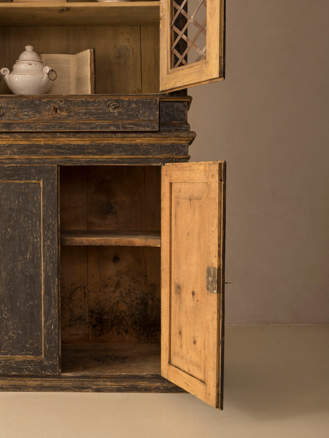 Librería veneciana Triage con pátina negra, original de Italia del siglo XIX.
