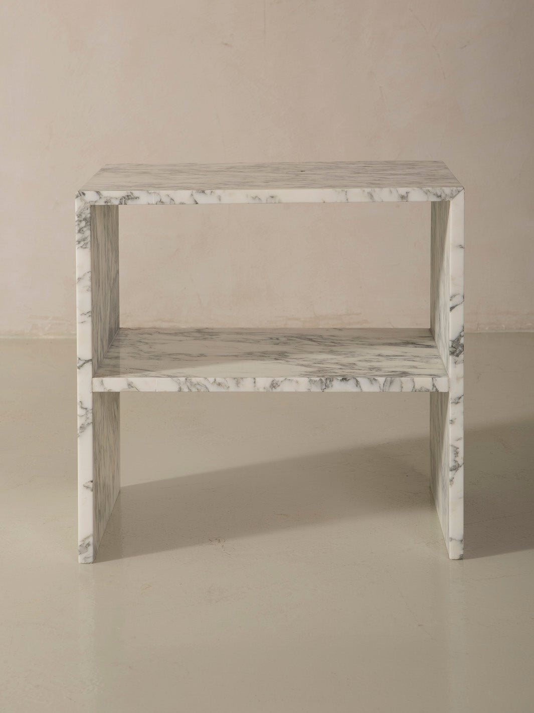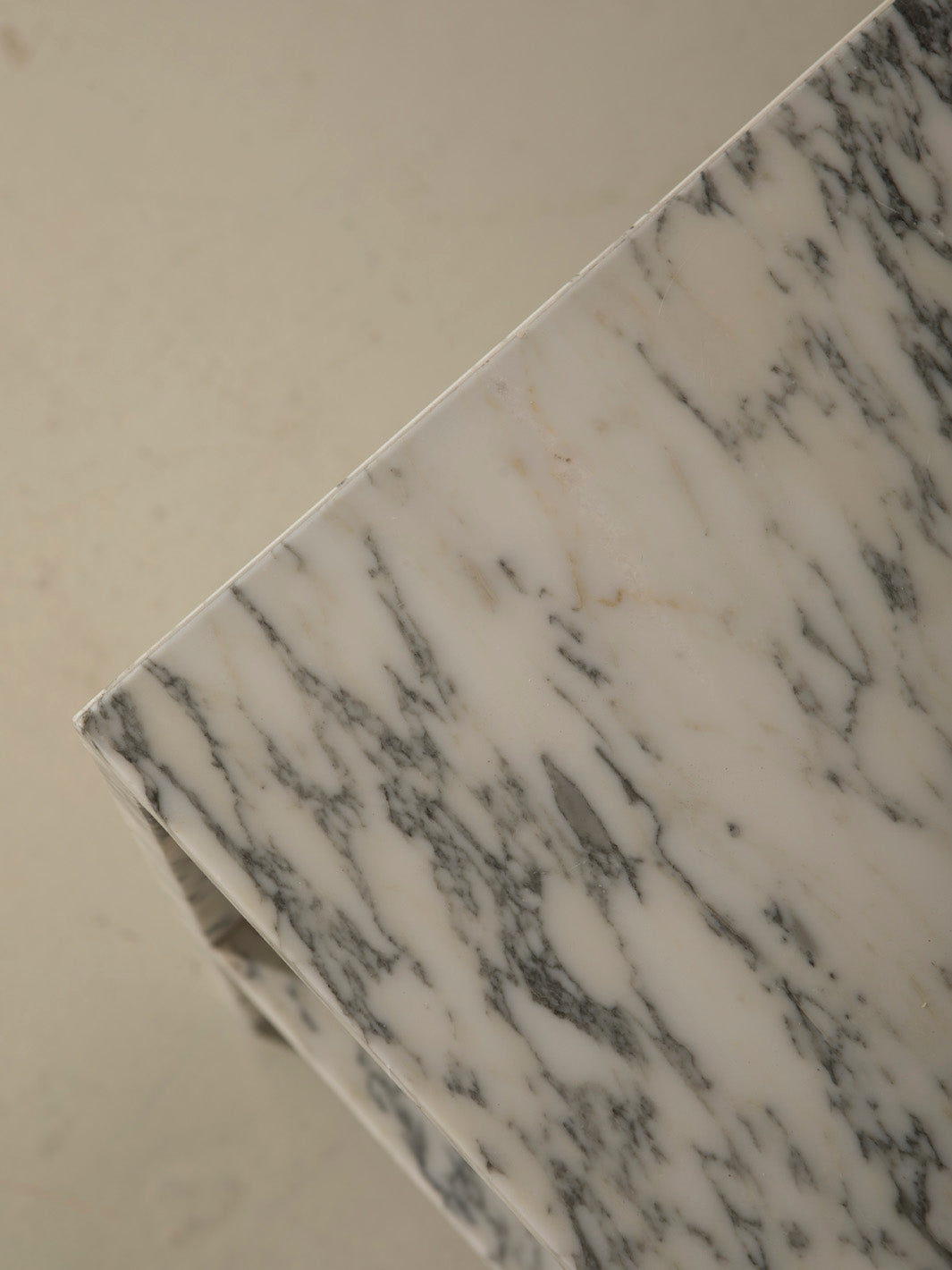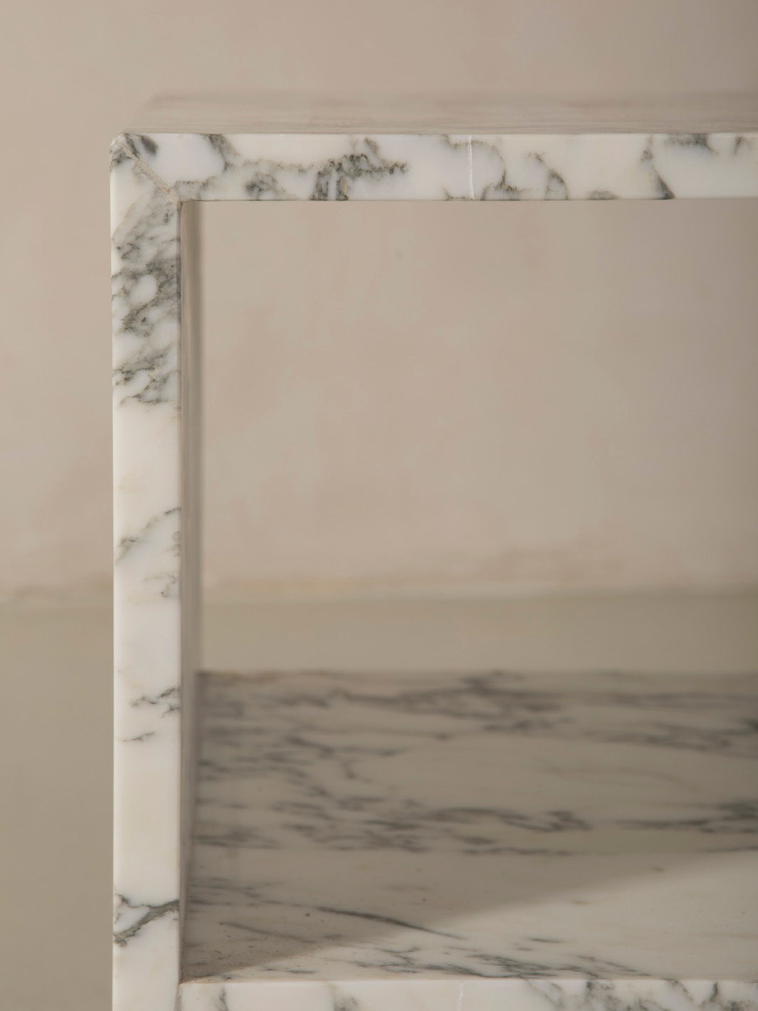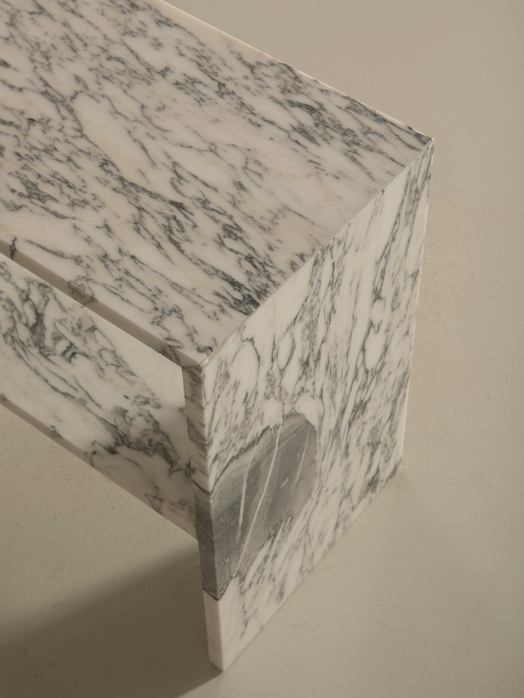 Minimalismo escultórico y nobleza mineral. Esta mesa auxiliar de mármol es una pieza de presencia serena y rotunda, pensada para espacios que valoran lo esencial y lo eterno. Tallada y ensamblada a mano, cada pieza revela la belleza única de la piedra: vetas profundas y caprichosas que convierten cada mesa en una obra irrepetible.