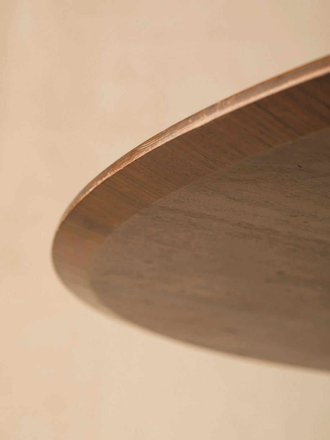 Mesa Tecno T69de Osvaldo Borsani y Eugenio Gerli, original de los años 70 trabajada en madera de teca y escultural pie de metal.