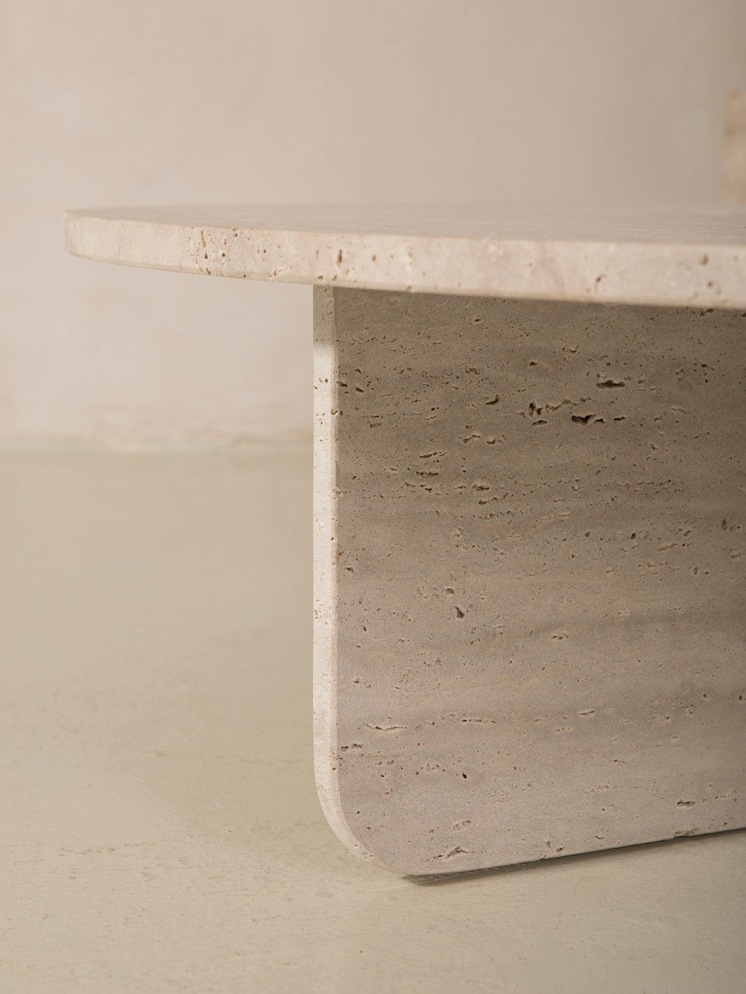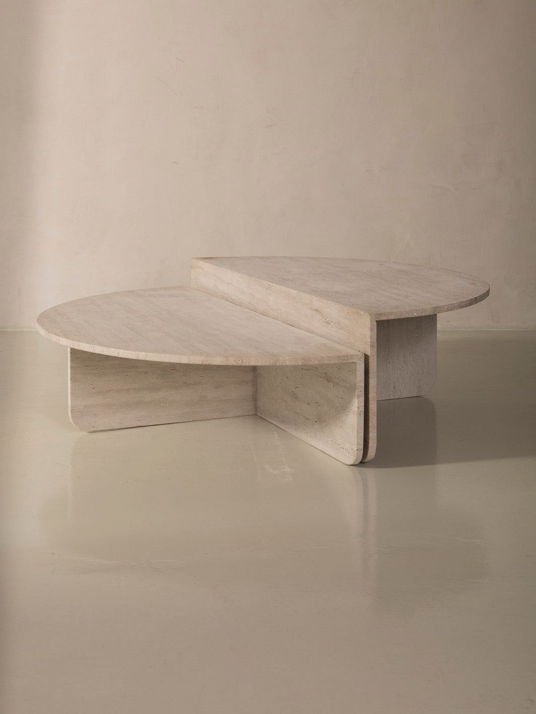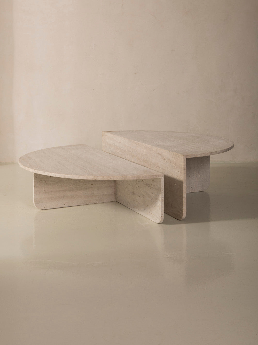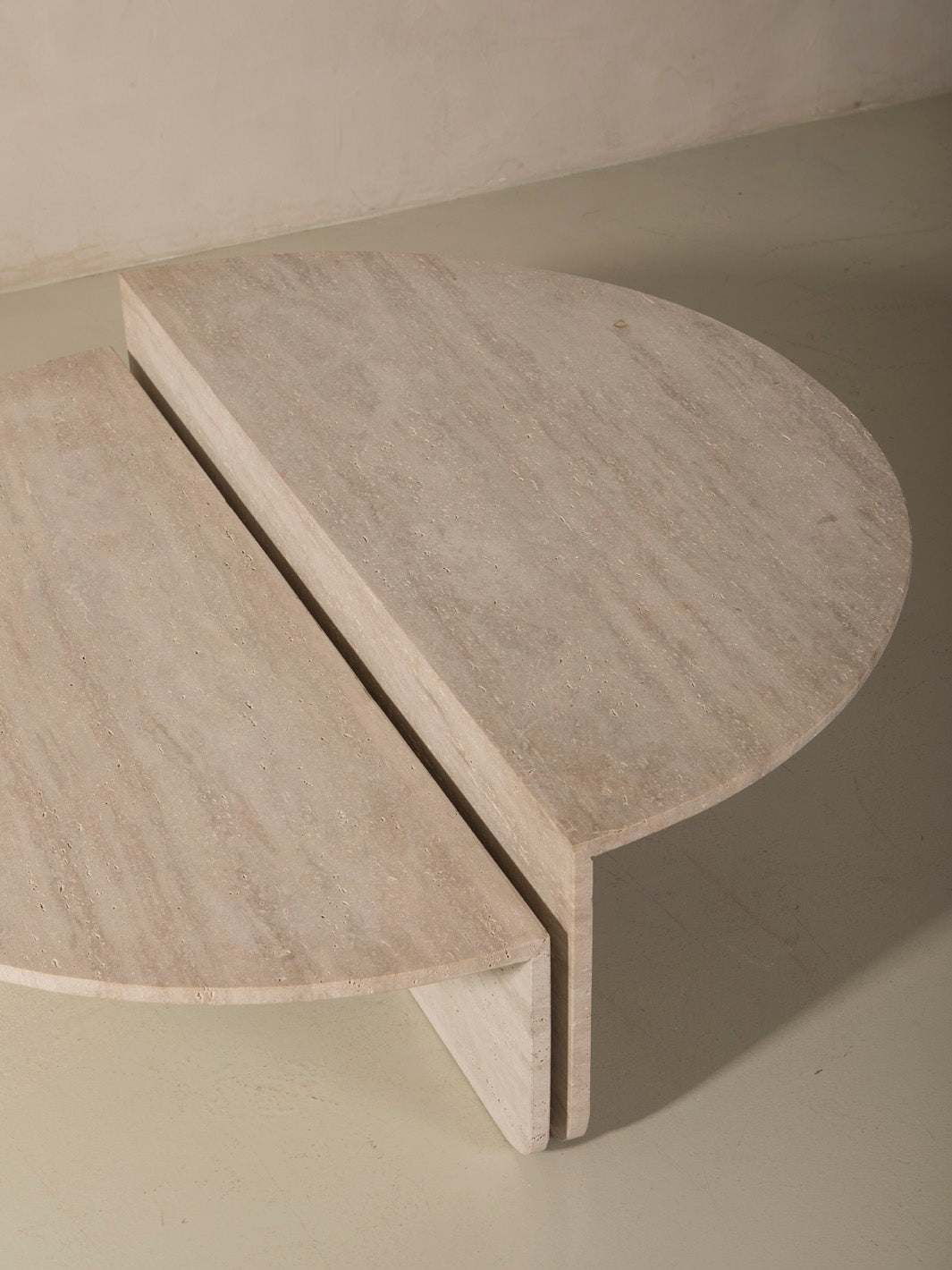 Esta mesa auxiliar de travertino, elaborada artesanalmente, es una auténtica pieza escultórica que fusiona funcionalidad y arte. Su diseño geométrico y simétrico resalta la belleza natural de la piedra, con vetas y texturas únicas que hacen de cada unidad una obra irrepetible. La solidez del travertino se combina con una estética minimalista y elegante. Ideal como punto focal en un espacio, esta mesa es una declaración de estilo y saber hacer artesanal.