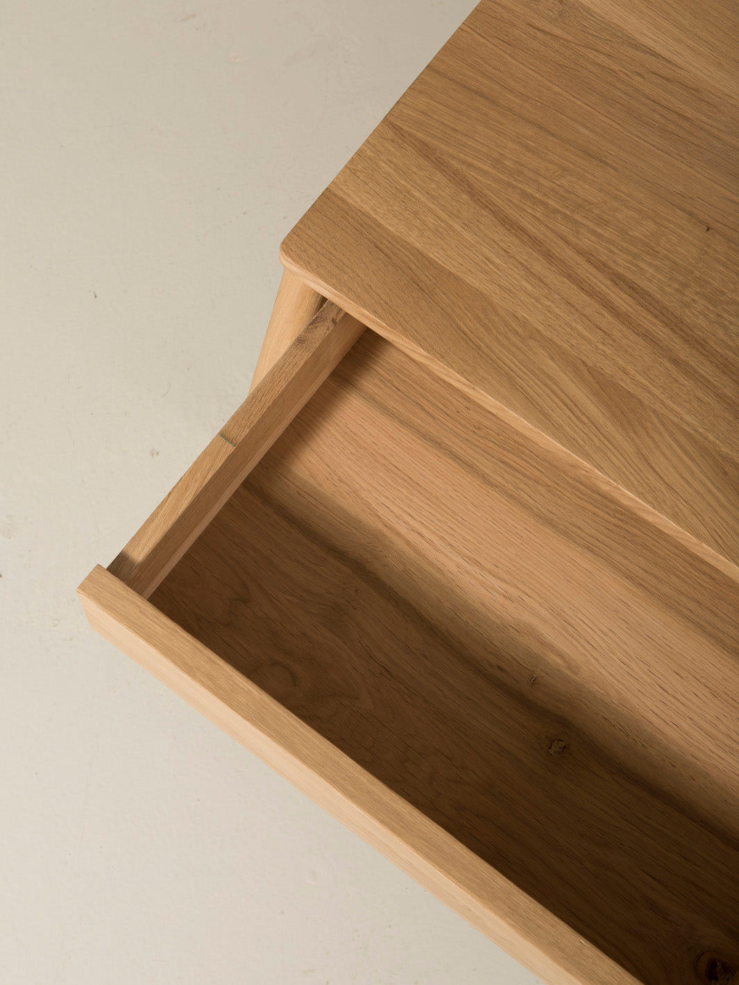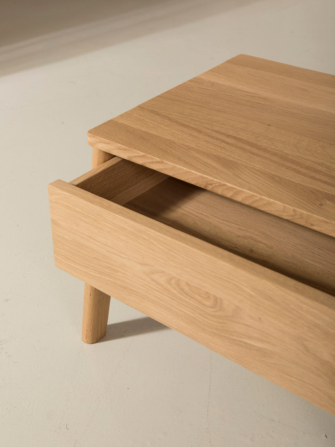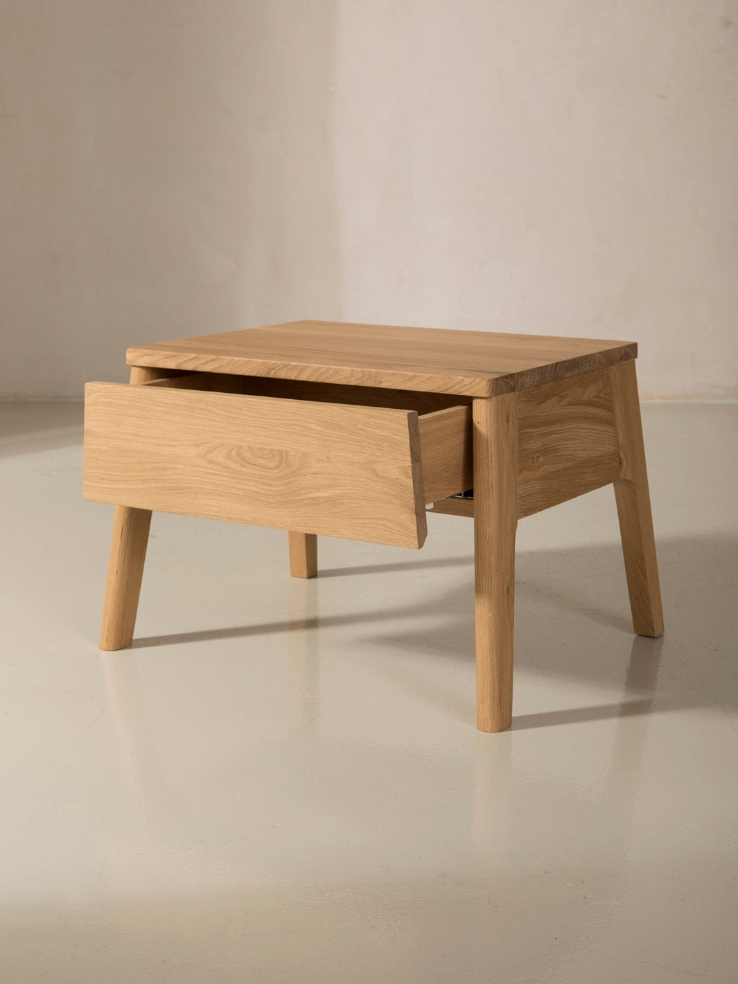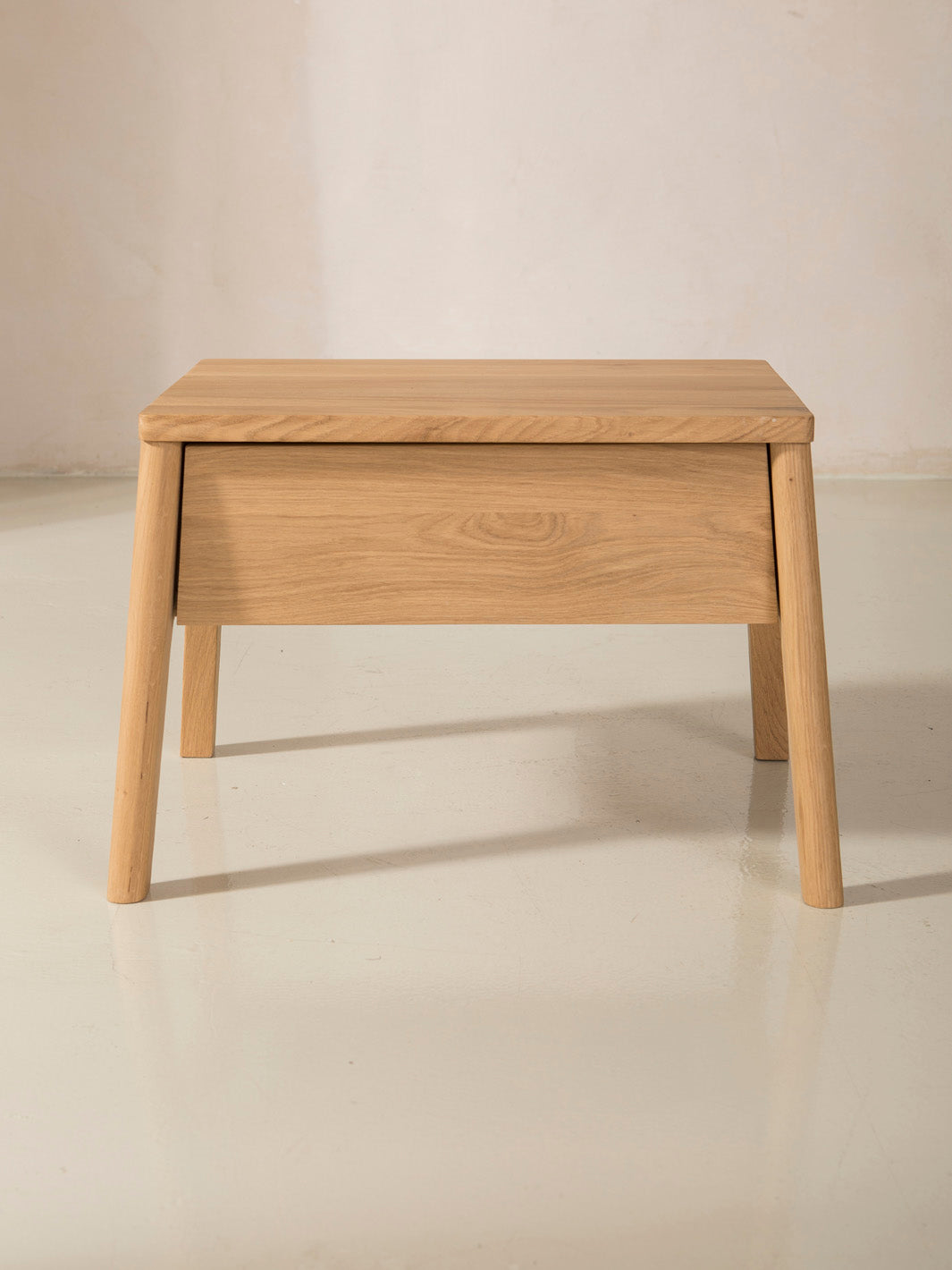 Esta sencilla pero sofisticada mesita de noche con un cajón es el complemento perfecto para cualquier dormitorio; versátil, elegante y práctica. Diseño de Ethnicraft.