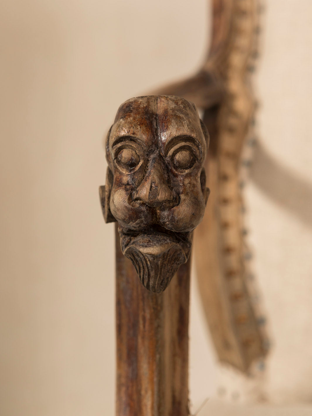 Pareja butacas Louis XVI con motivo Chinoiserie en madera de castaño, original del siglo XIX.
