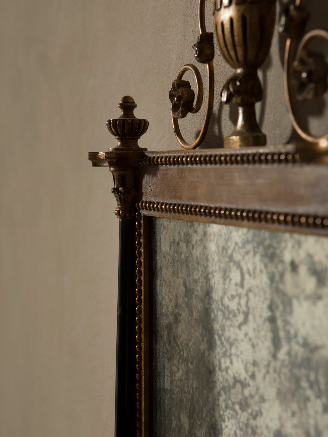 El paso del tiempo ha dejado una pátina sobre el cristal, creando un efecto especular envejecido que aporta un aire de misterio y profundidad. Esta pátina suma carácter y resalta la autenticidad de una pieza que lleva el sello inconfundible de una de las casas de decoración más influyentes de París; una joya decorativa con alma francesa y espíritu atemporal.