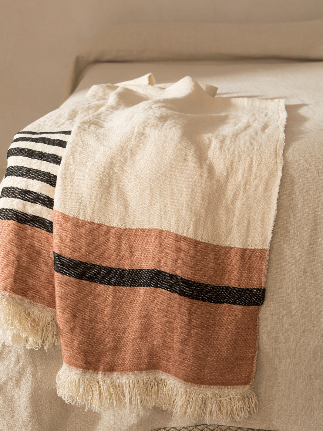 Plaid de lino natural belga de la firma Libeco. Su agradable tacto y su calidad lo convierten en un complemento ideal para tu salón o dormitorio.