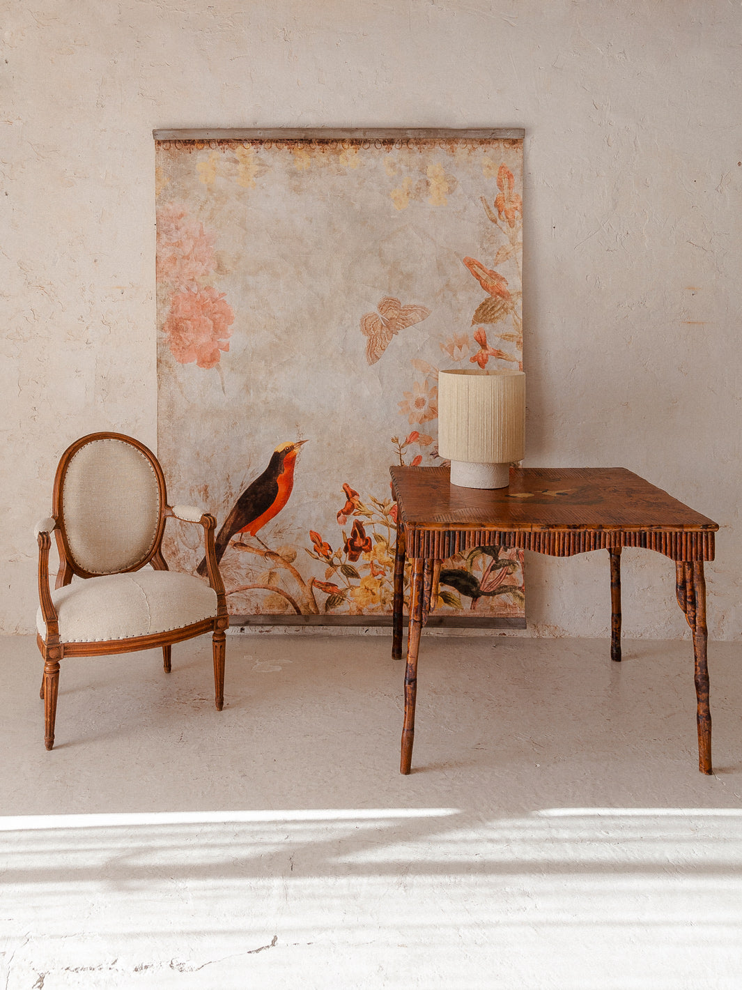 .Mural estampado sobre un delicado papel reciclado efecto pergamino. El papel ha sido tratado para darle un aspecto envejecido y una delicada textura formando pliegues y rugosidad. Se trata de una edición limitada. Viene con bastidor de madera para poder colgar.